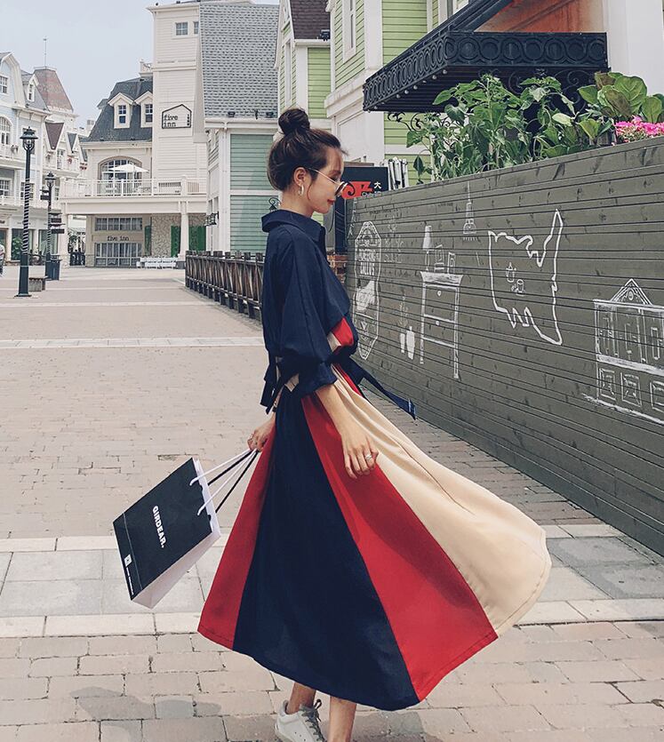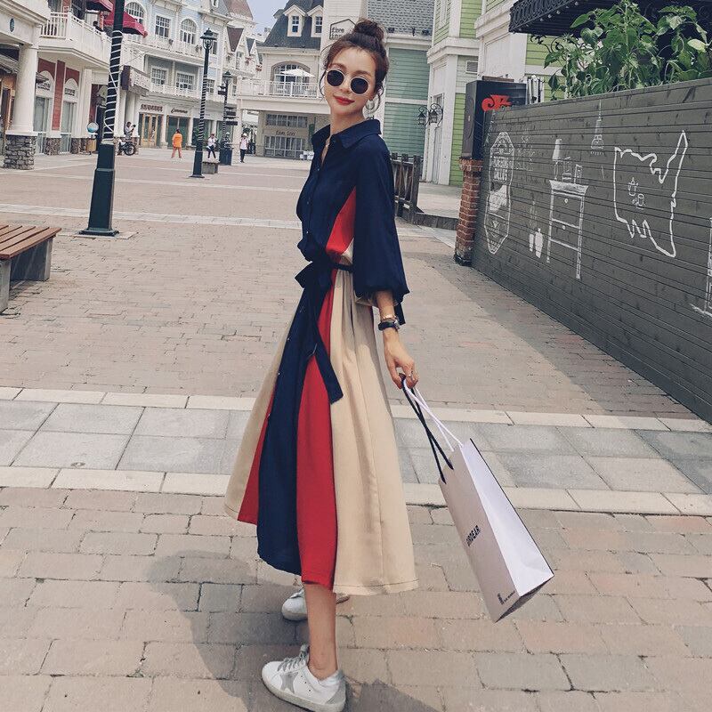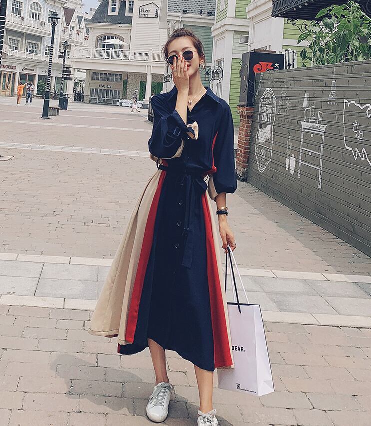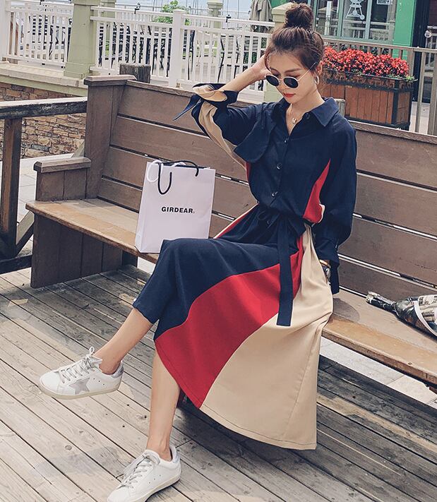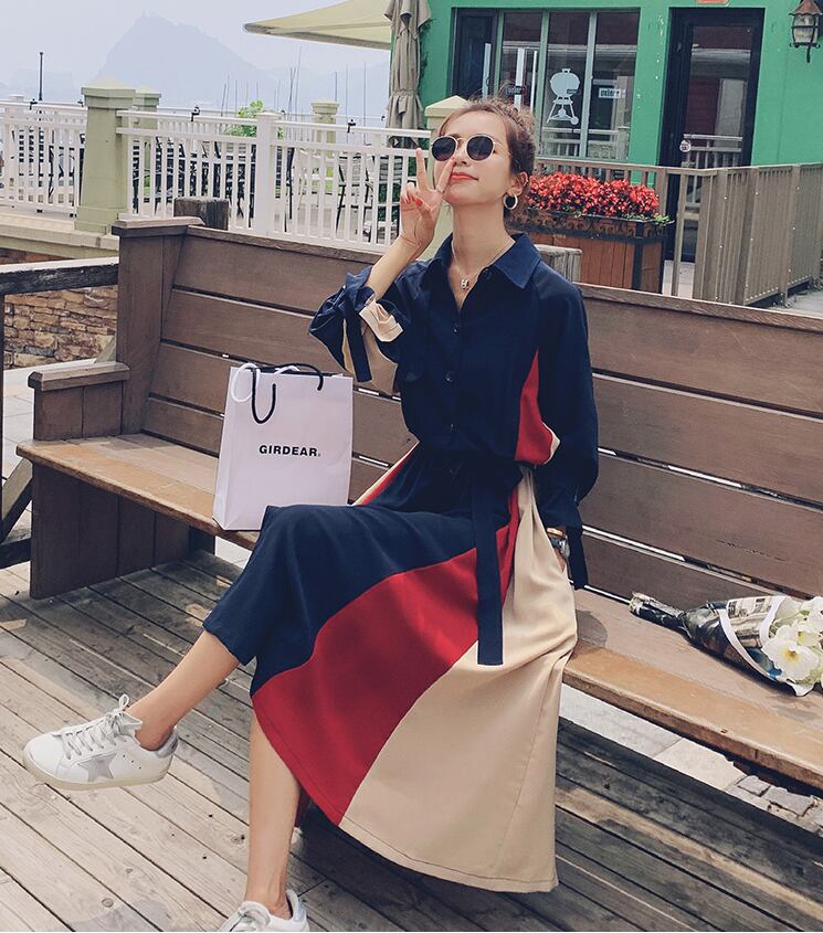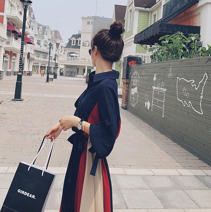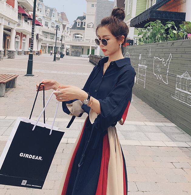【dress】気質満点POLOネックスウィート長袖デザイン着痩せワンピース G1510