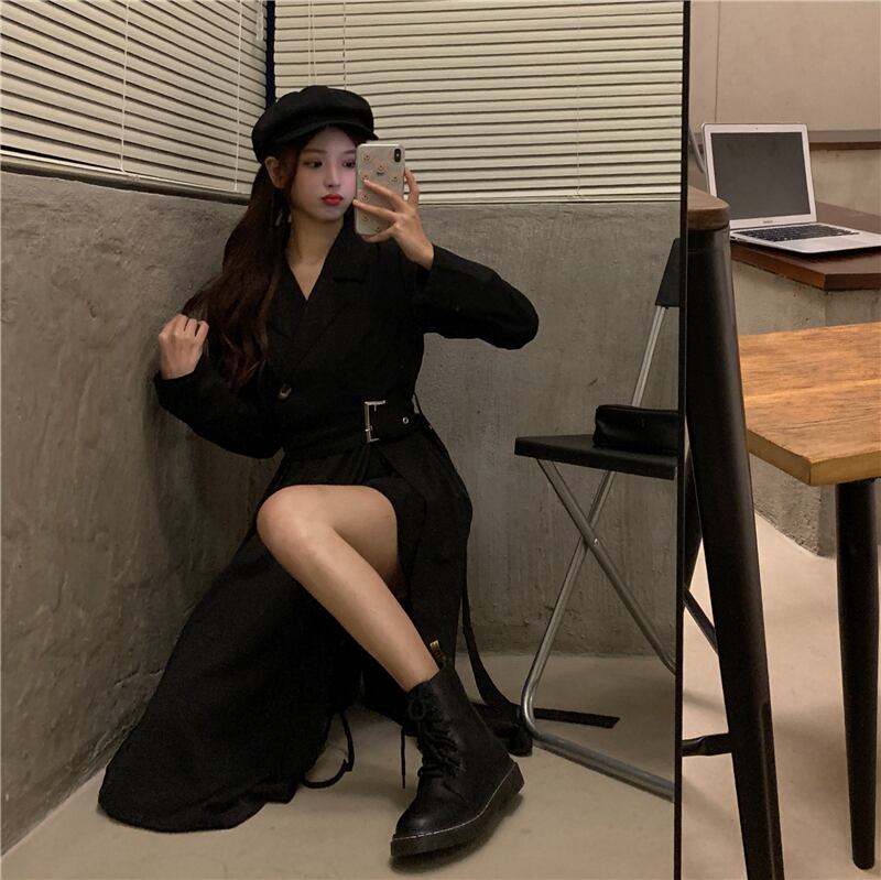 【dress】今季も大流行!気質満点長袖デザインスリットハイウエストワンピース G1758