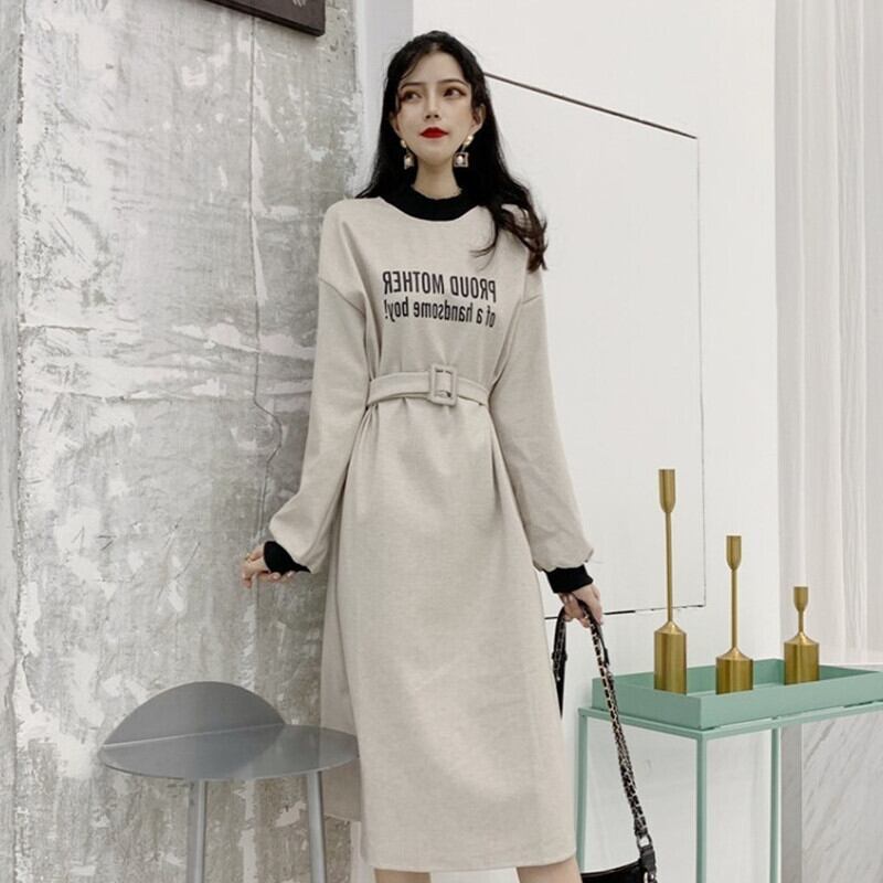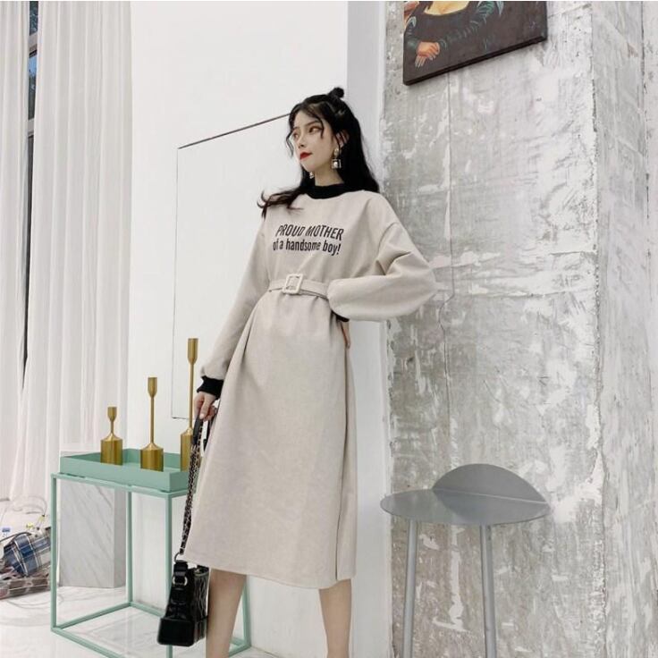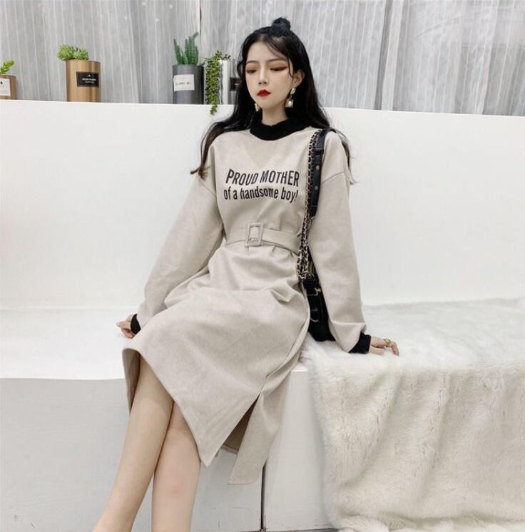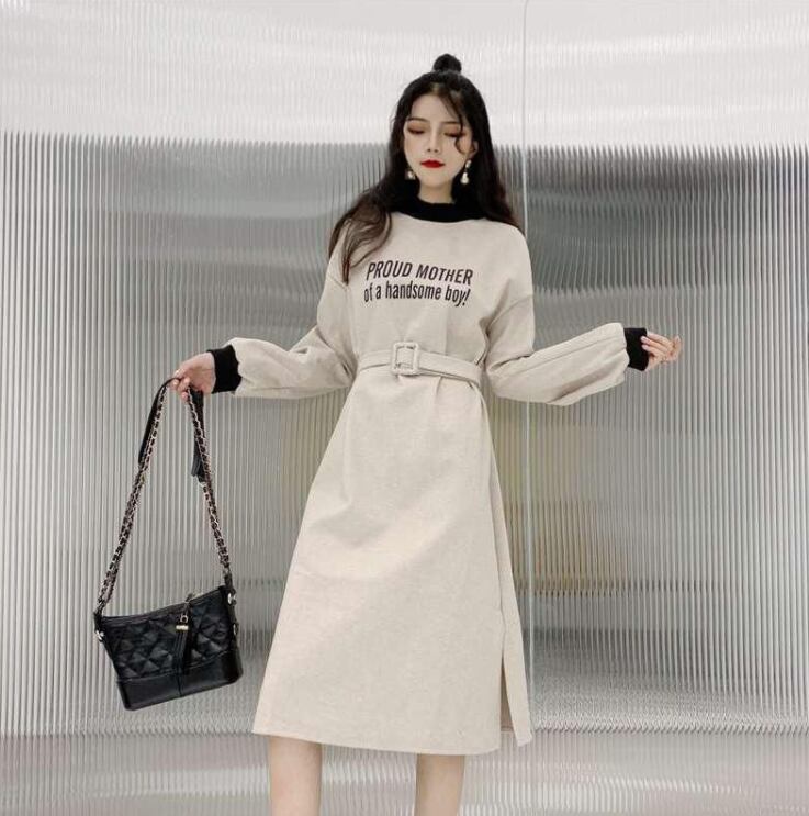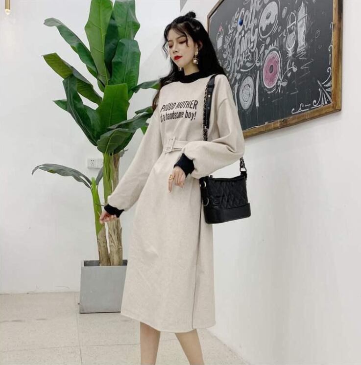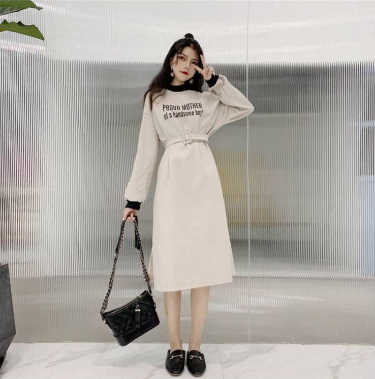 【dress】韓流スタイル好感度UP!気質満点ラウンドネック長袖パーカーワンピース G2001