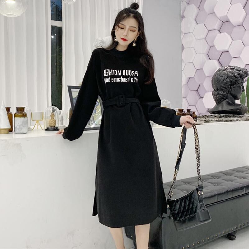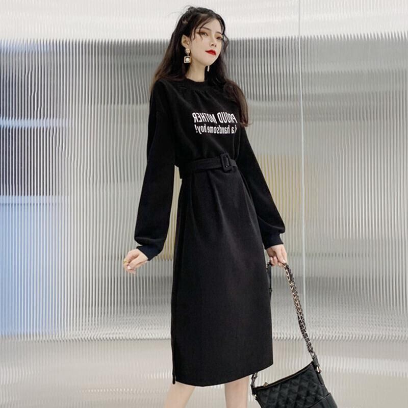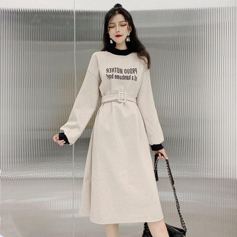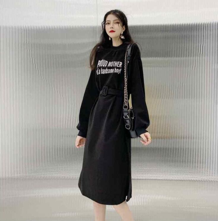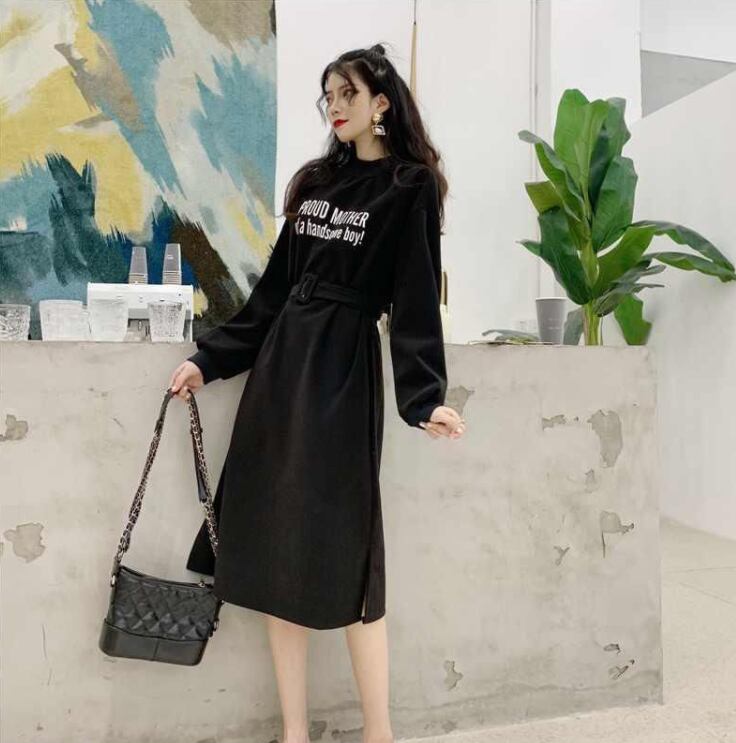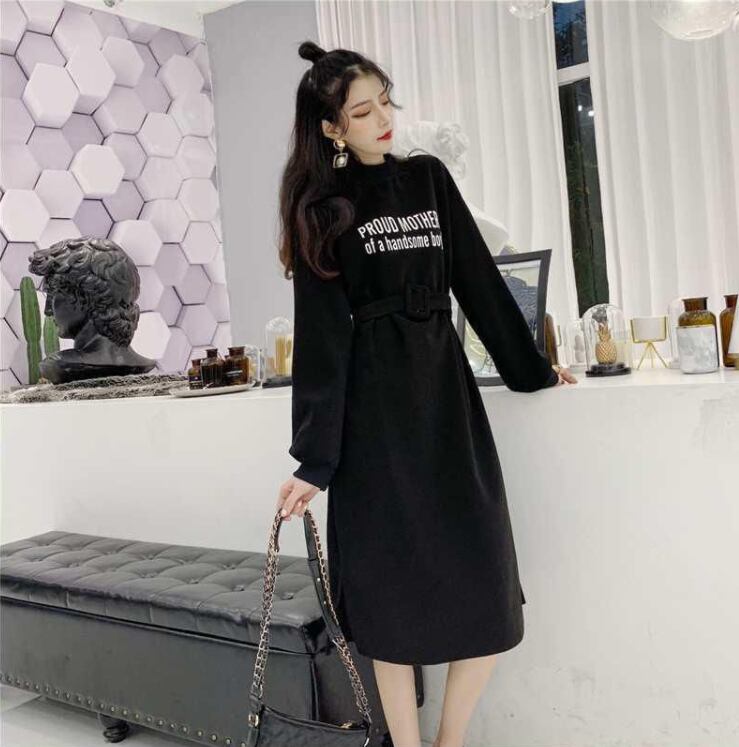 【dress】韓流スタイル好感度UP!気質満点ラウンドネック長袖パーカーワンピース G2001