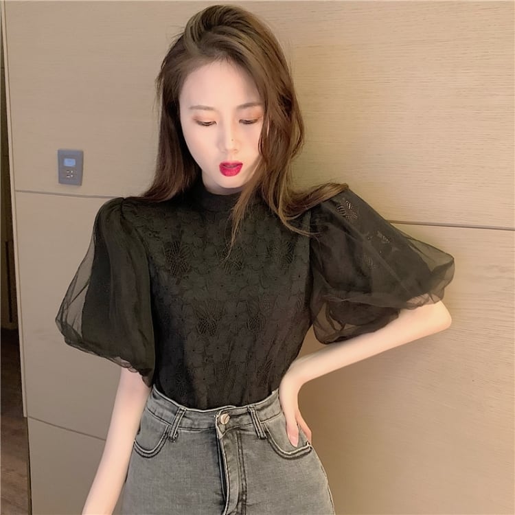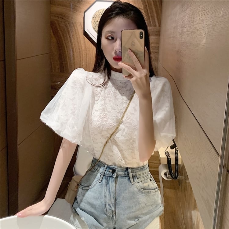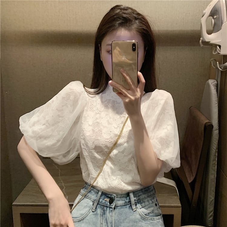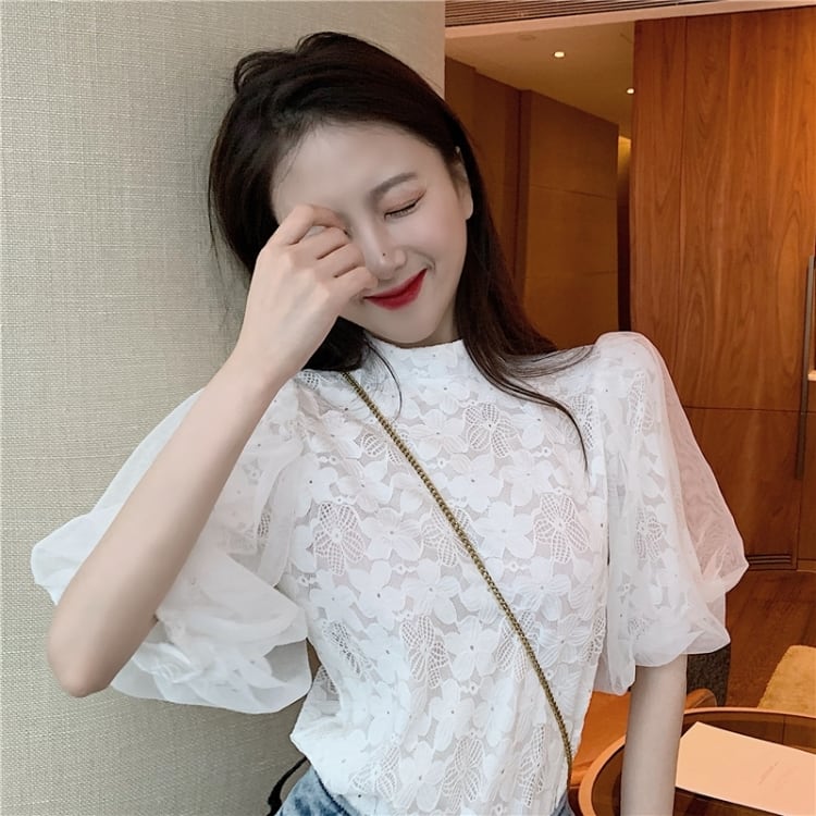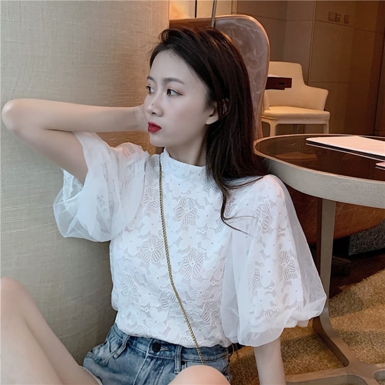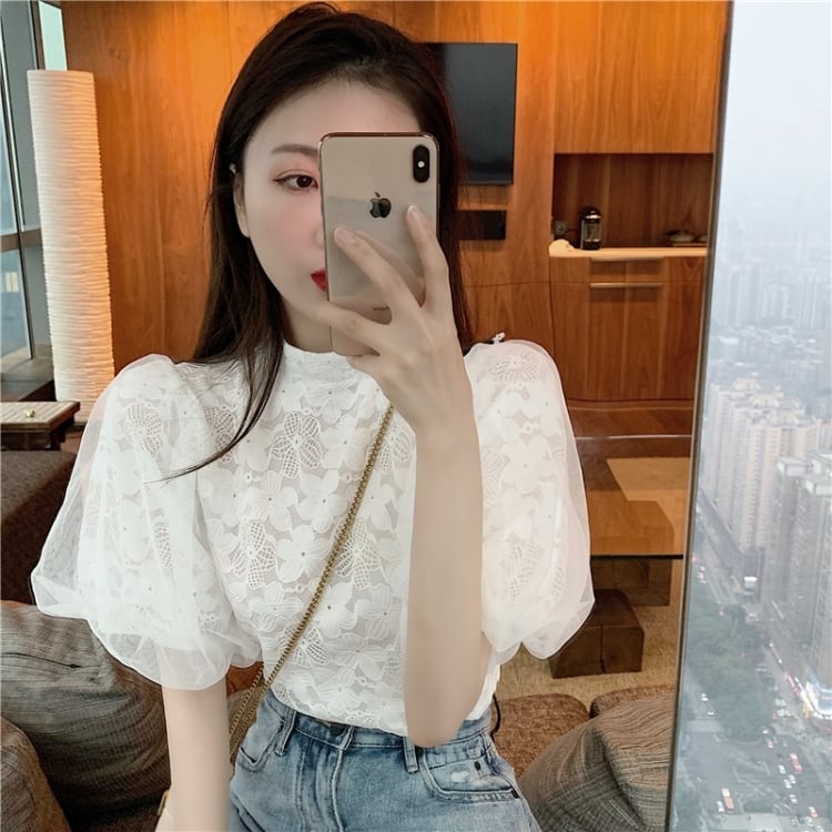 【tops】パフスリーブレースブラウスG20111