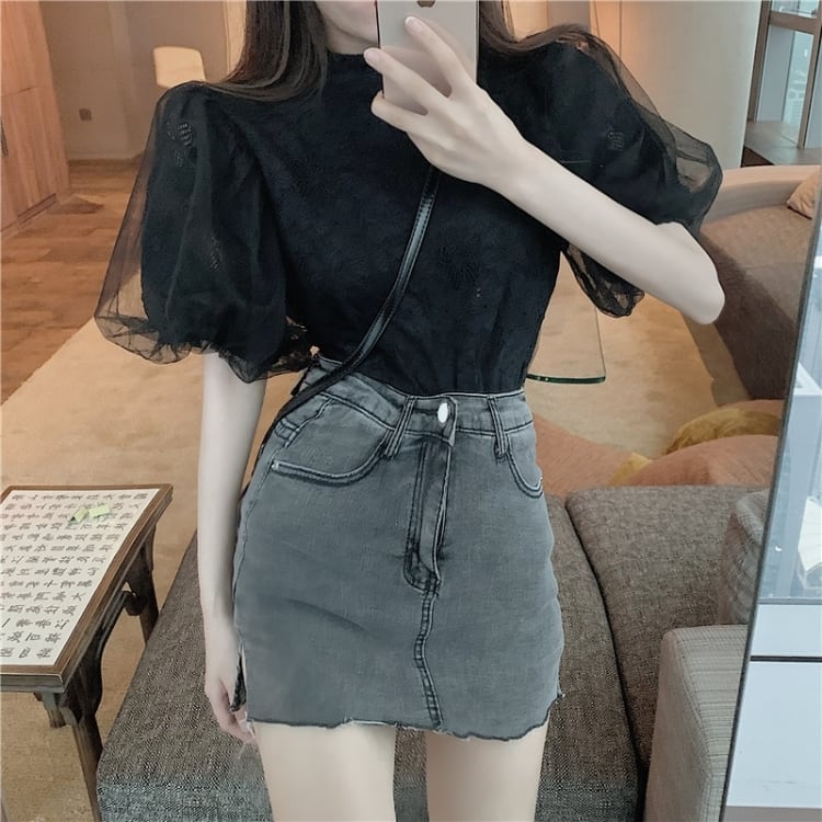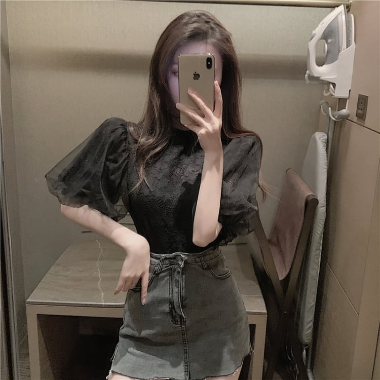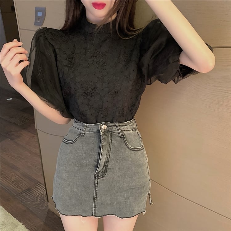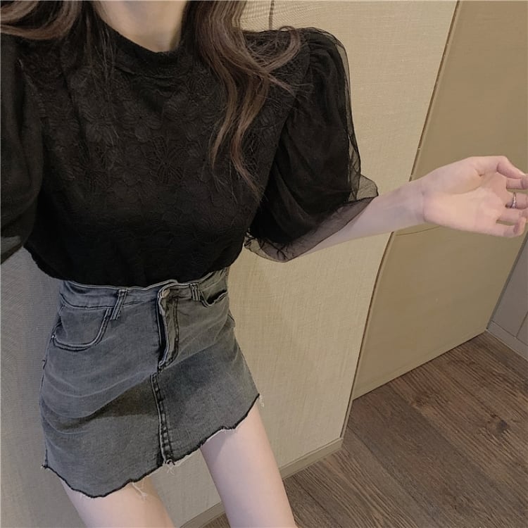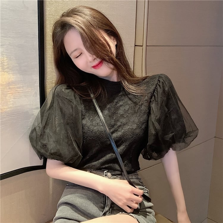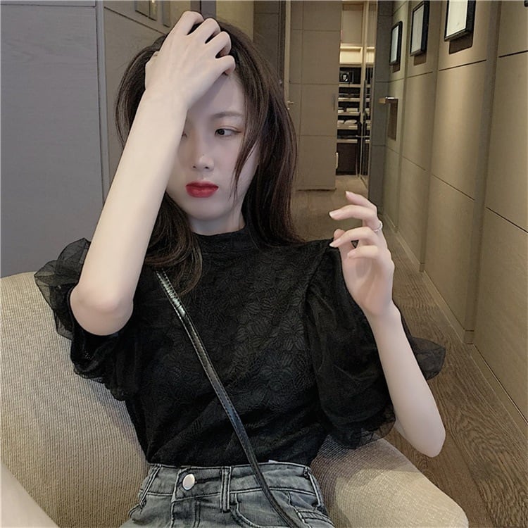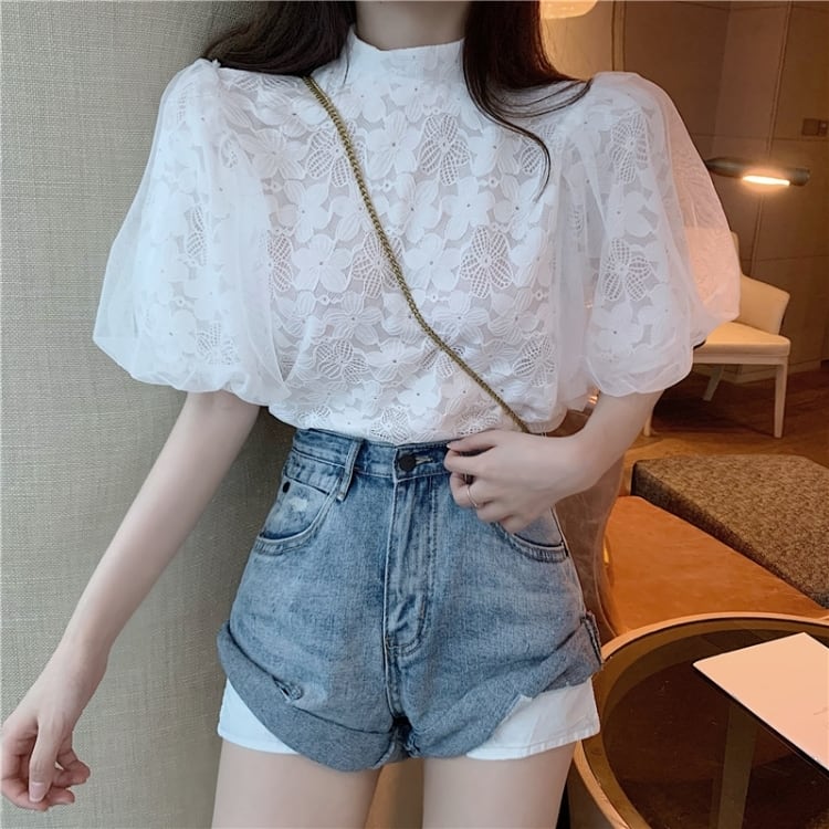 【tops】パフスリーブレースブラウスG20111