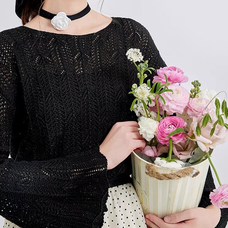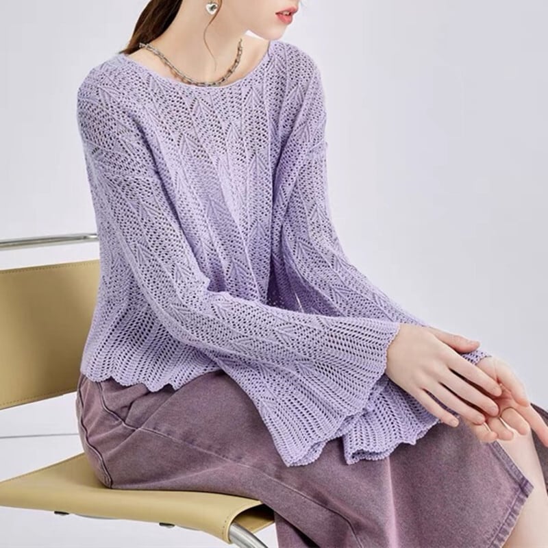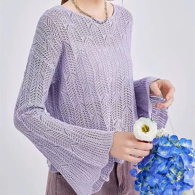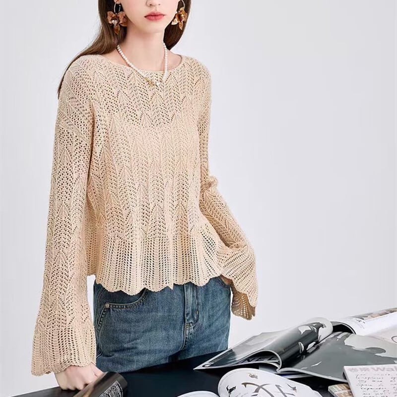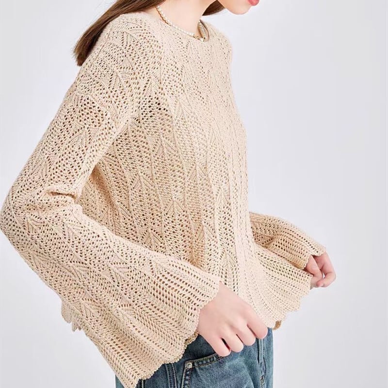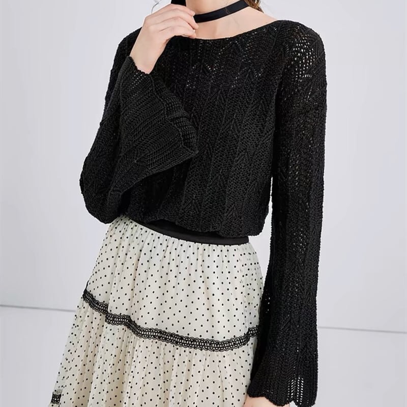 【tops】フレアスリーブ透かし彫りニットトップスG20244