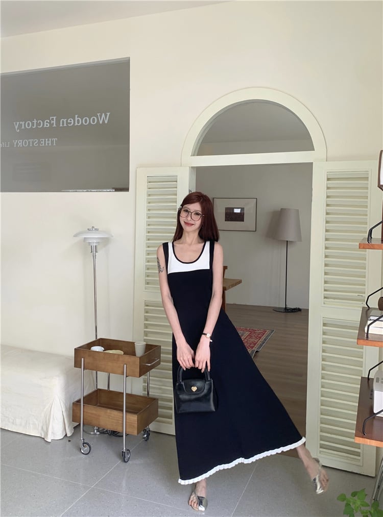 【dress】偽二つ切り替えニットキャミワンピース G20518