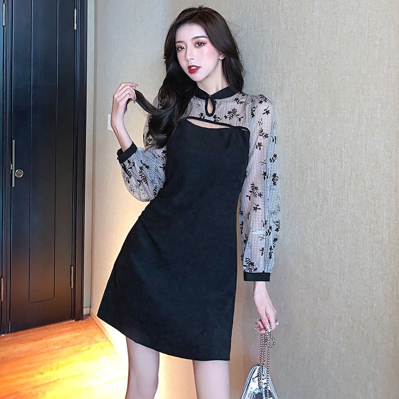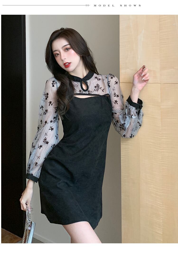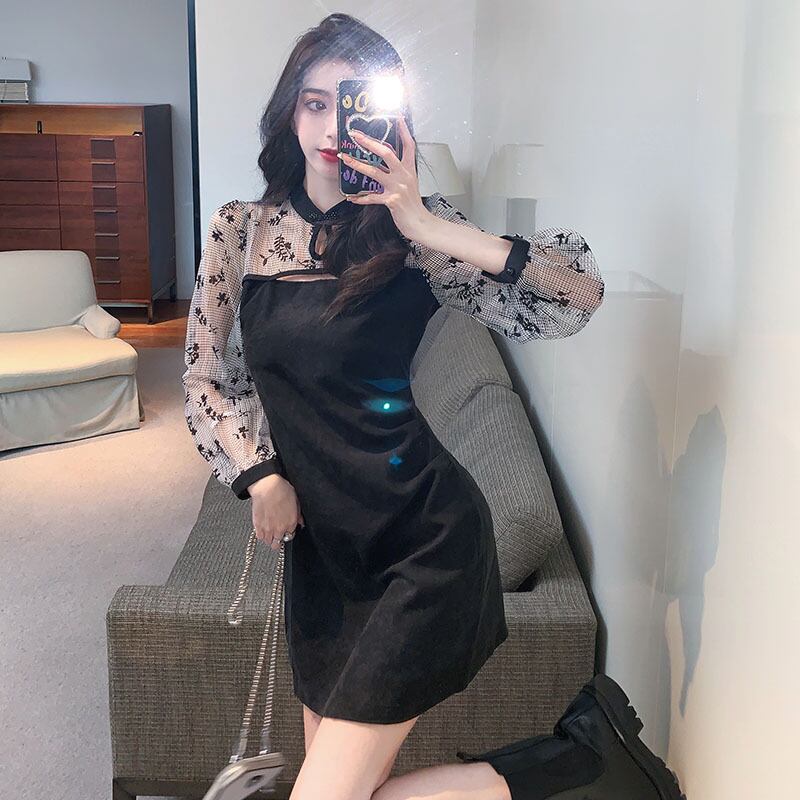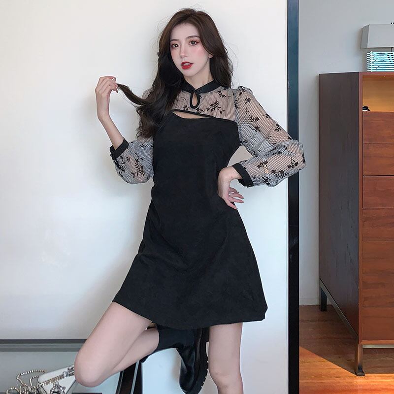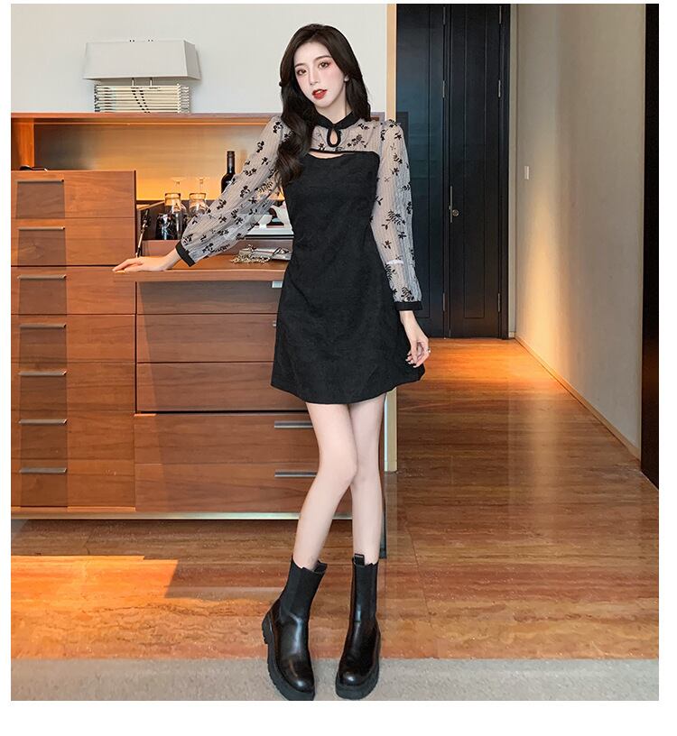 【dress】韓流スタイル!気質満点秋冬スタンドネックデザイン切り替えワンピース G2066