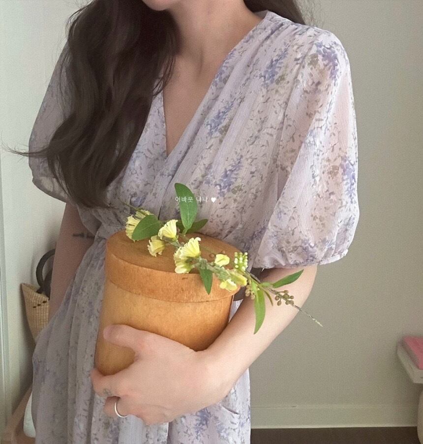 【dress】Vネック花柄パフスリーブワンピース G20746