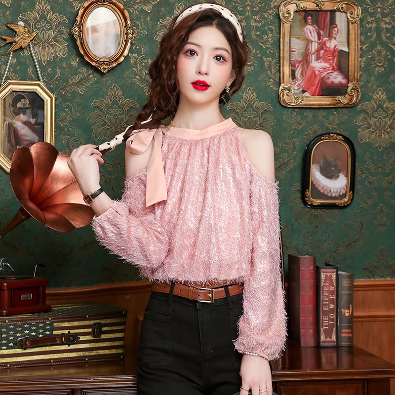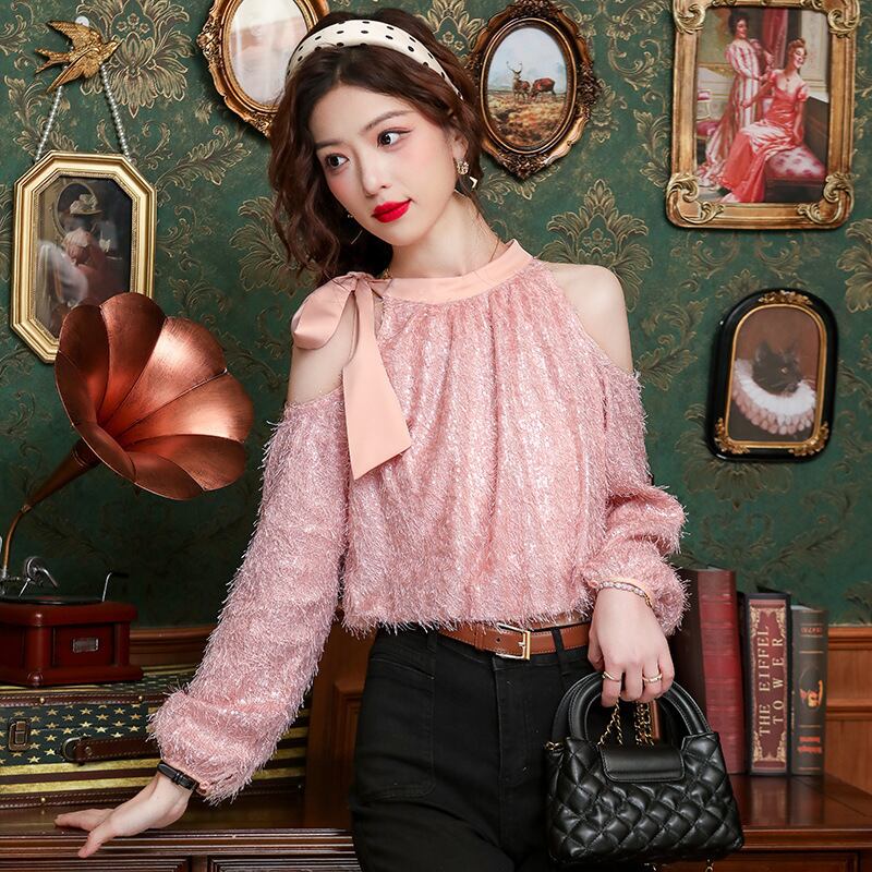 【tops】オフショルダーランタンスリーブ ブラウス G20773