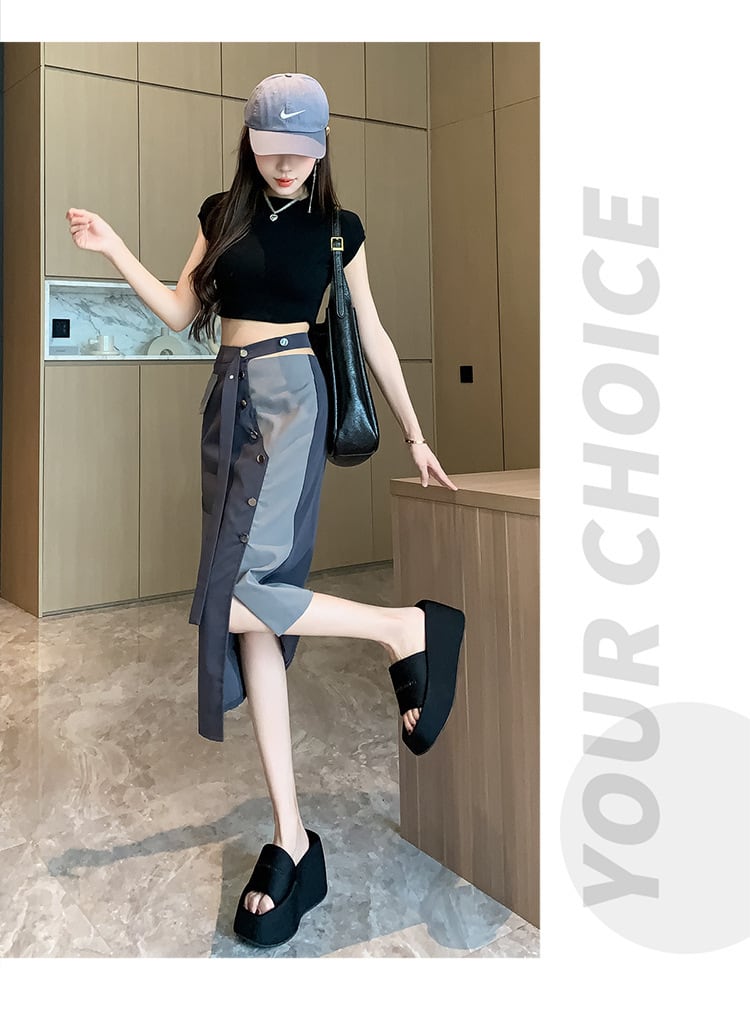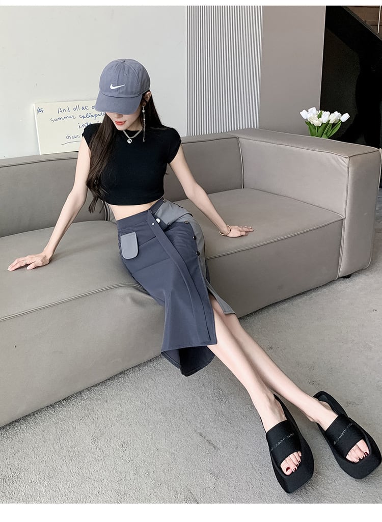 【bottoms】不規則ハイウエストスカートG20941