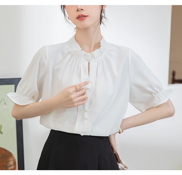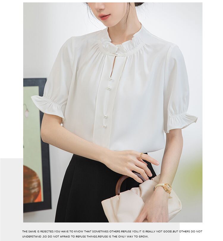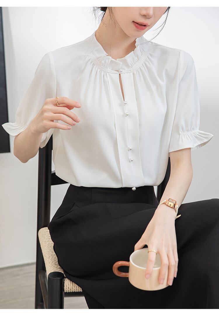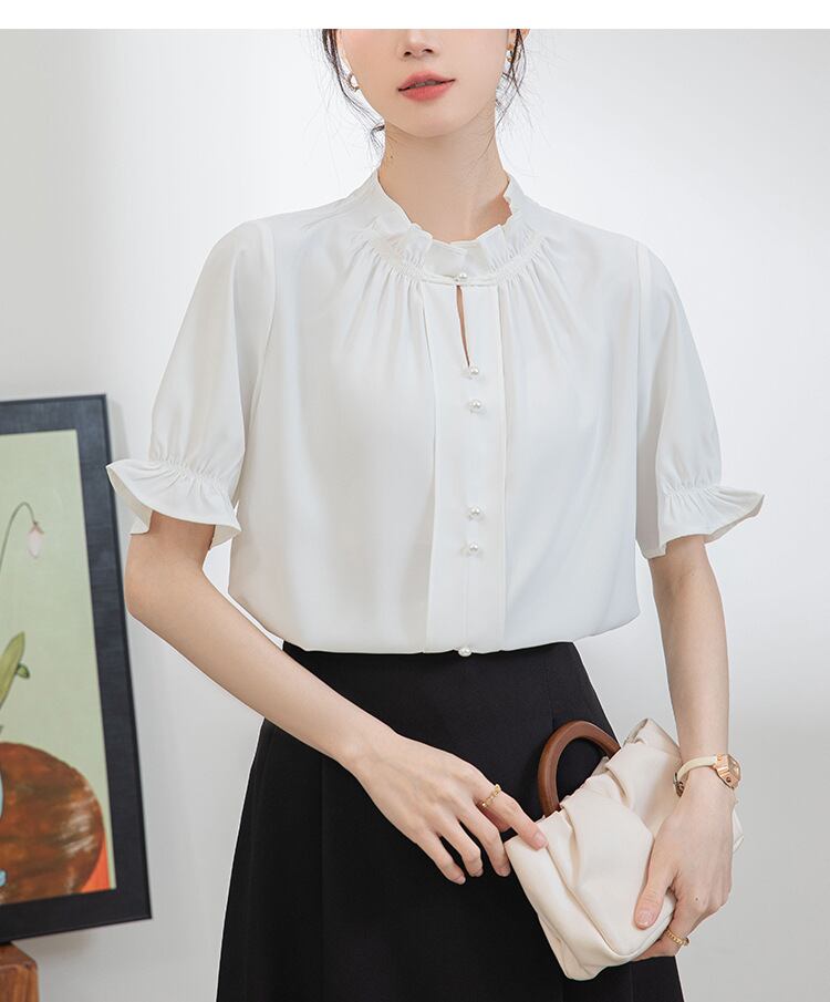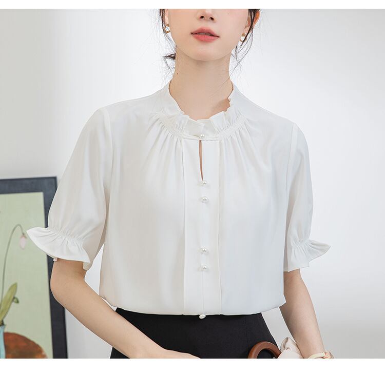 【tops】フリルスタンドネックOL通勤ブラウスG21076