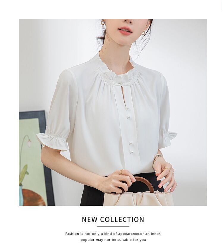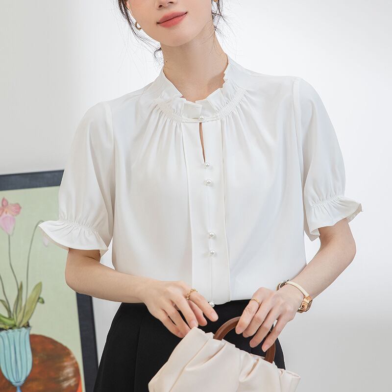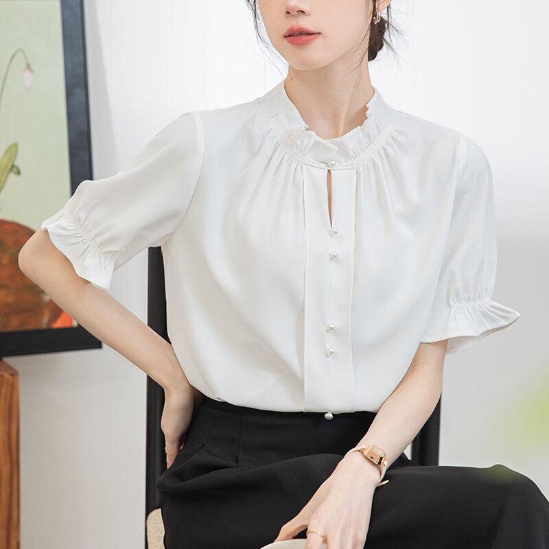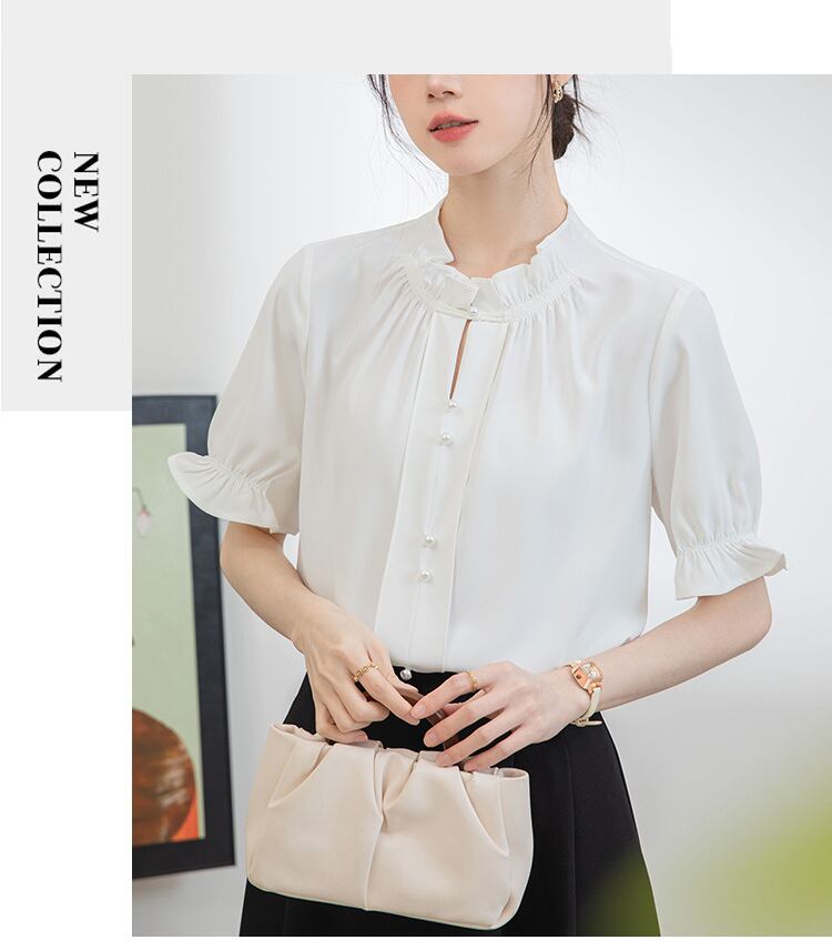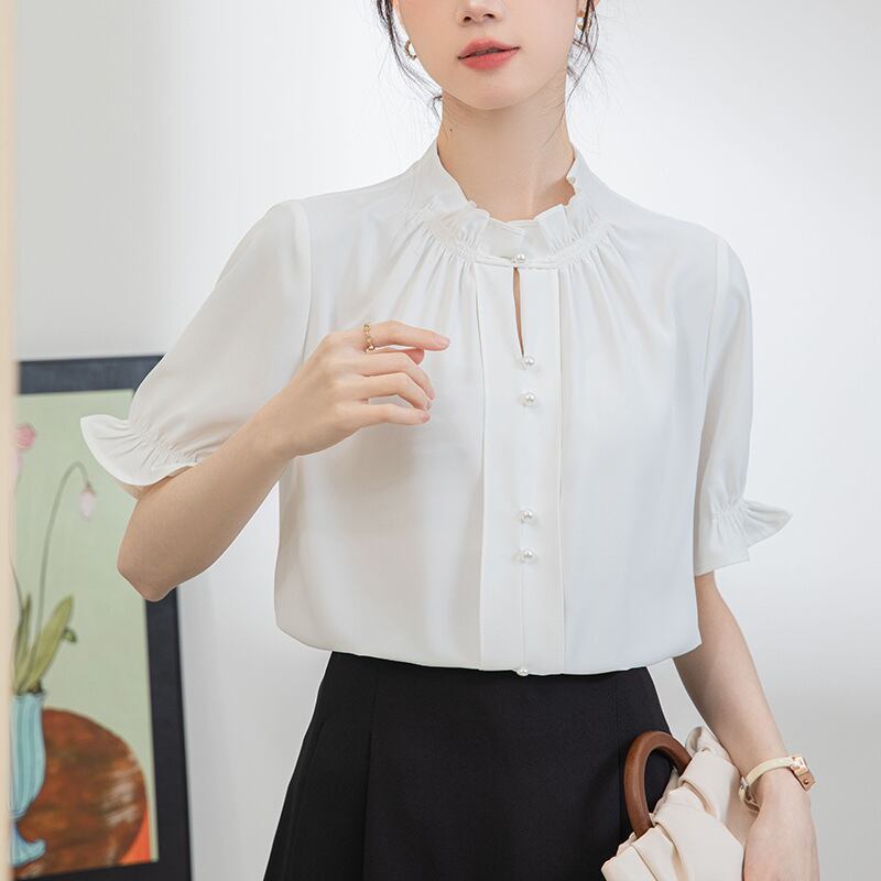 【tops】フリルスタンドネックOL通勤ブラウスG21076