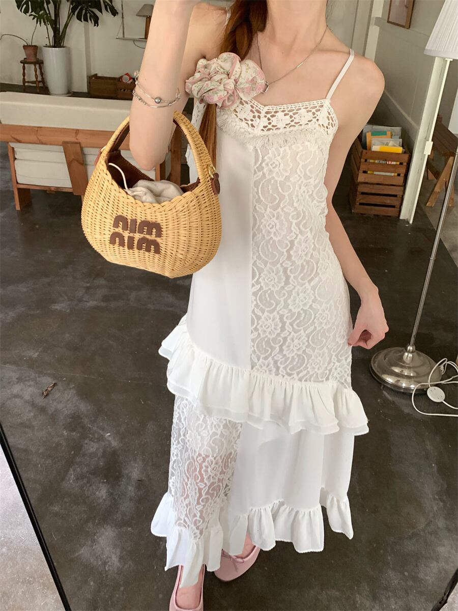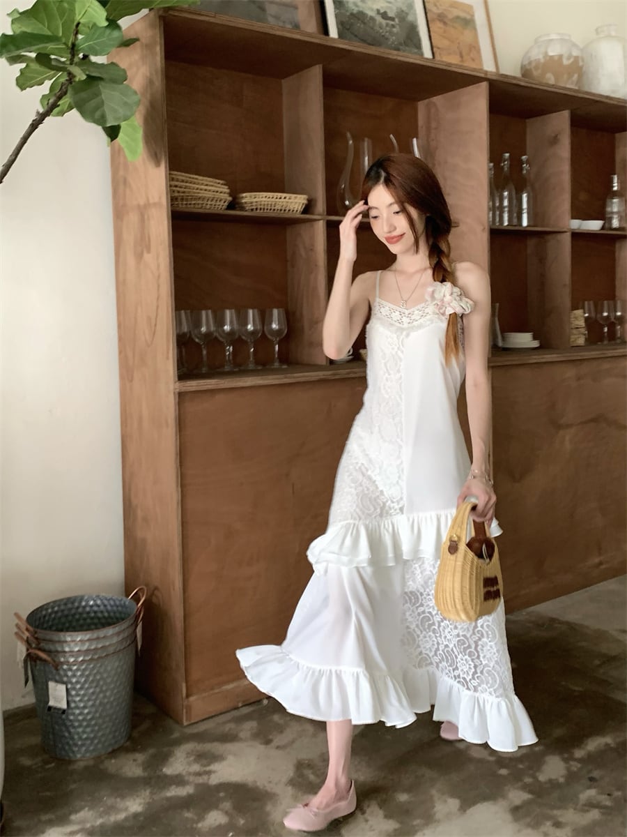 【dress】レースフリル透かし彫りキャミワンピース G21512