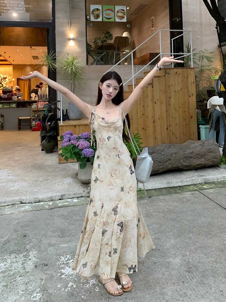 【dress】フランス風プリントキャミワンピース G21521