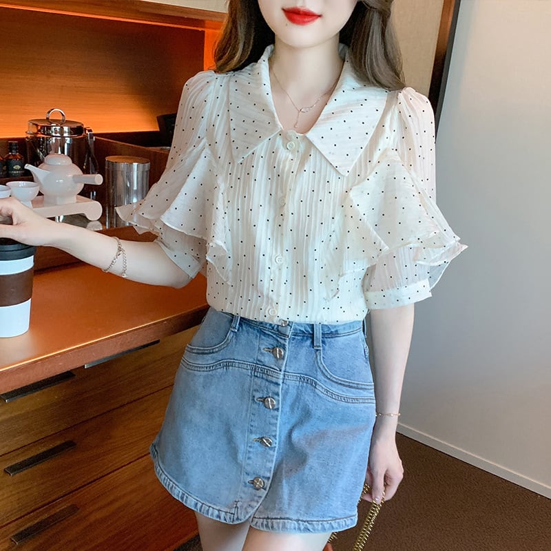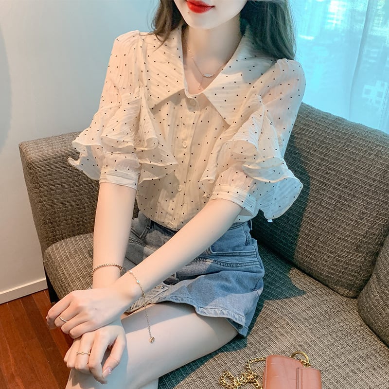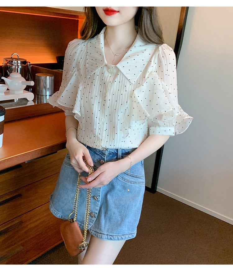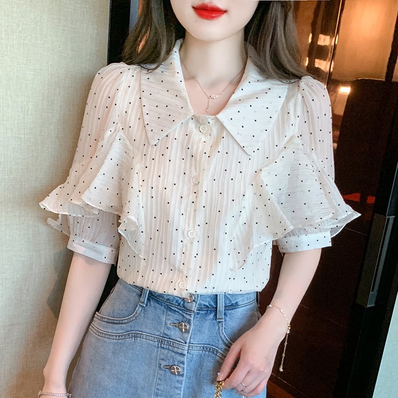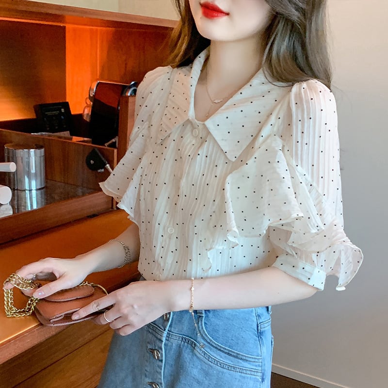 【tops】パフスリーブドット柄ブラウスG21556