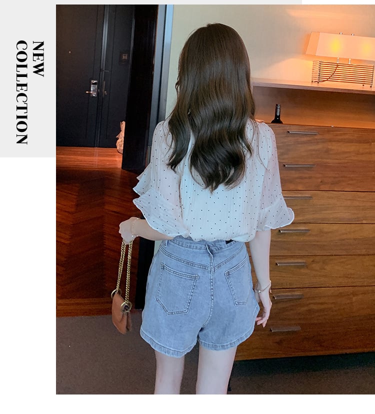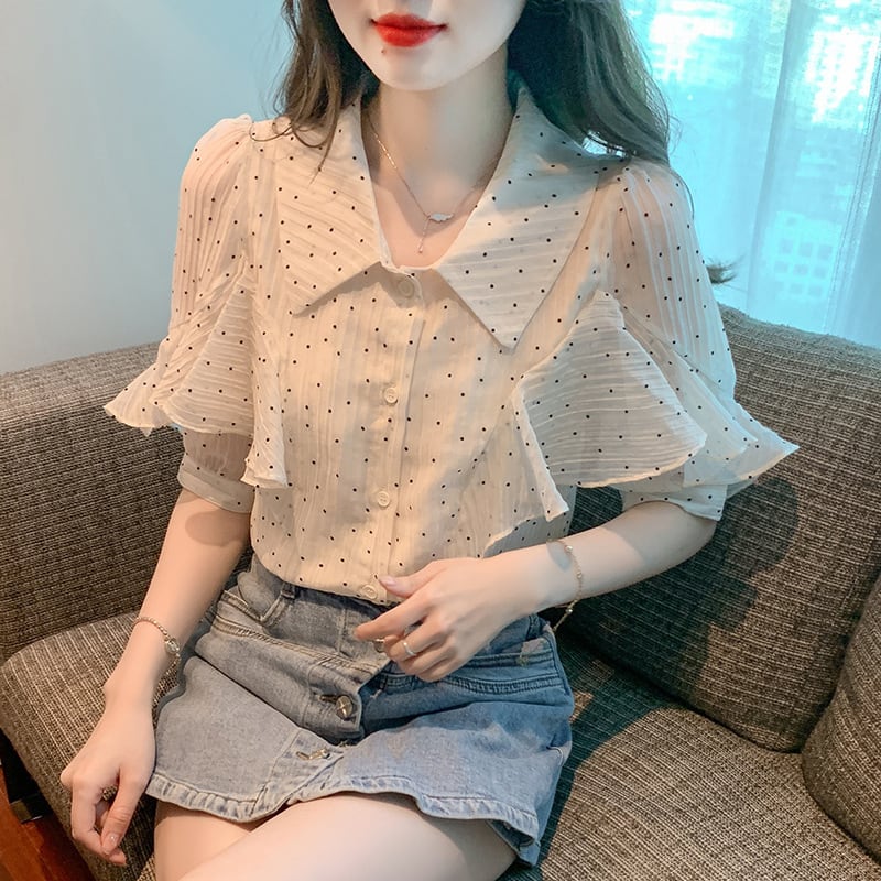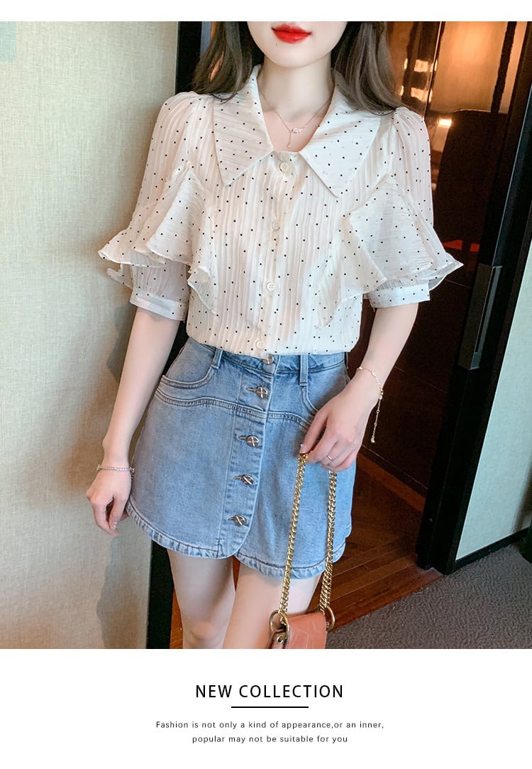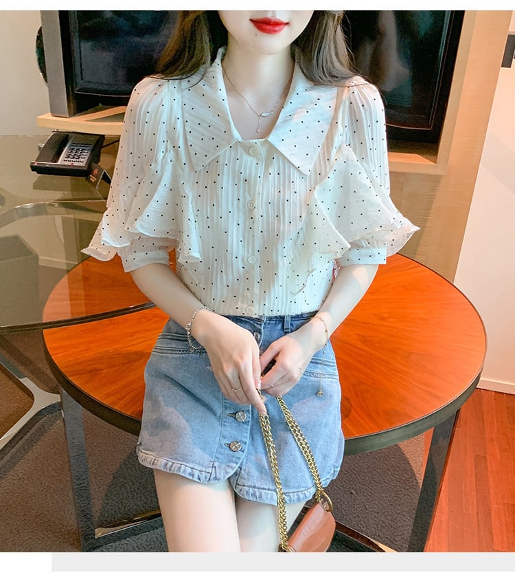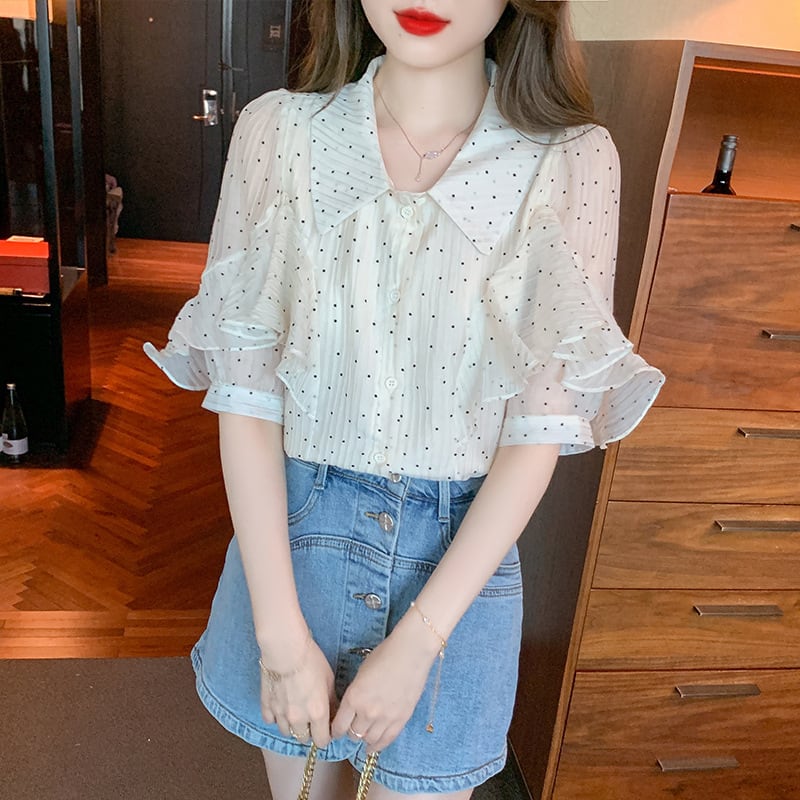 【tops】パフスリーブドット柄ブラウスG21556