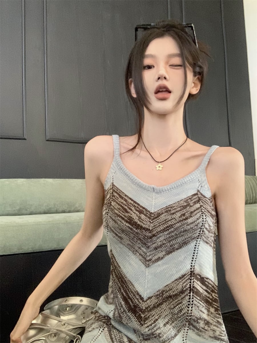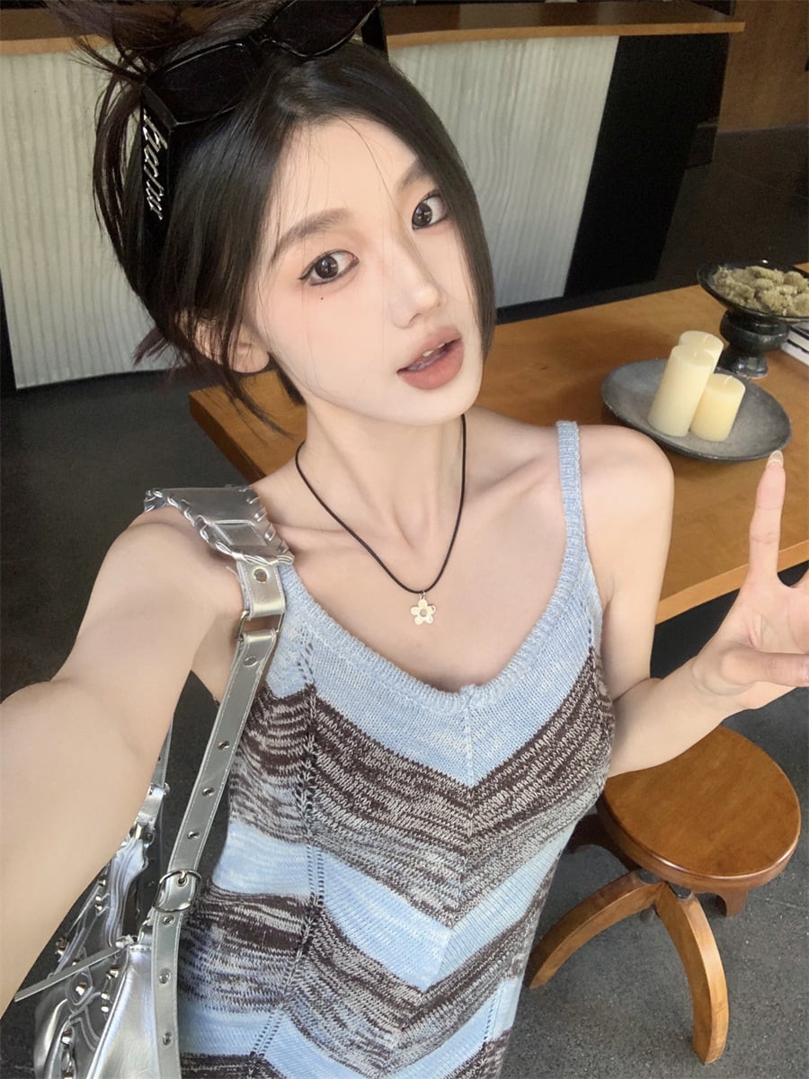 【dress】ストライプ柄ニットキャミワンピース G21561