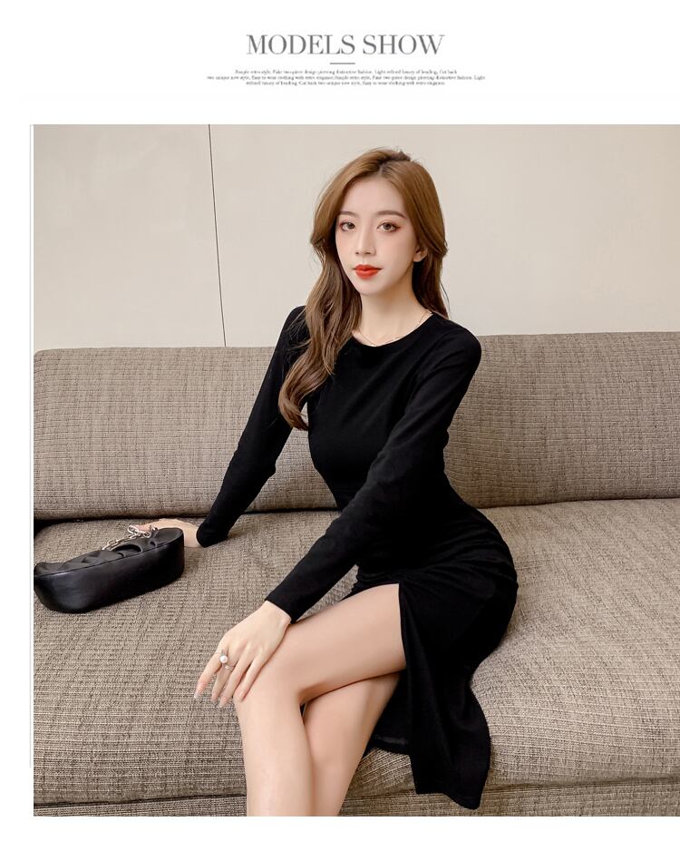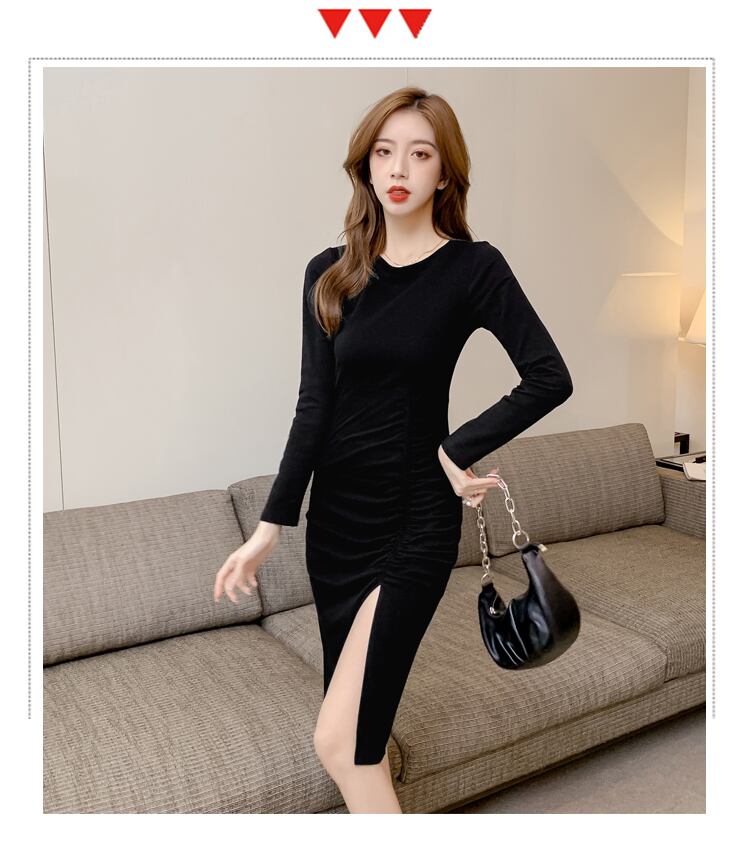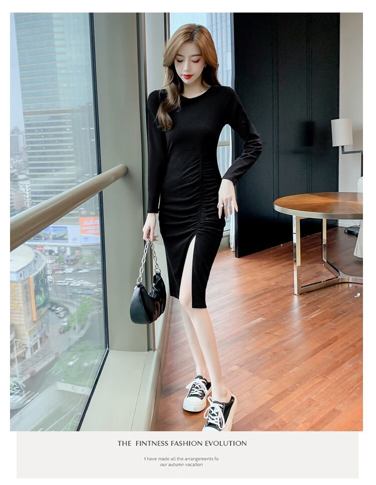 【dress】エレガント気質満点秋体型カバーデザインタイトスリットワンピース G2236