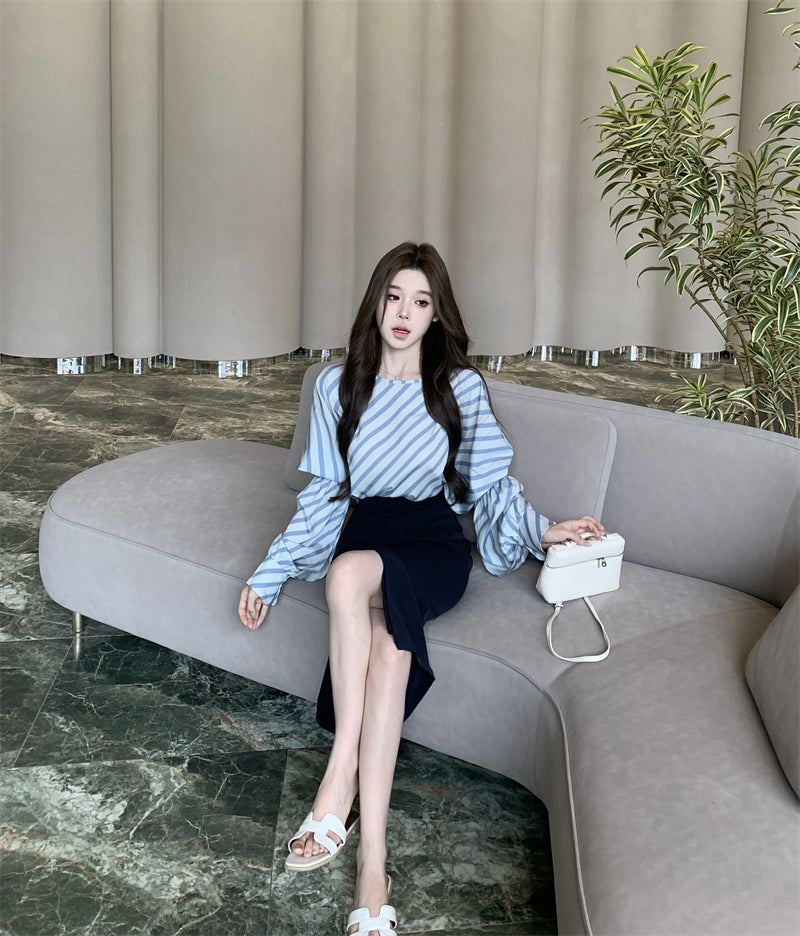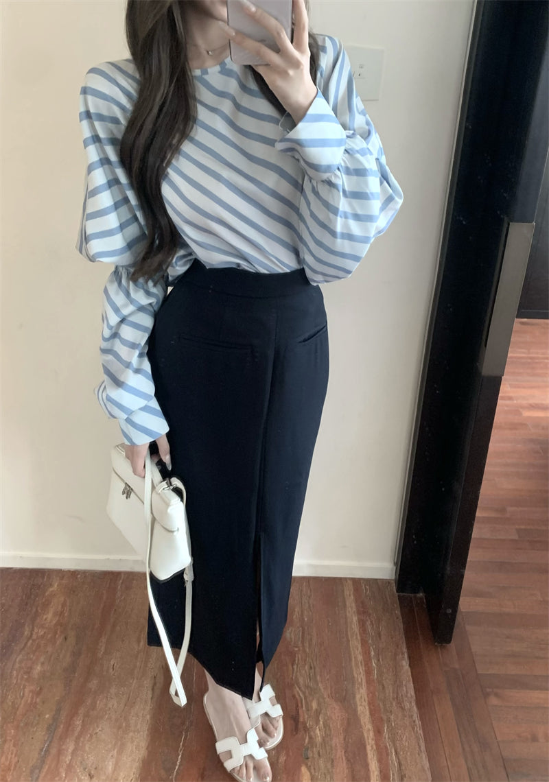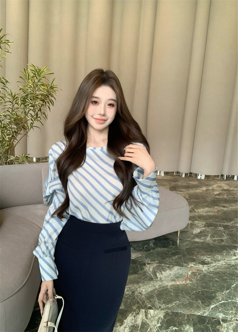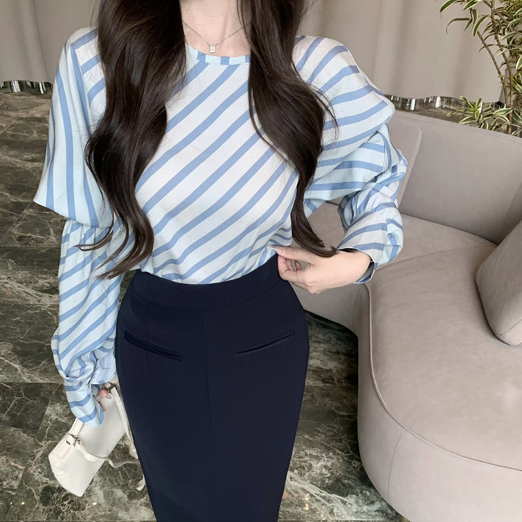 【tops】ストライプ柄長袖シャツG23001