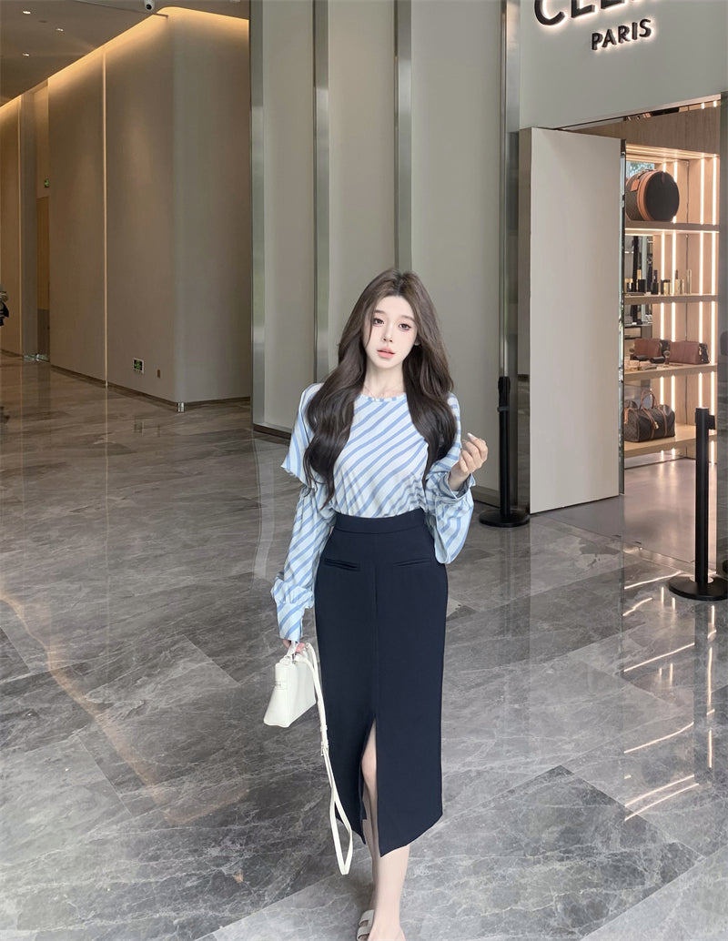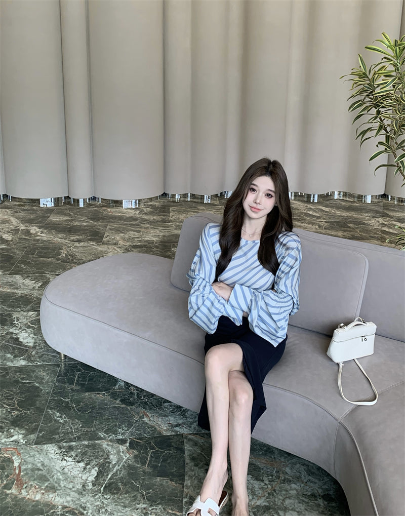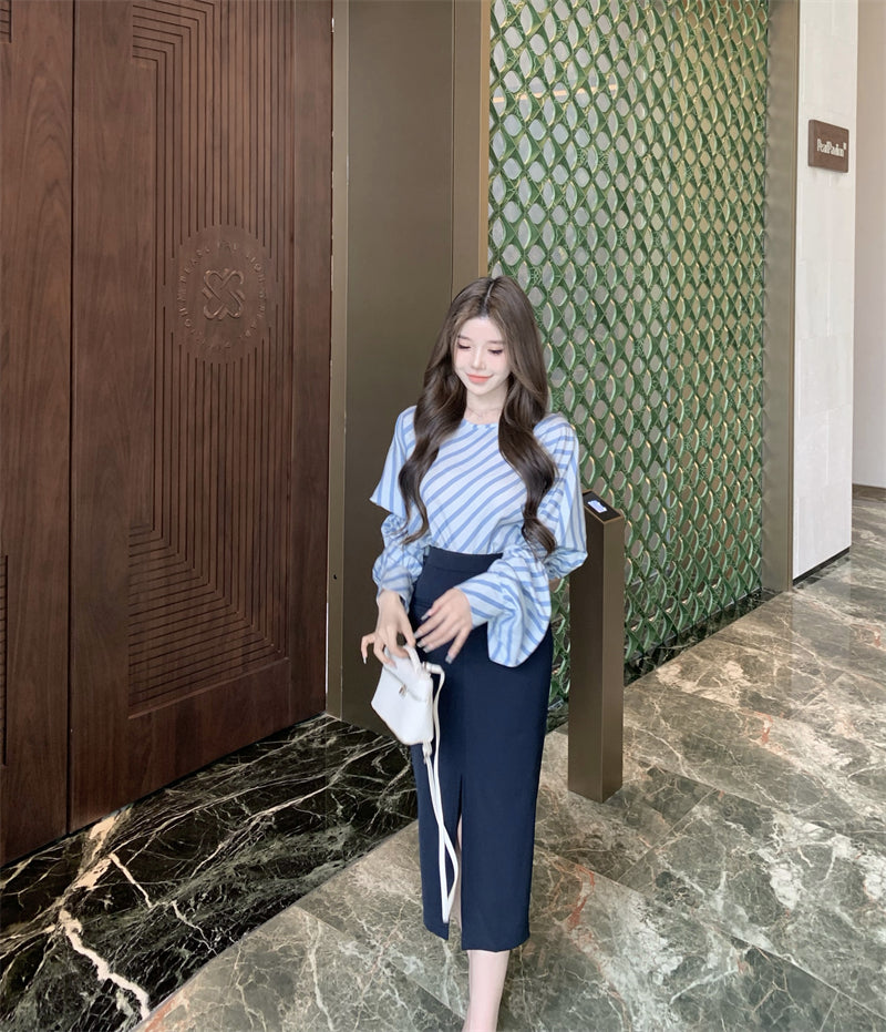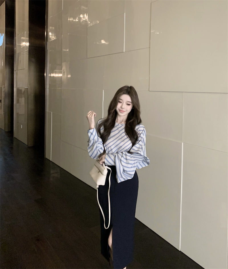 【tops】ストライプ柄長袖シャツG23001
