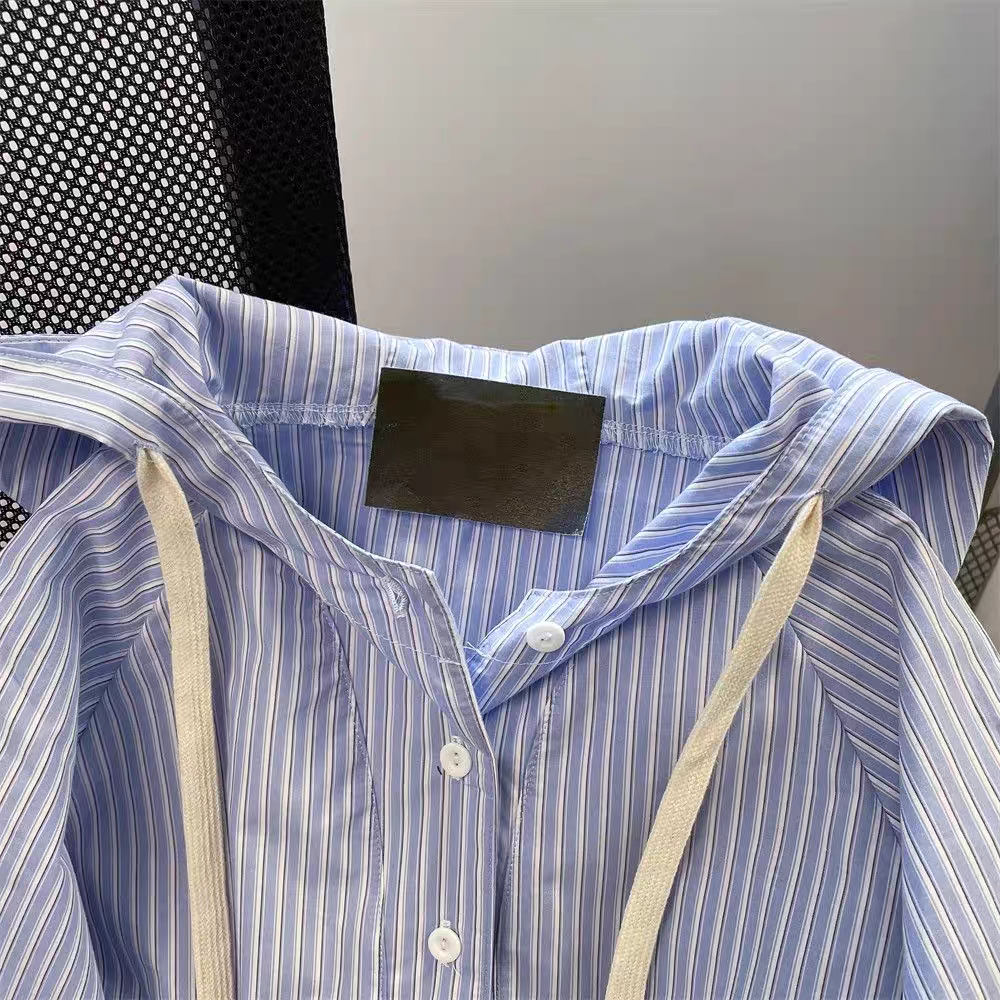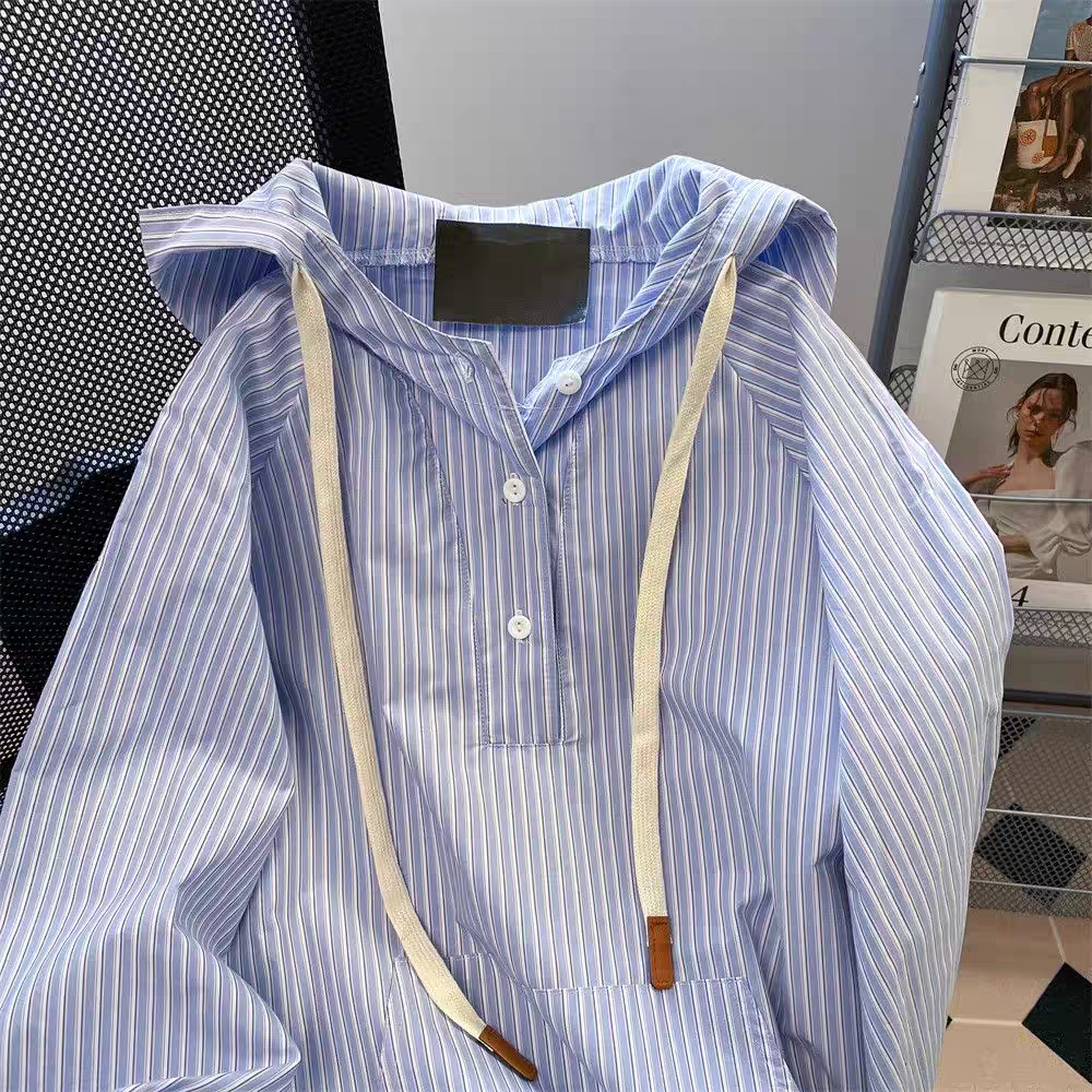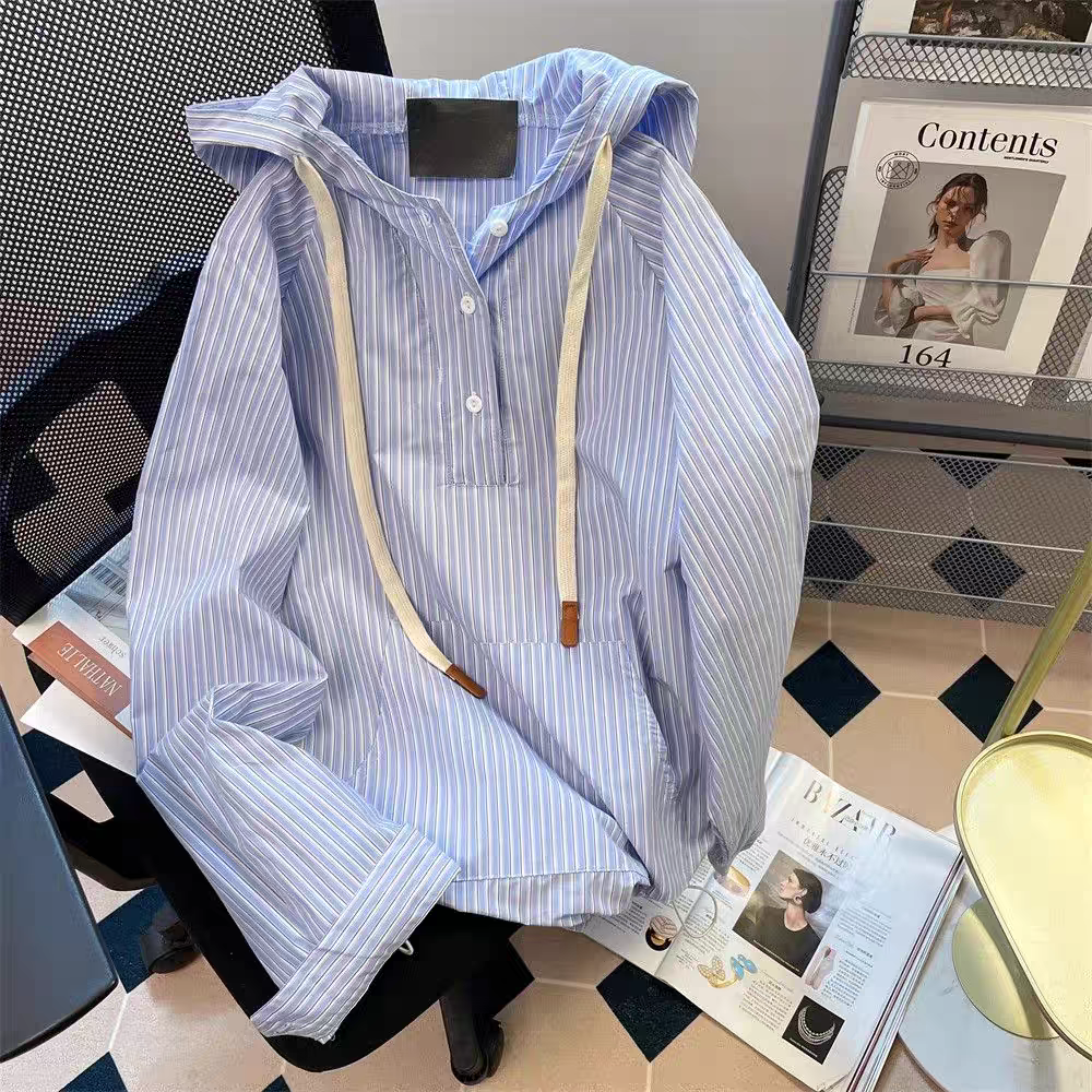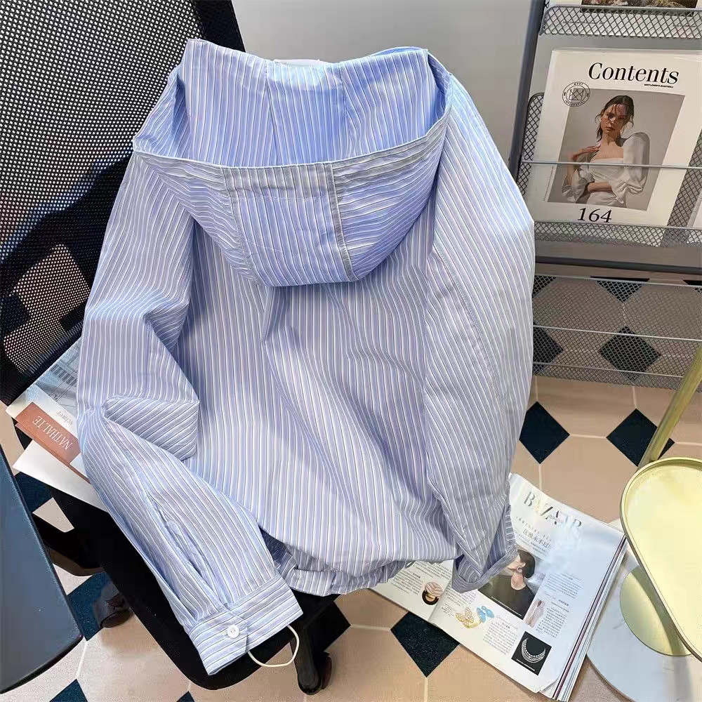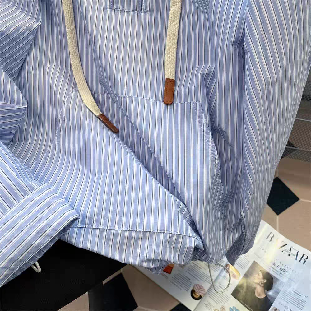 【tops】ストライプ柄フード付きシャツパーカーG23271
