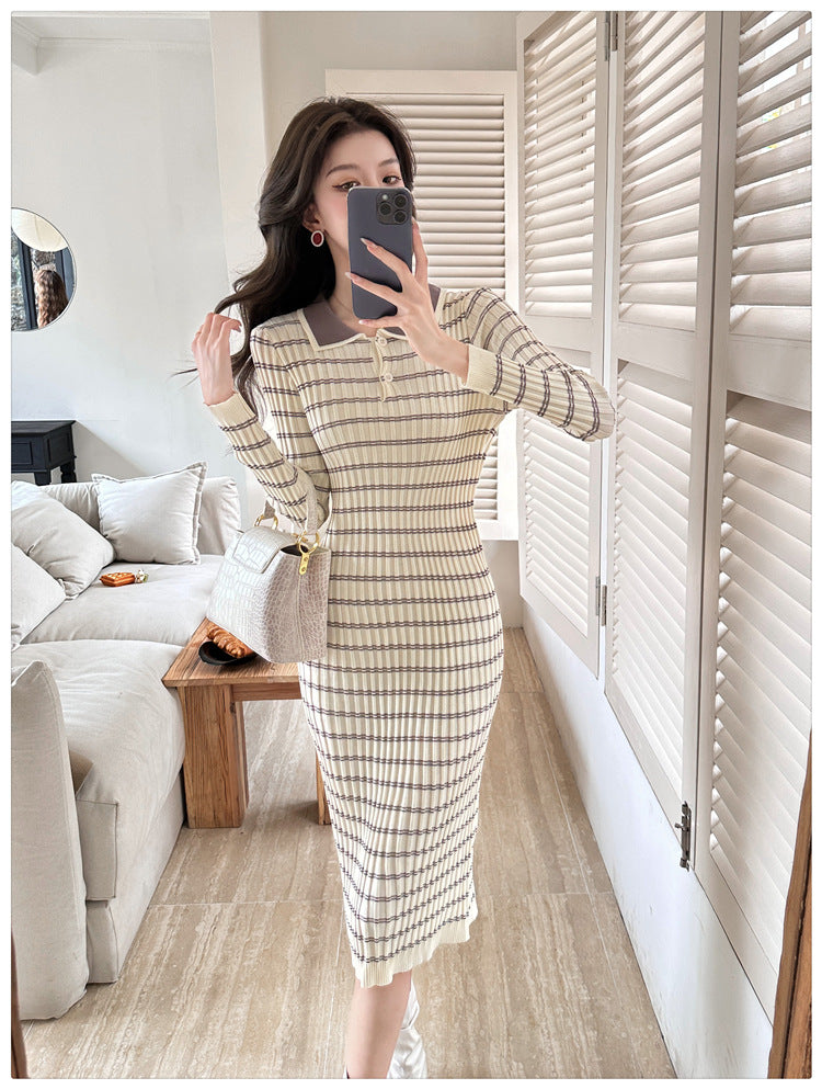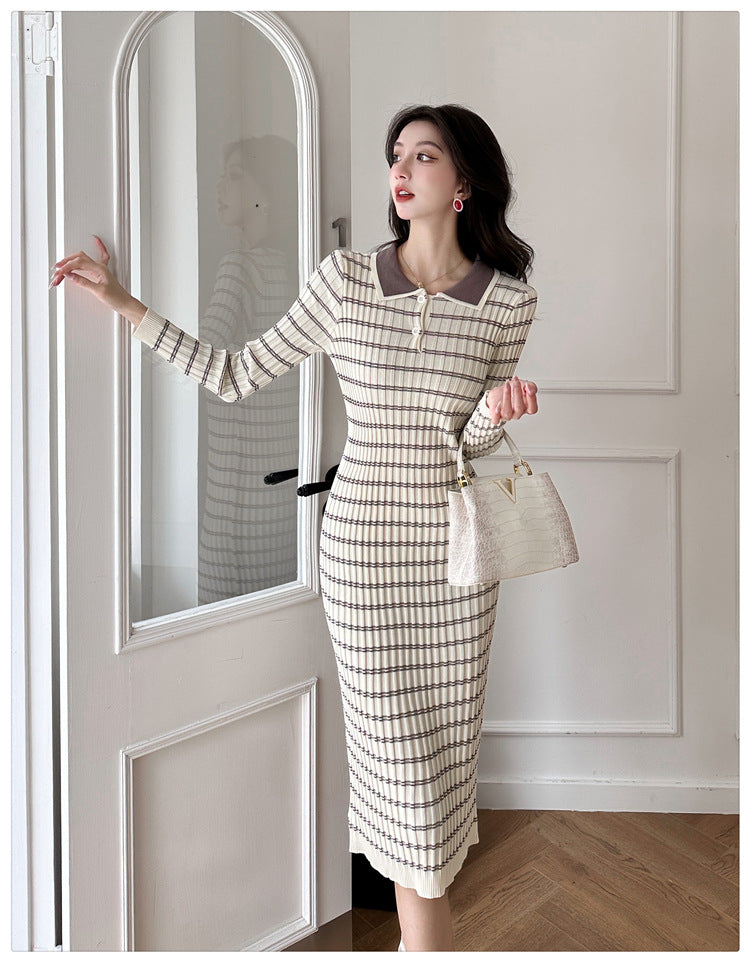 【dress】POLOネック長袖タイトニットワンピースG23291