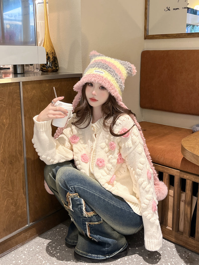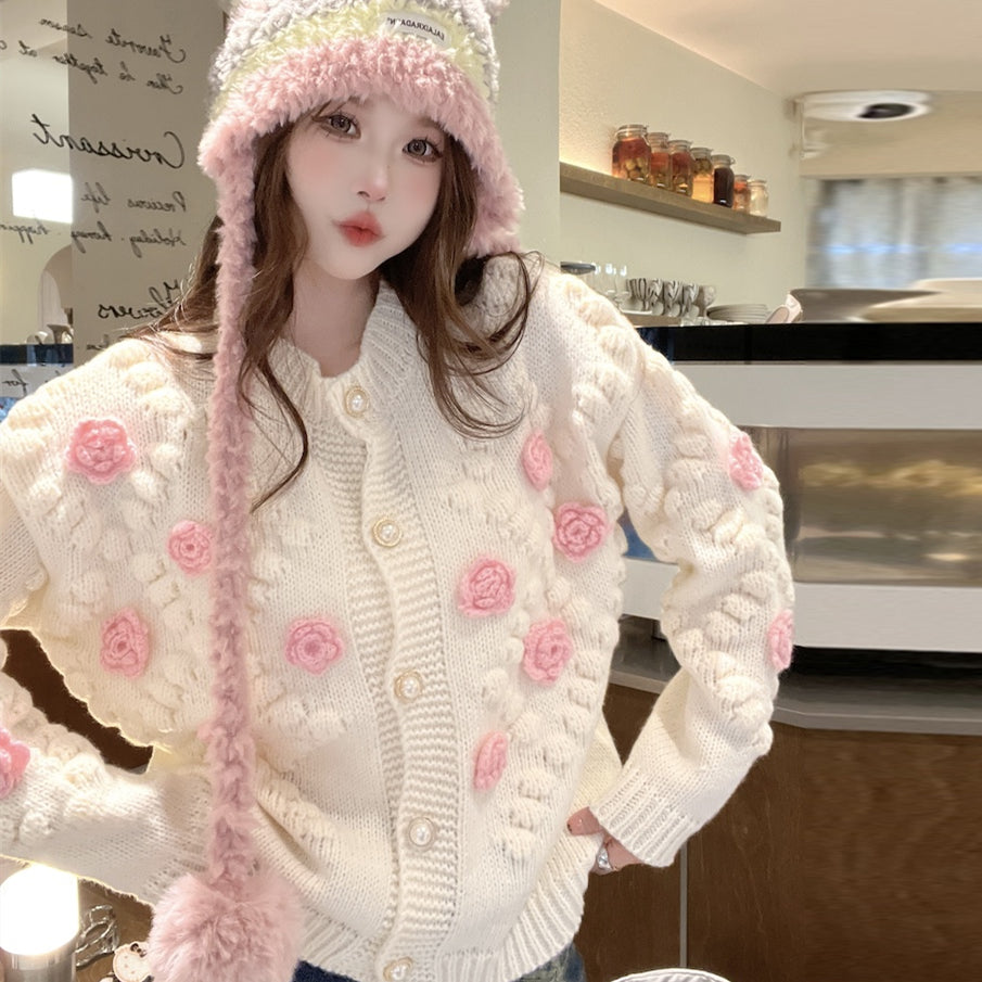 【outer】フラワースウィートニットカーディガンG23306