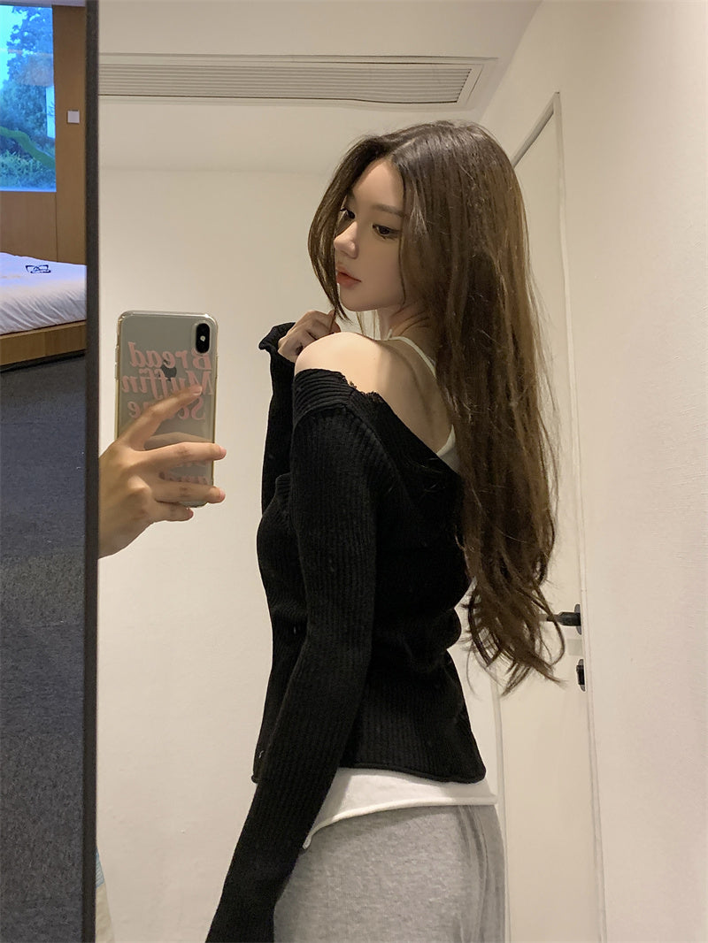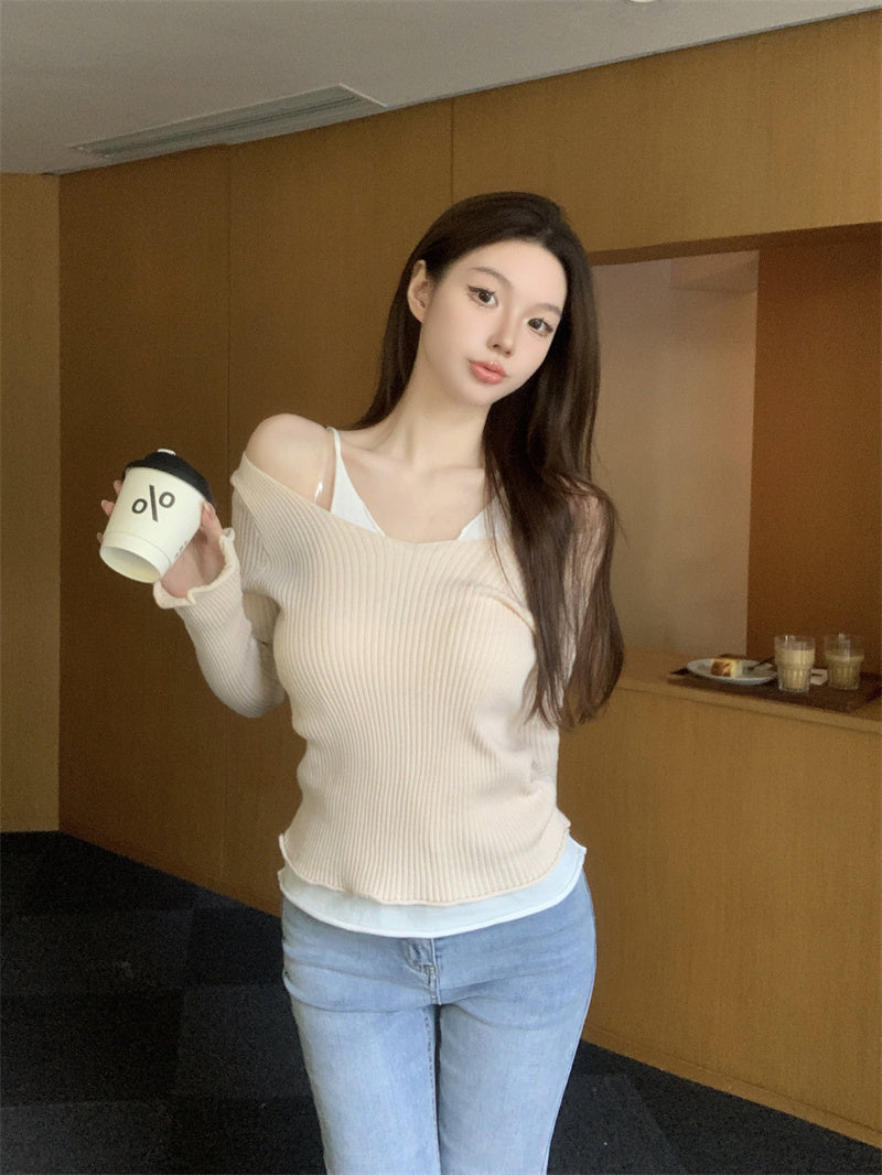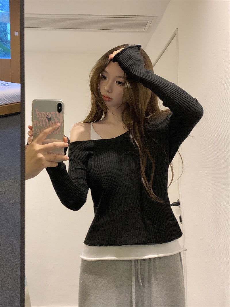 【tops】偽二つ切り替えニットトップスG23326