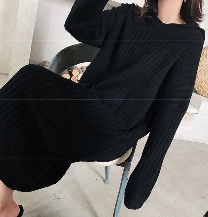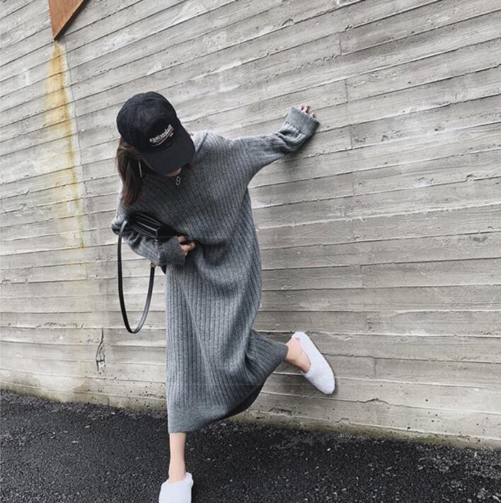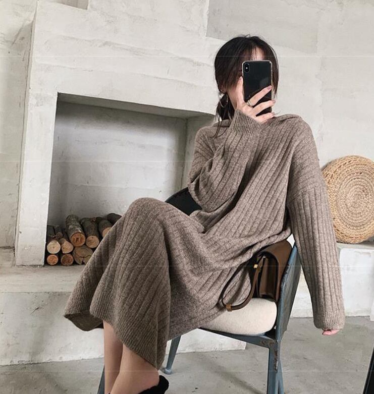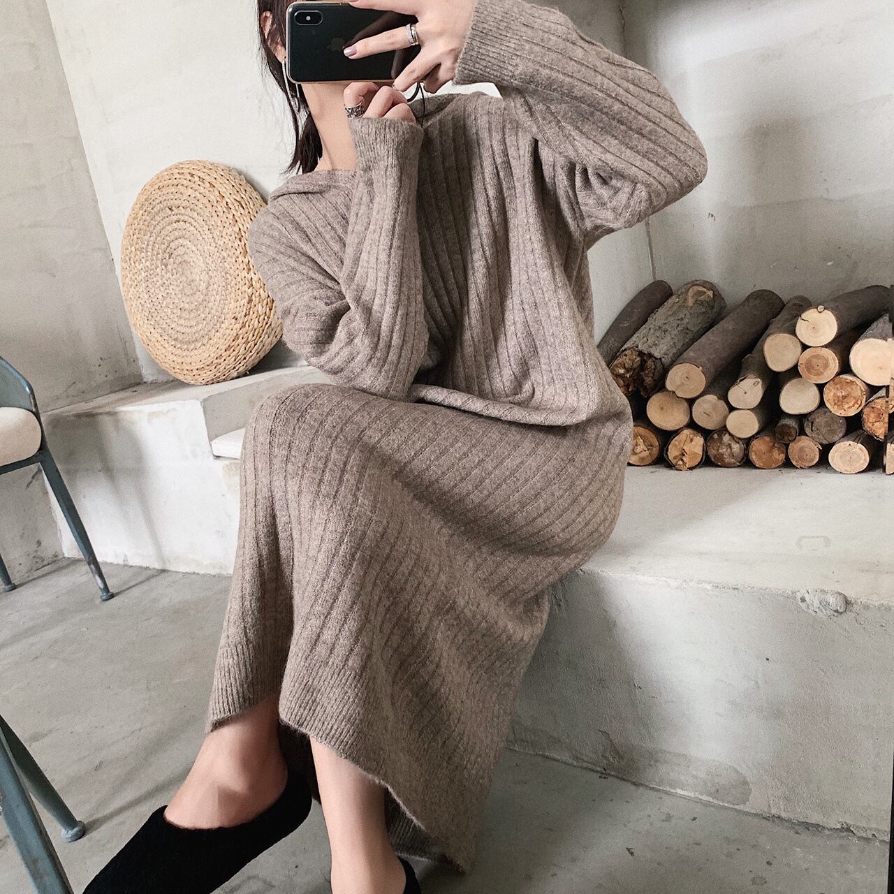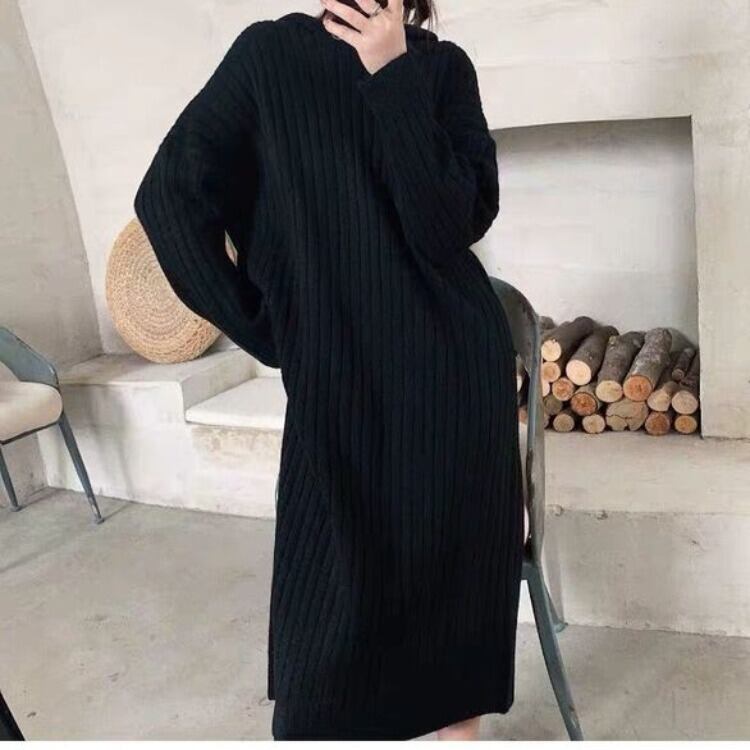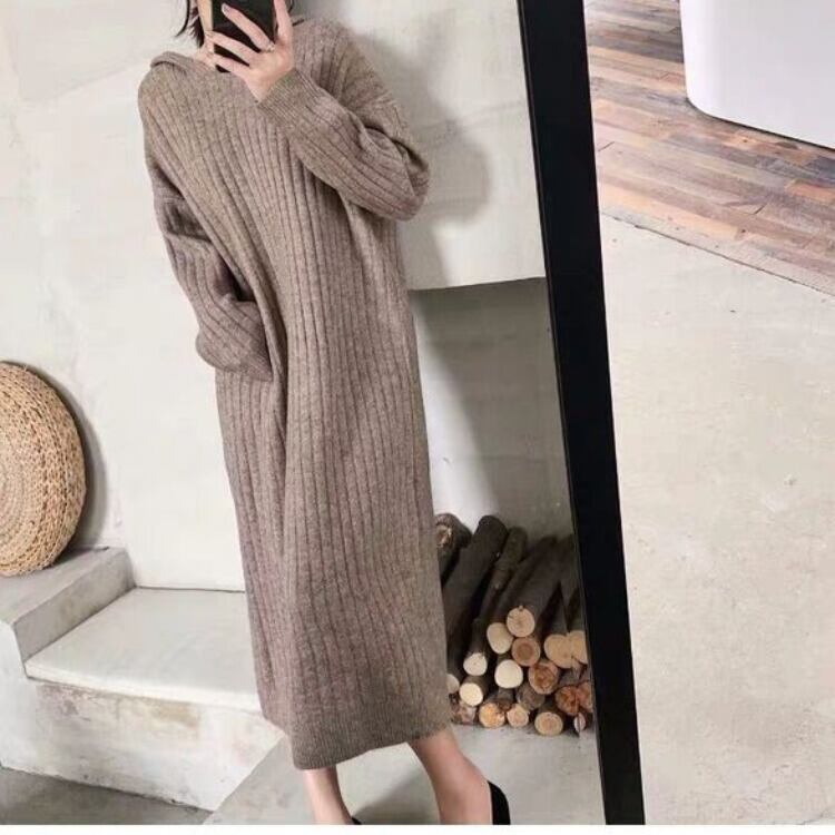 【dress】韓流スタイル好感度UP!気質満点秋冬新作レトロルーズニットワンピース G2346