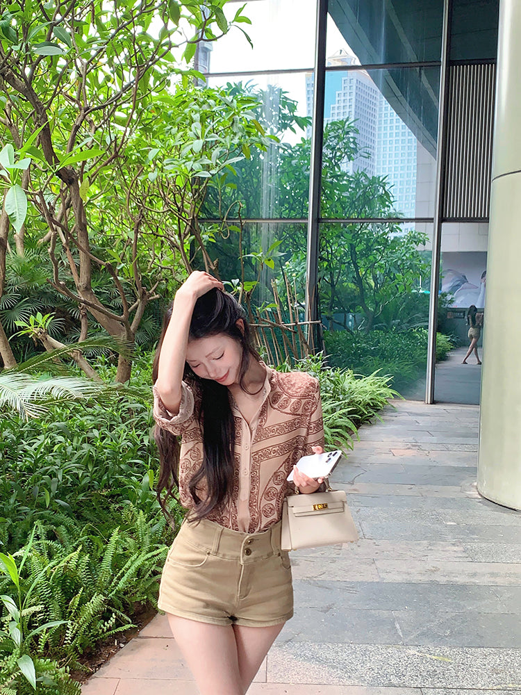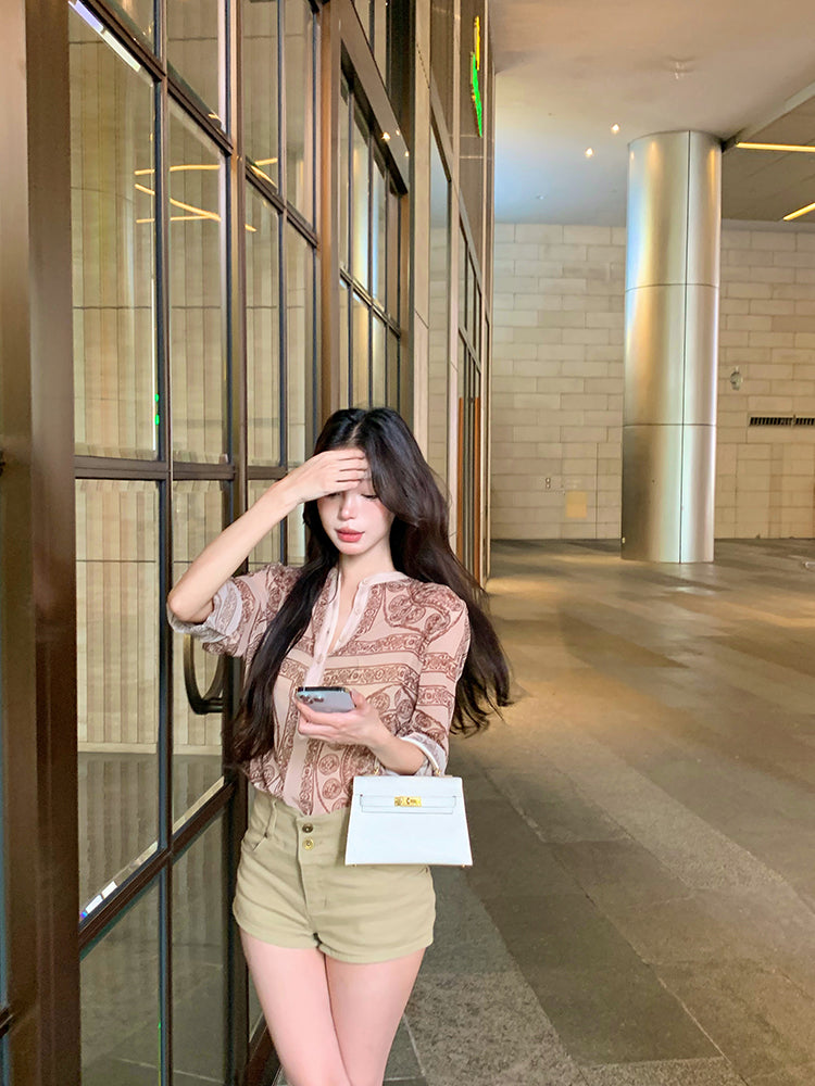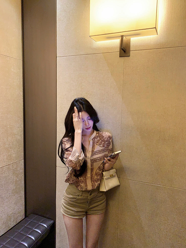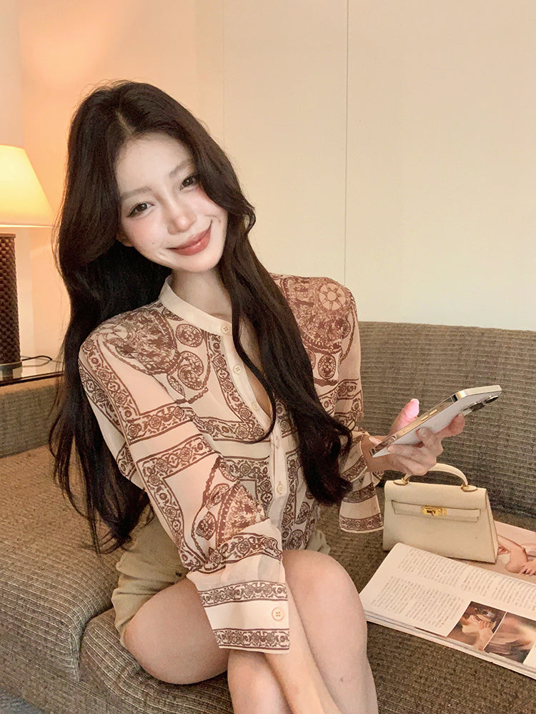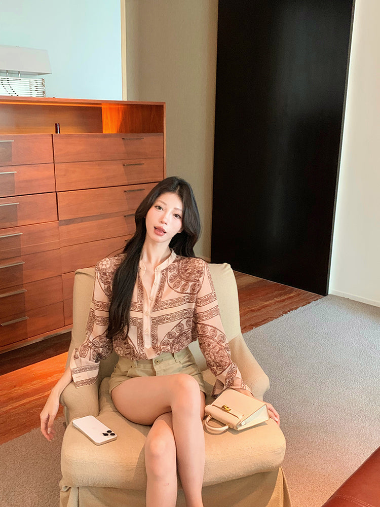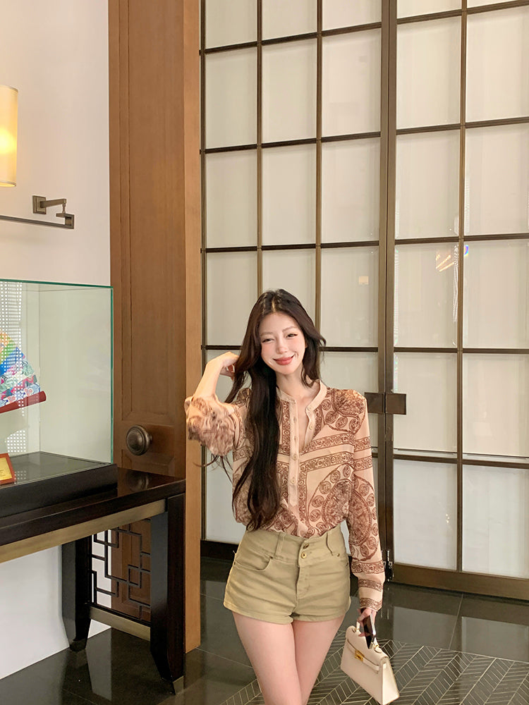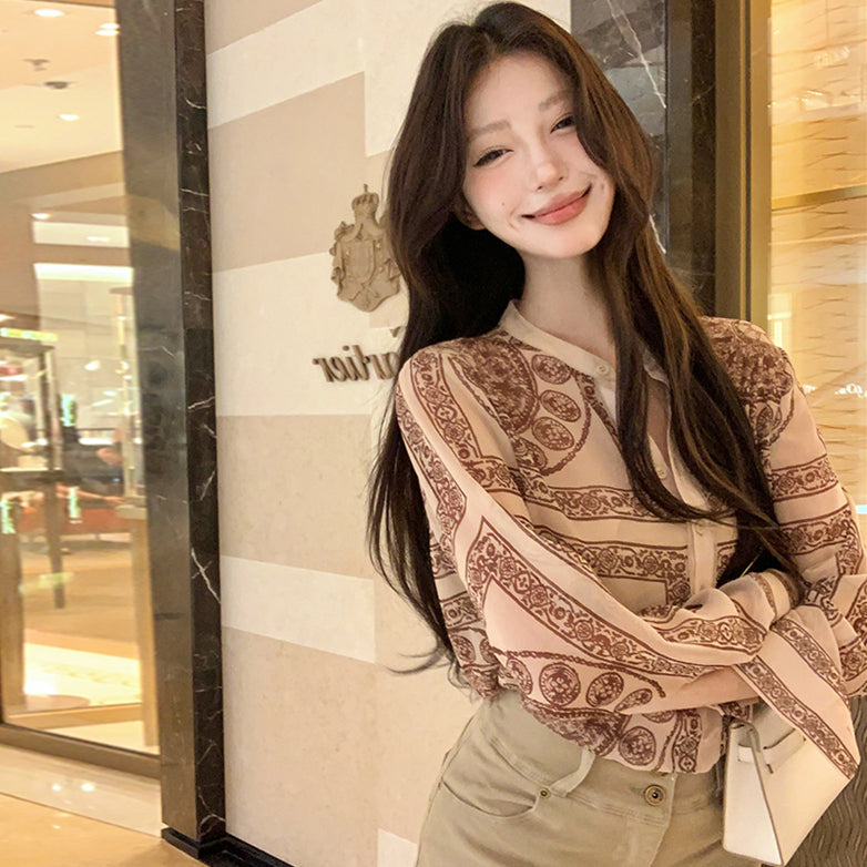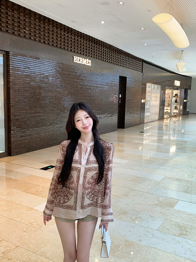 【tops】レトロラウンドネック長袖ブラウスG23545