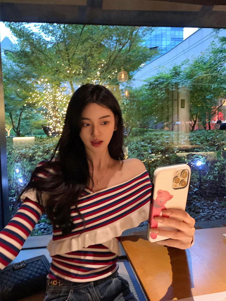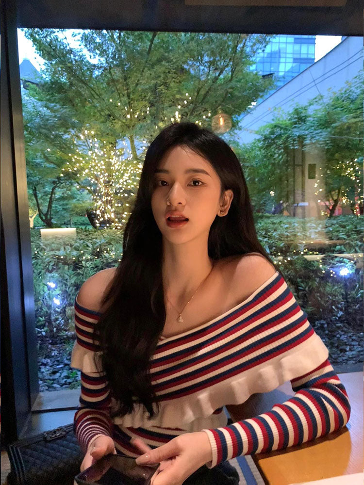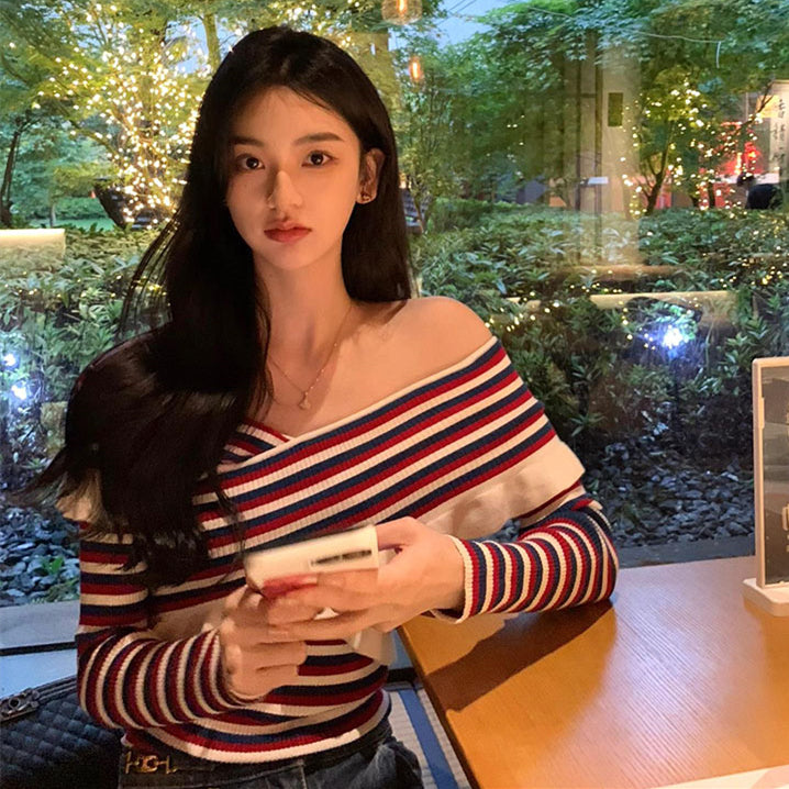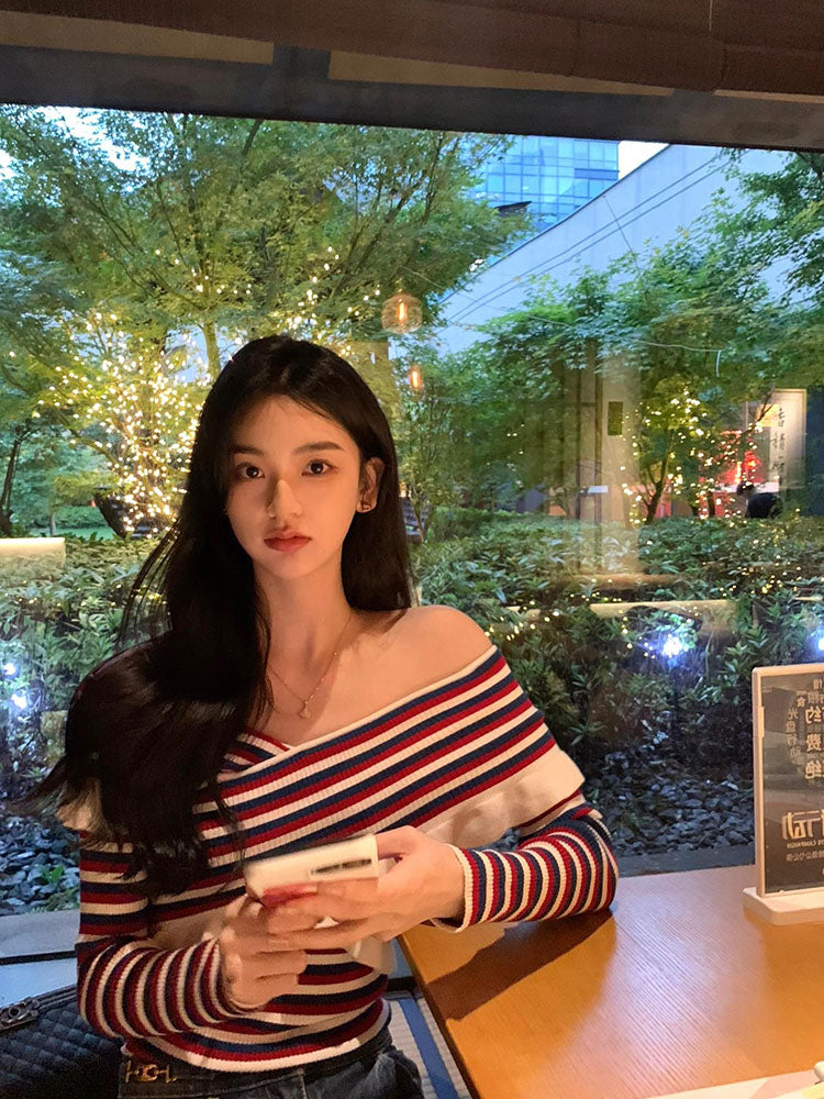 【tops】ボートネックストライプ柄ニットG23610