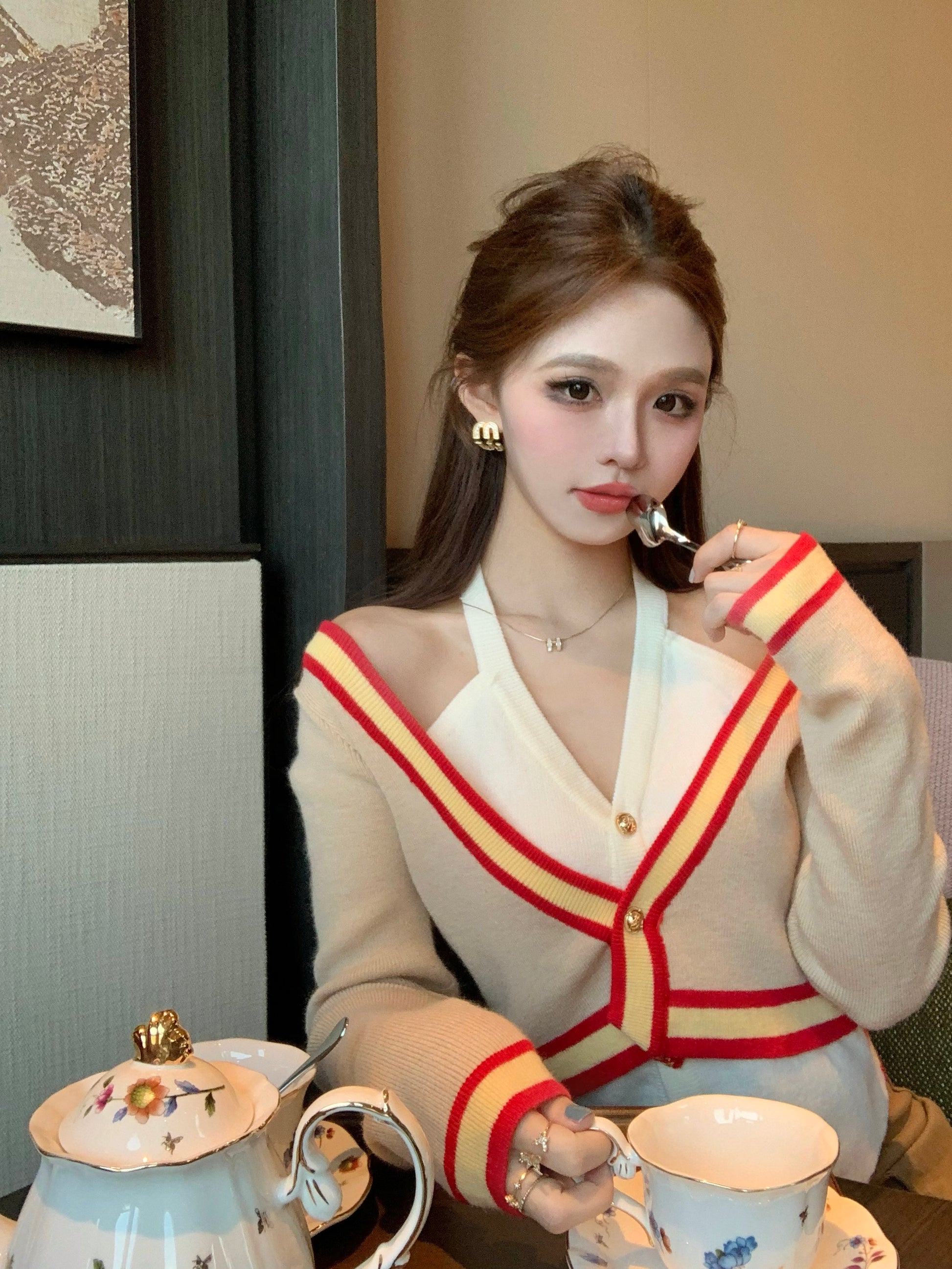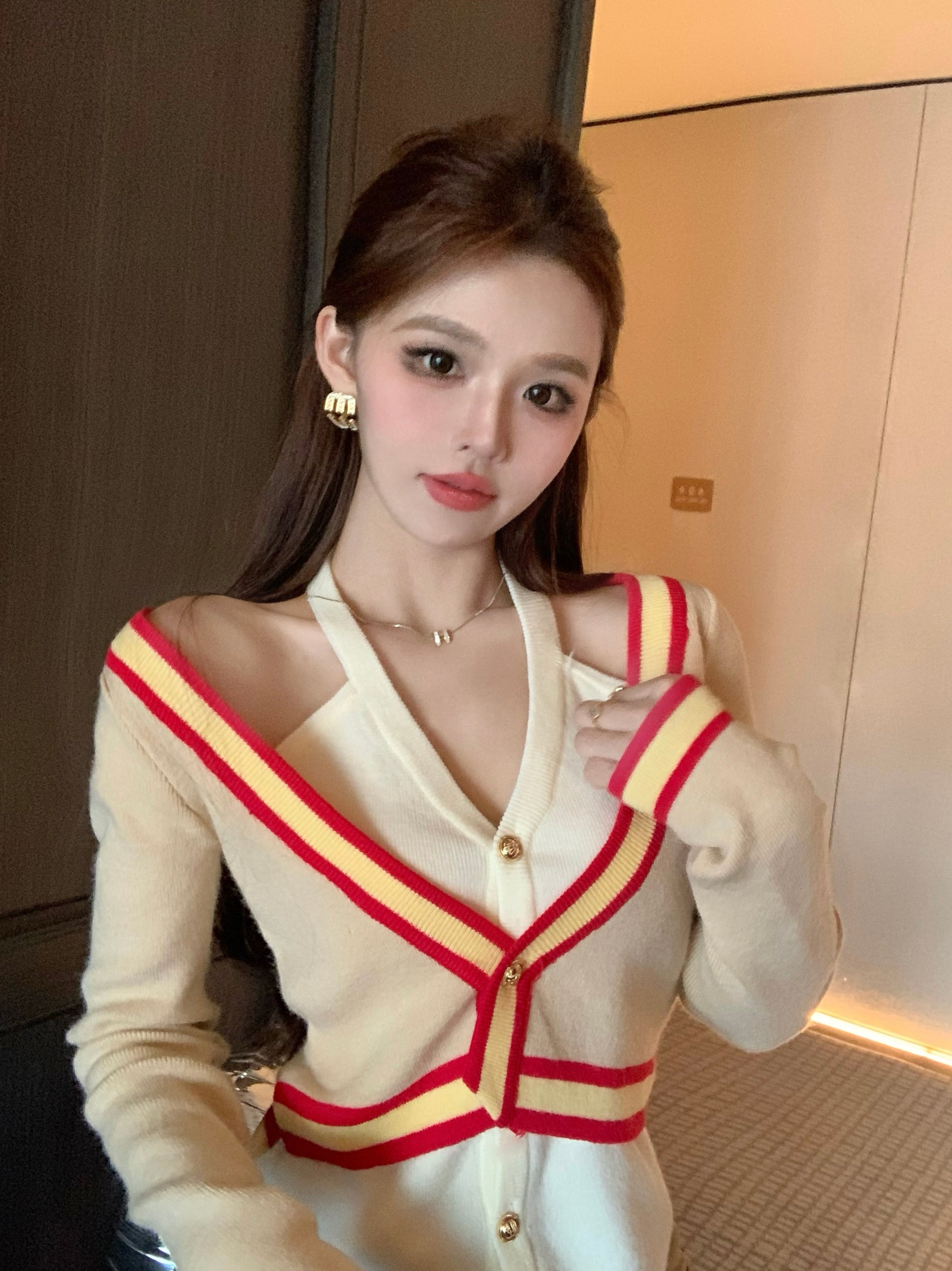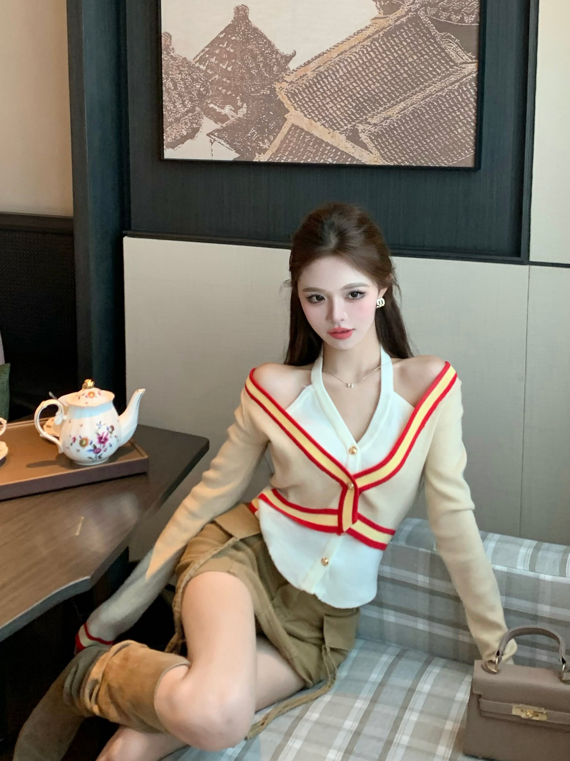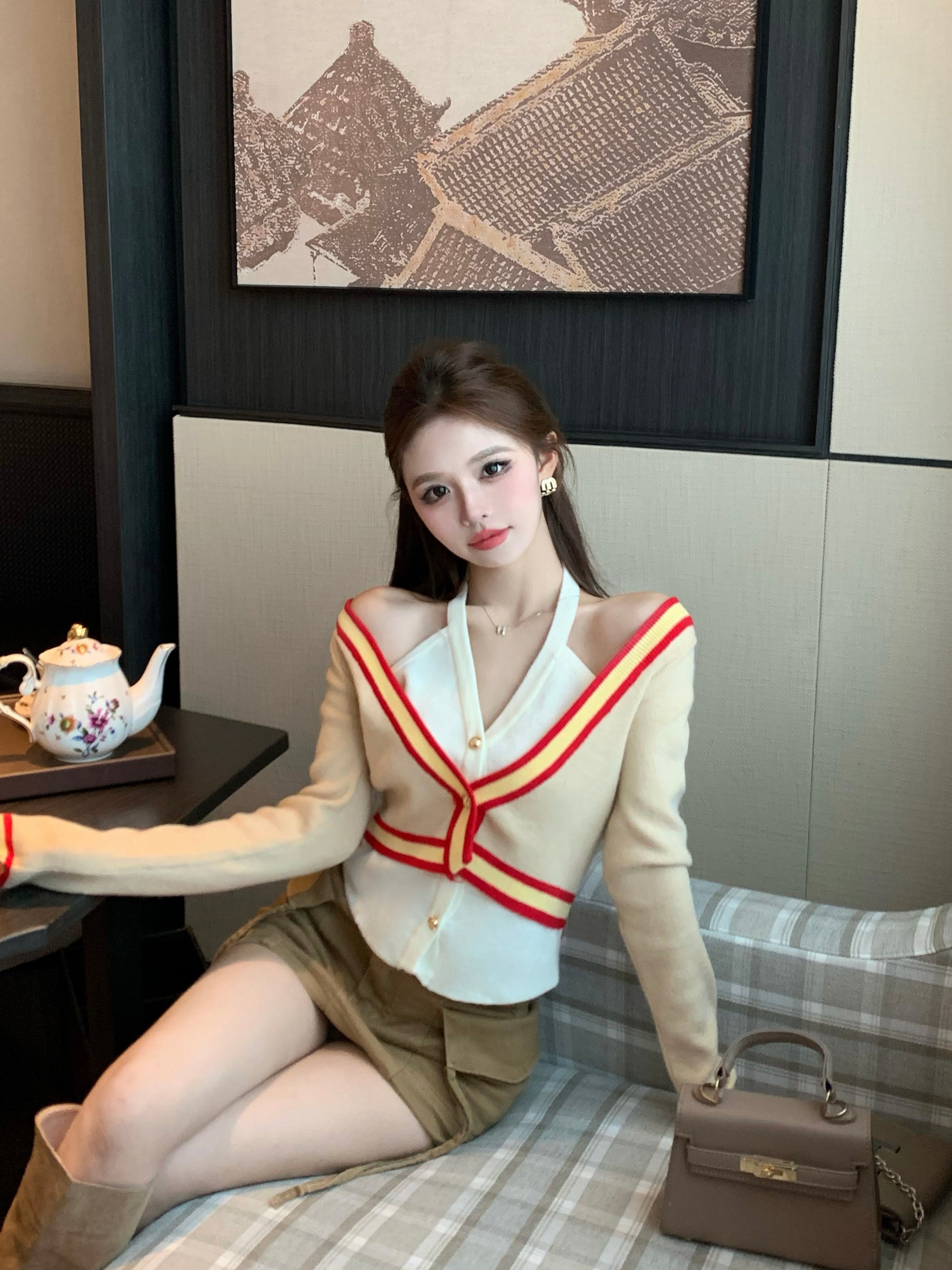 【tops】偽二つ切り替えVネックニットG23612