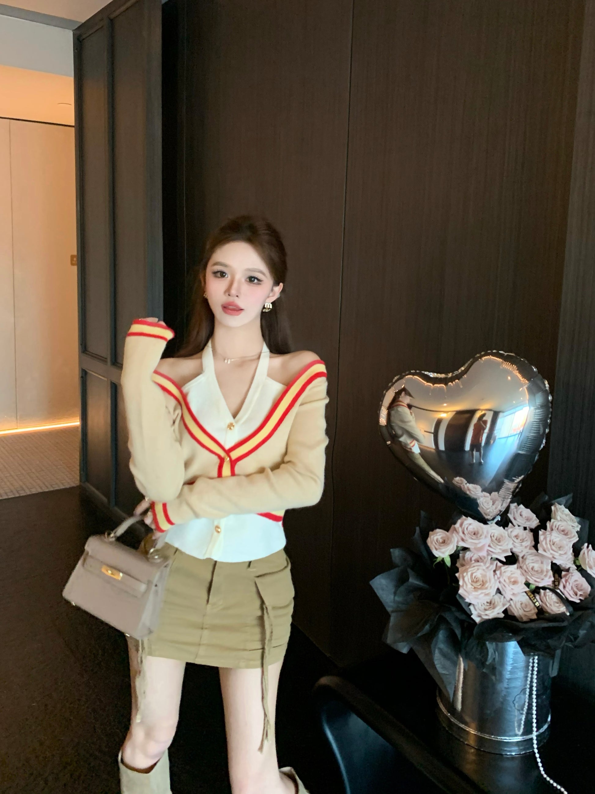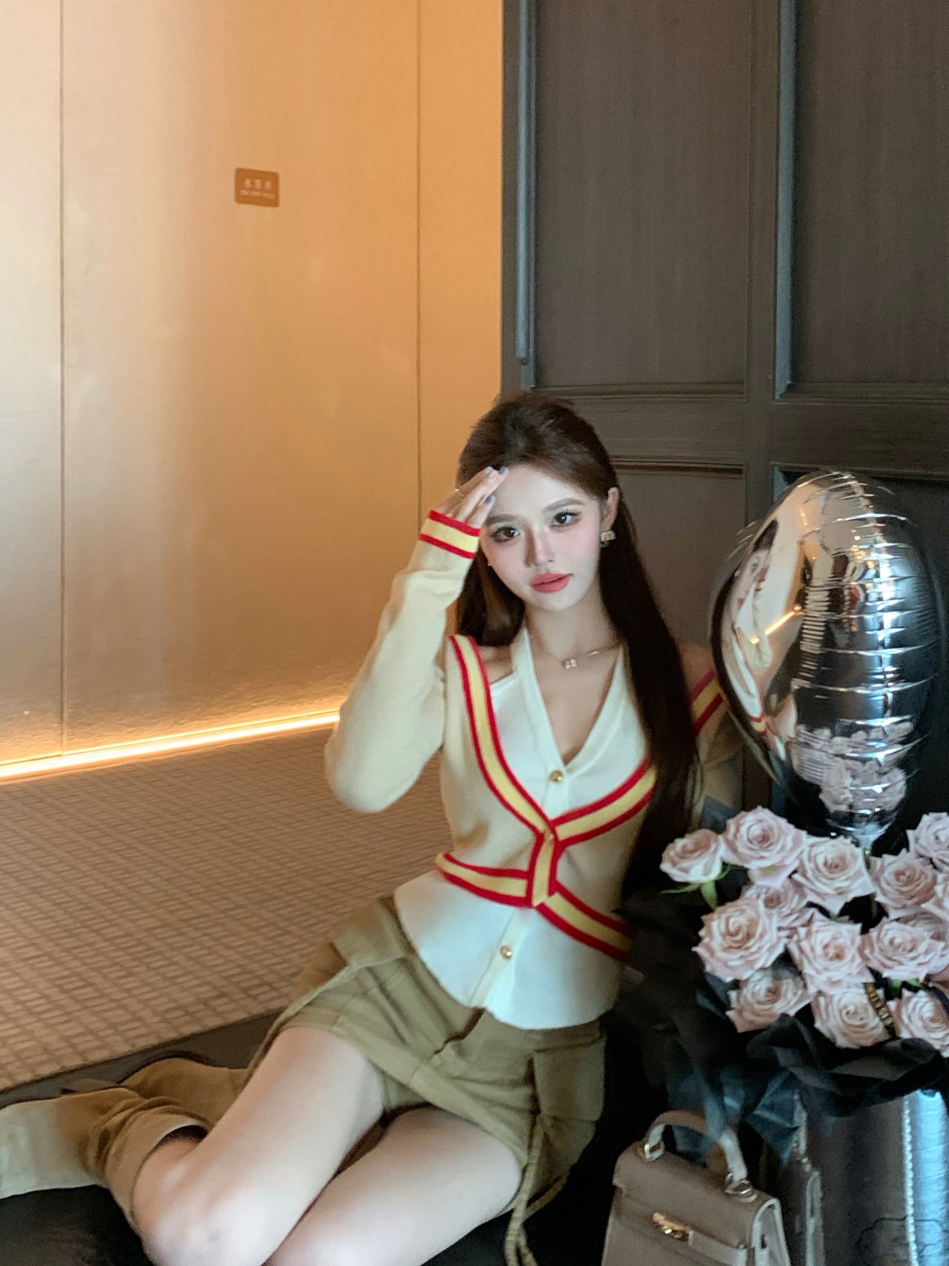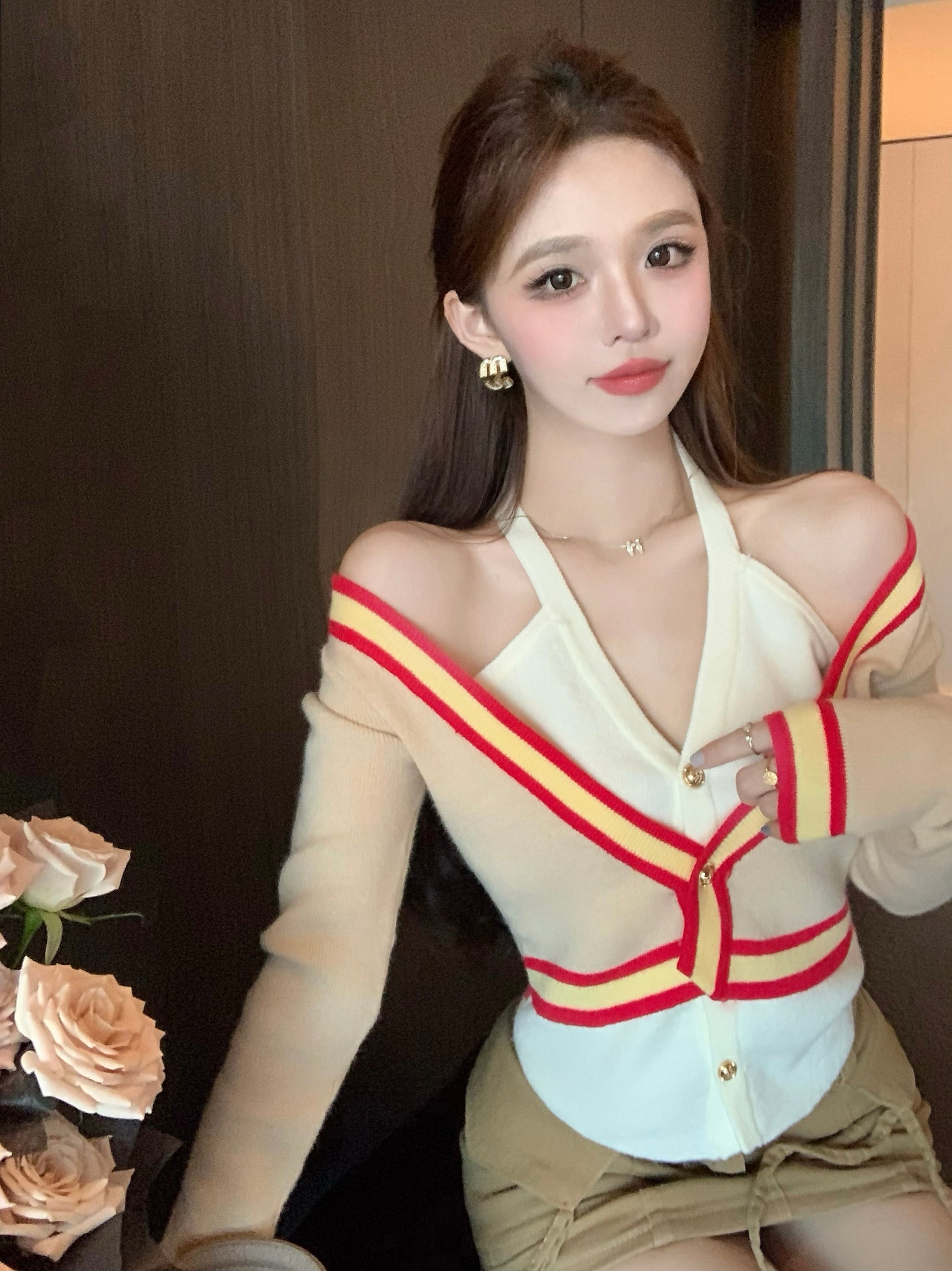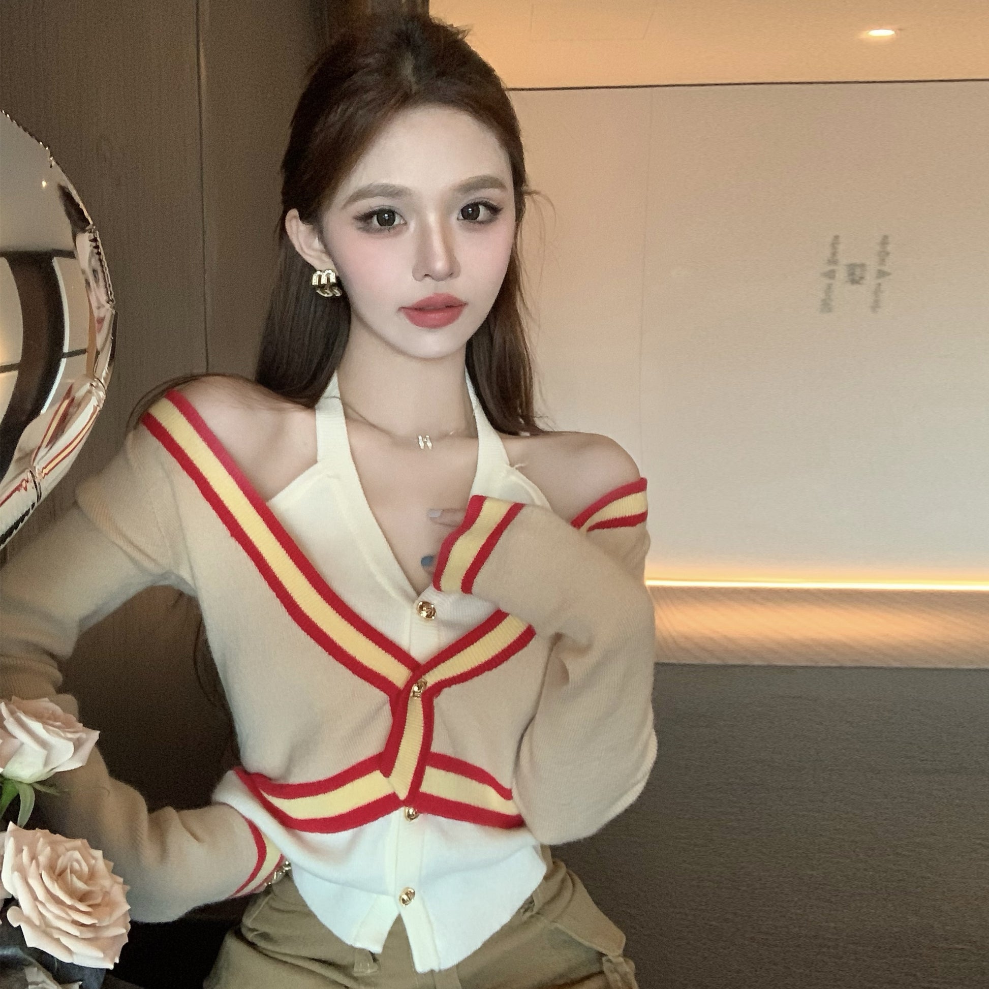 【tops】偽二つ切り替えVネックニットG23612