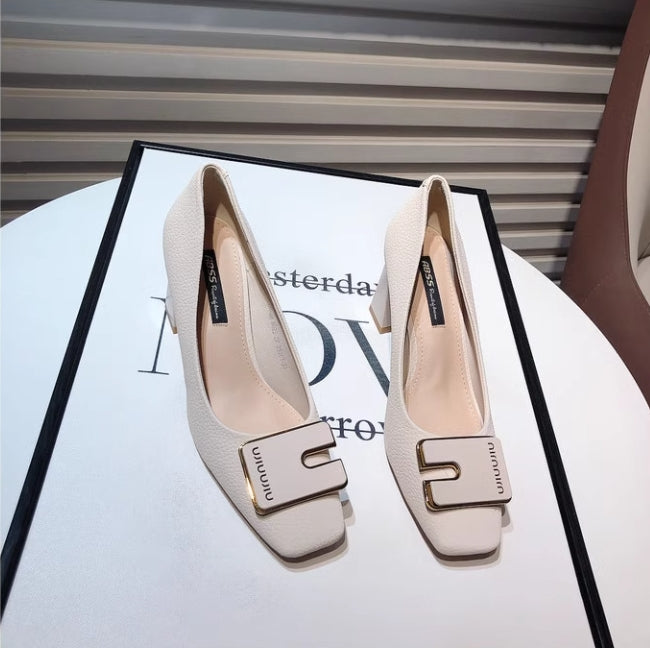 【shoes】スクエアトゥチャンキーヒールパンプスG23648