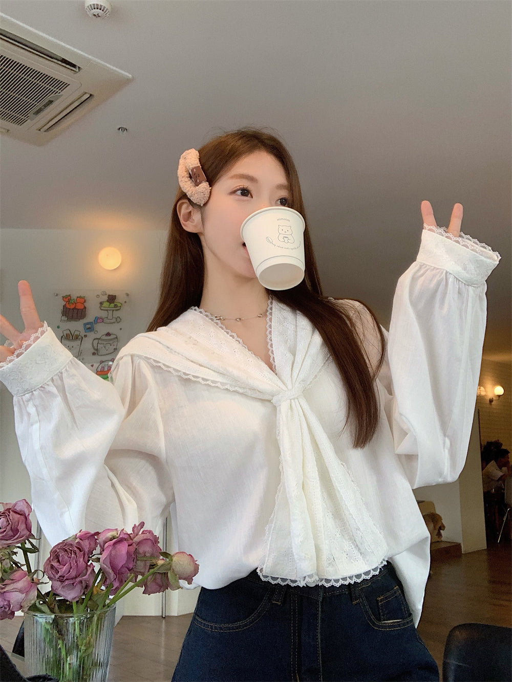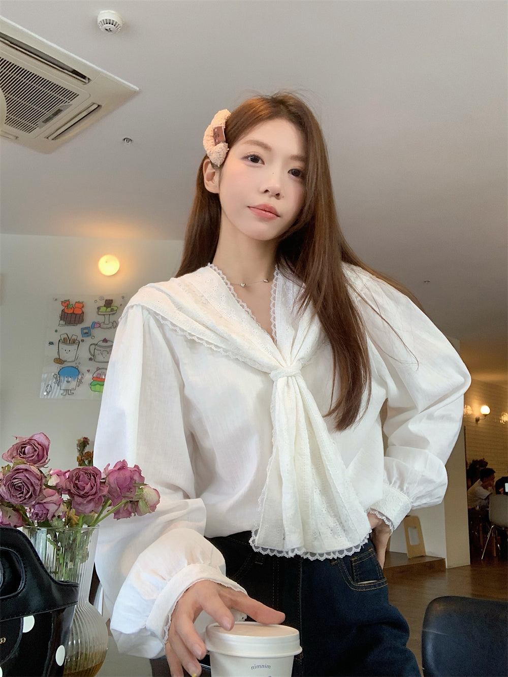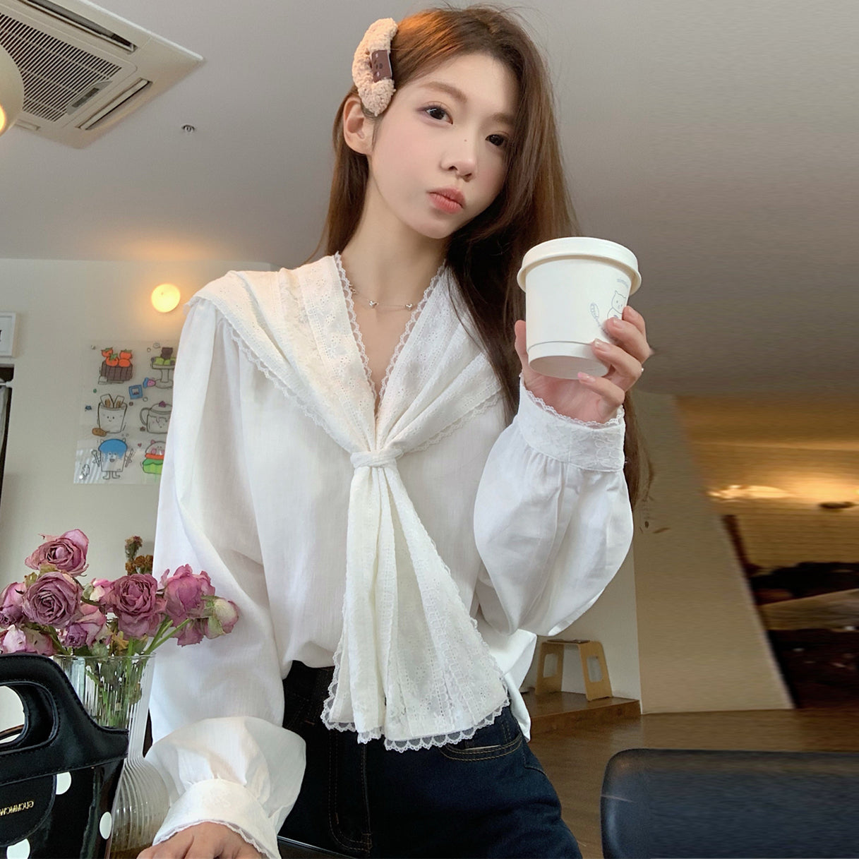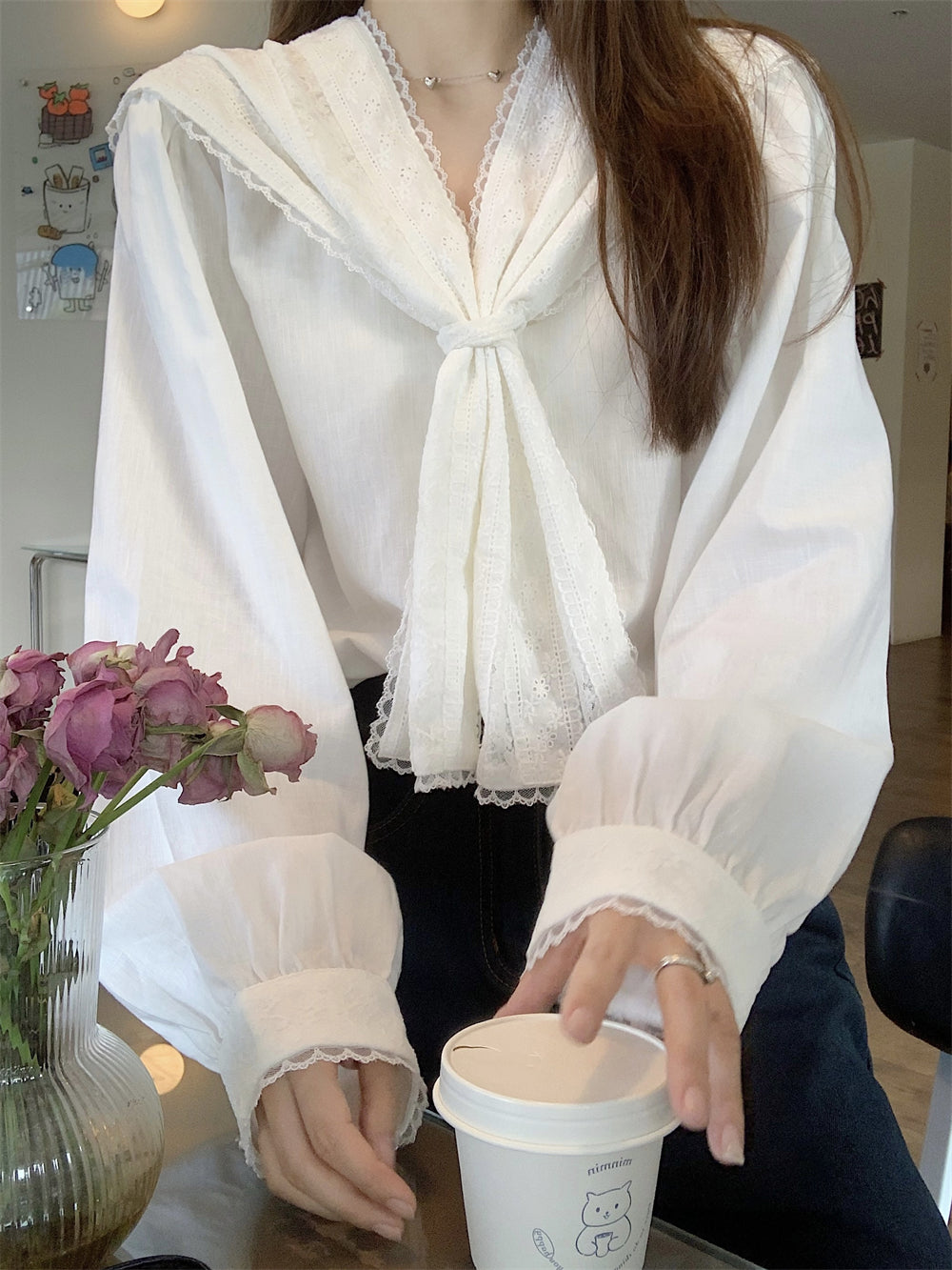 【tops】レース長袖ブラウスG23664