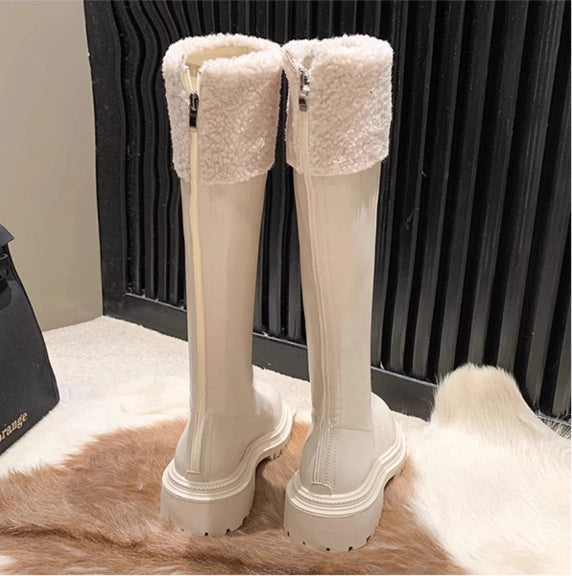 【shoes】2色選択可ラムズウール厚底ブーツG23703