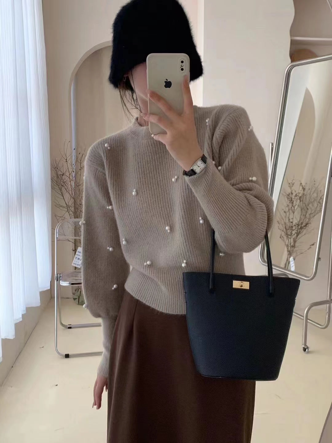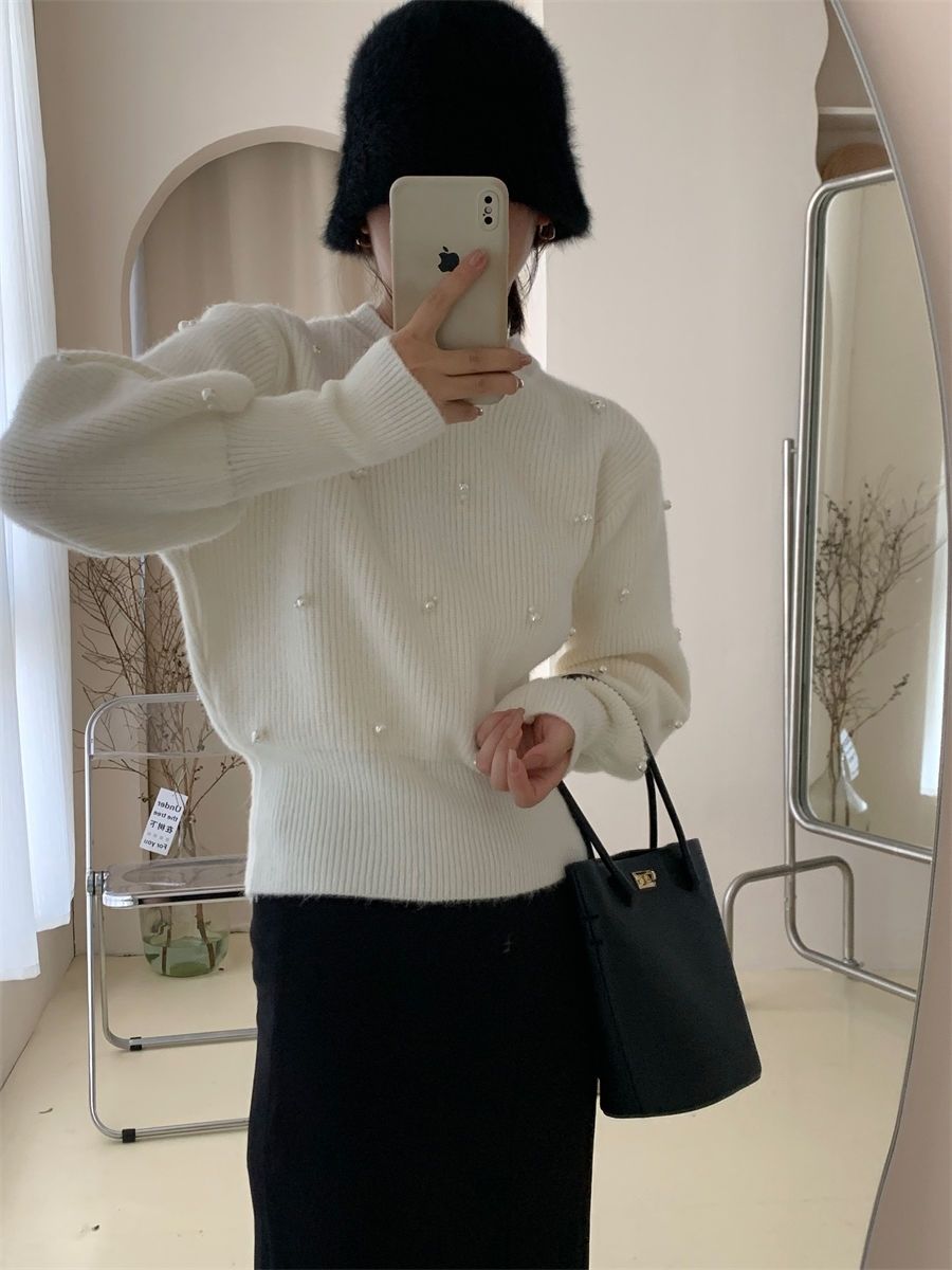 【tops】ラウンドネックビーズニットセーターG23849