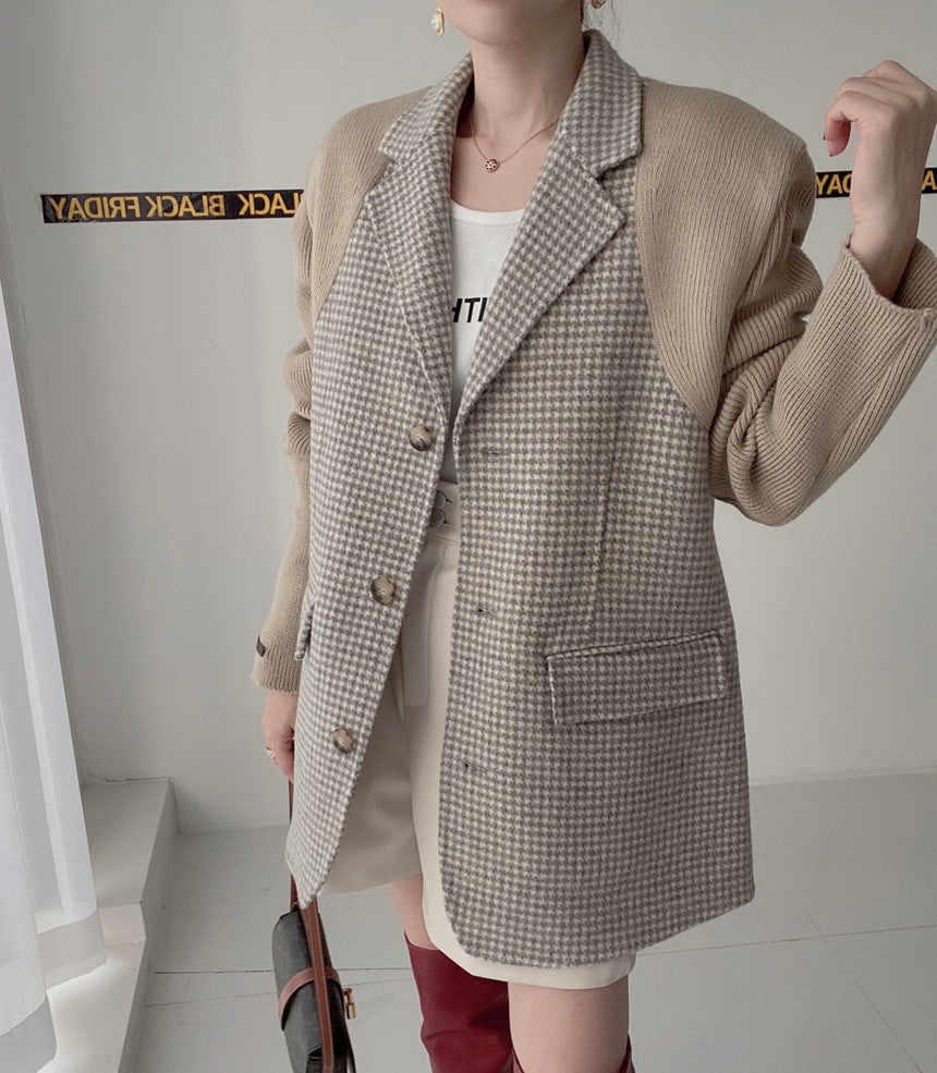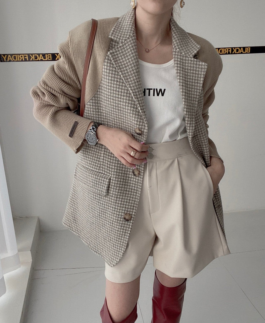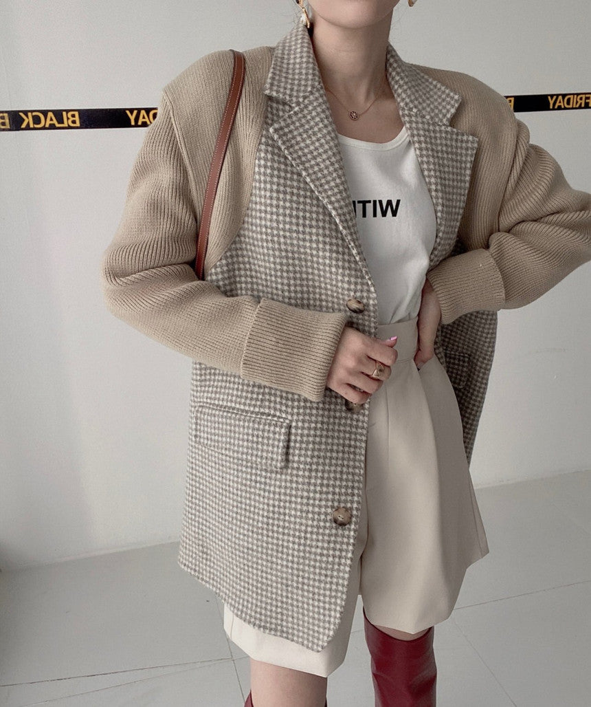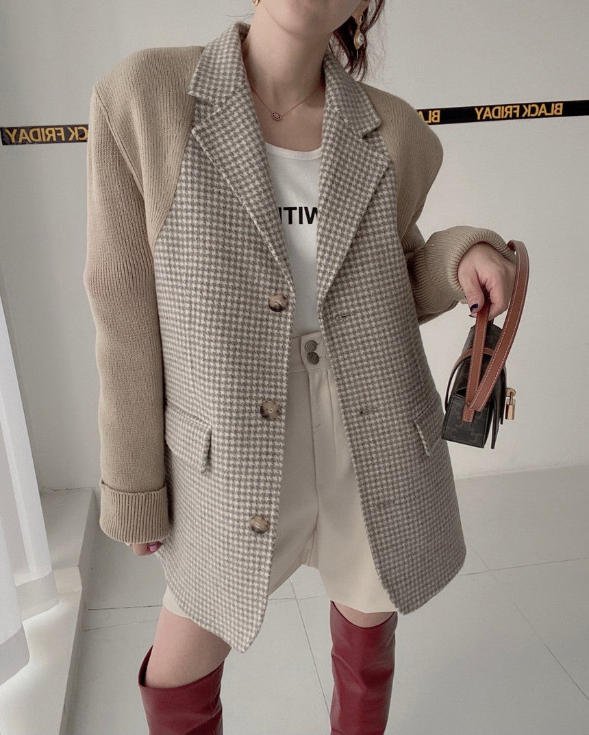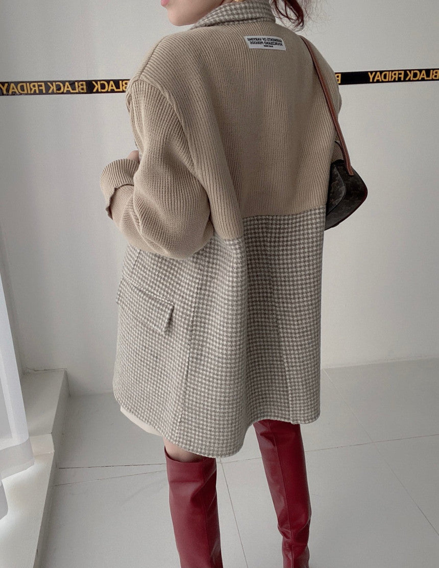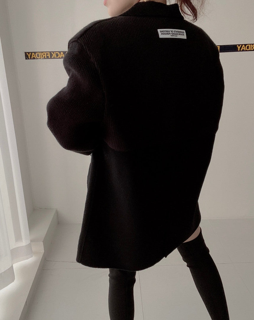 【outer】ニット切り替え長袖秋冬ラシャ生地コートG23993