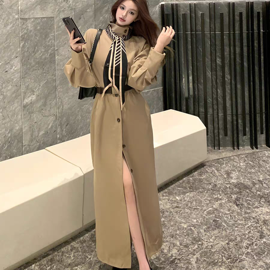 【dress】長袖シャツワンピース+スカーフ+ベルトG24042