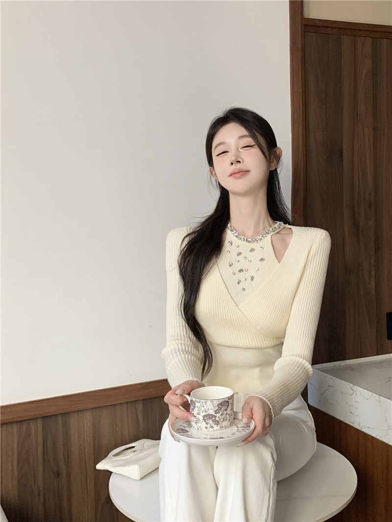 【tops】ダイヤモンド長袖ニットセーターG24108
