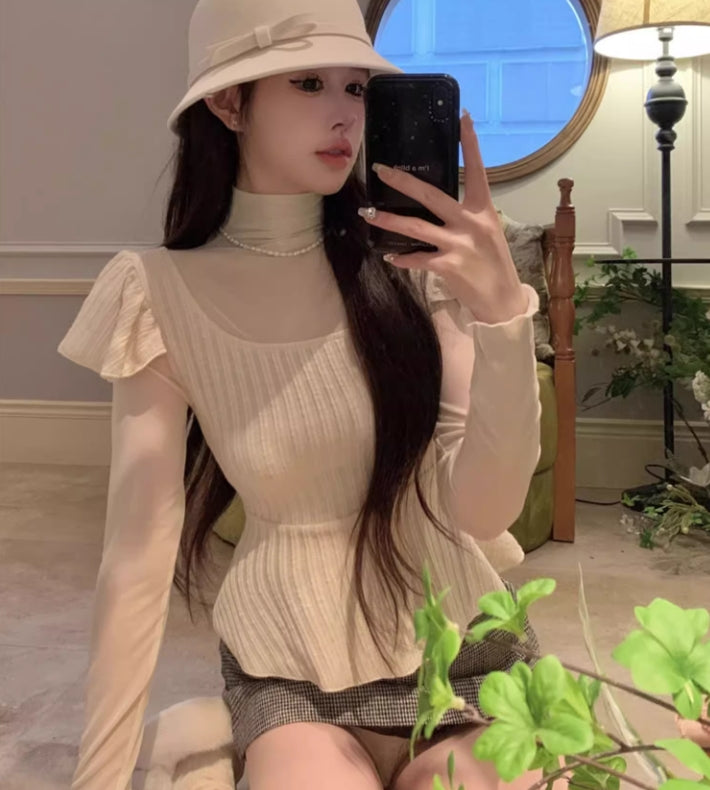 【tops】偽二つ切り替えニットセーターG24145
