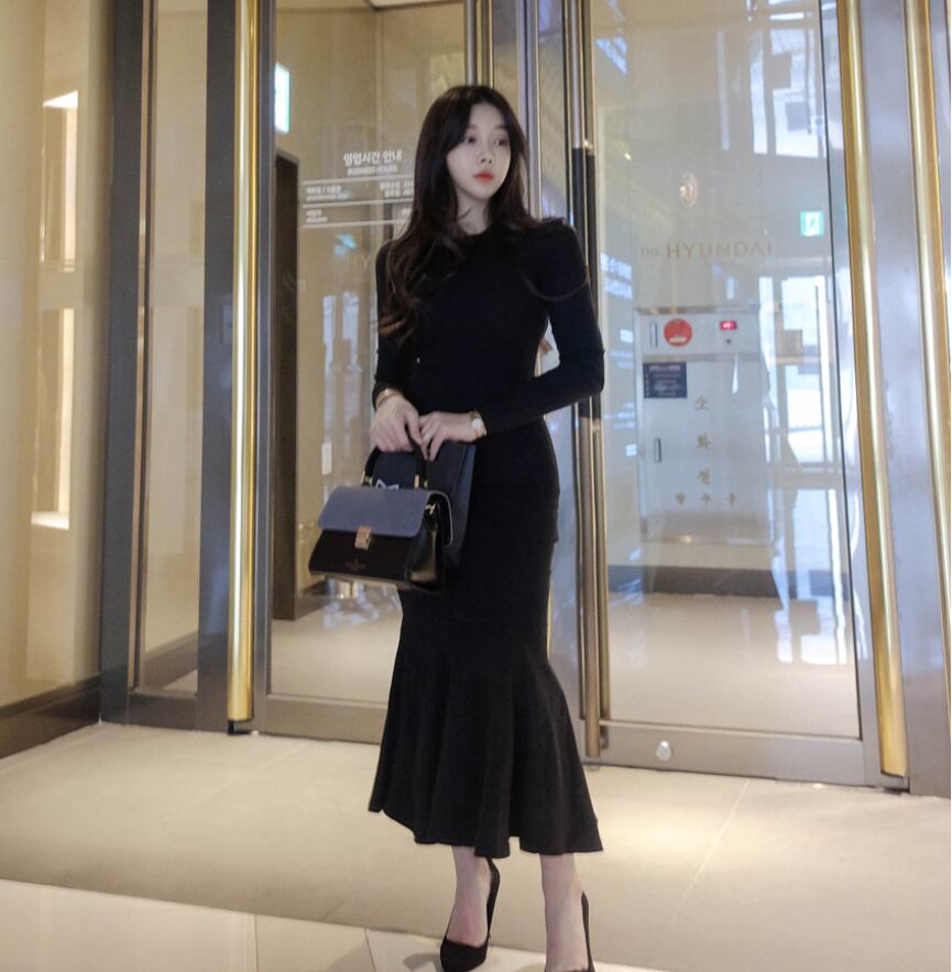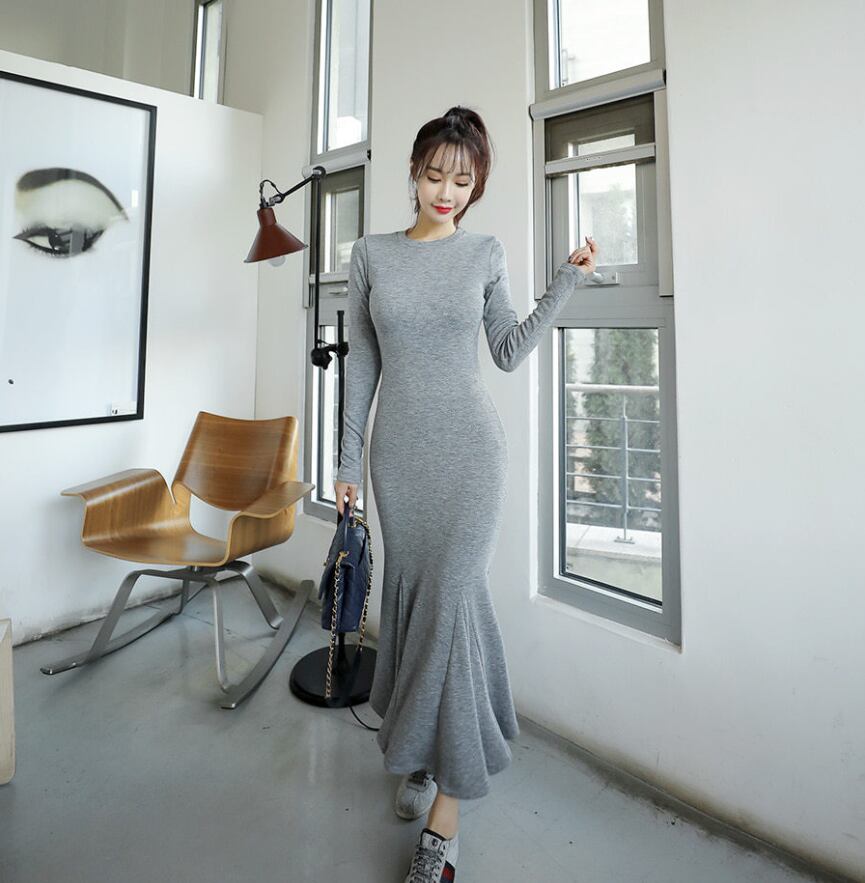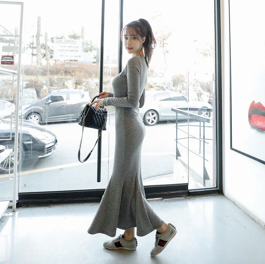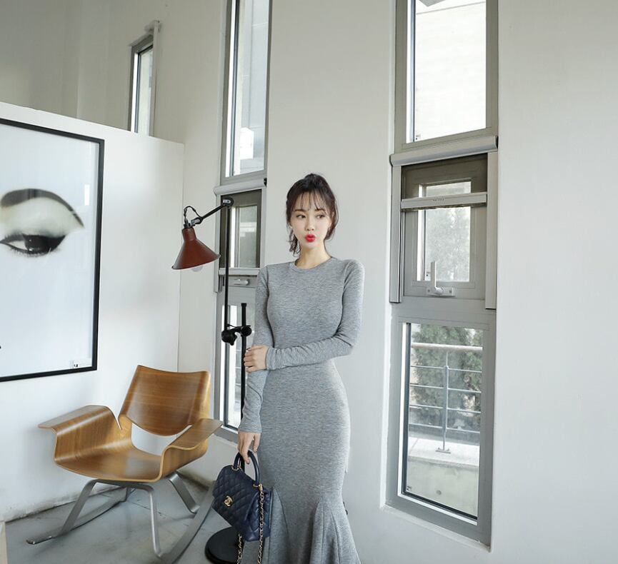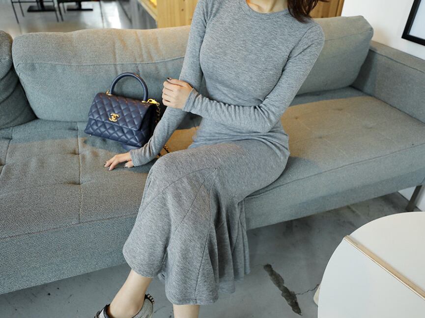 【dress】韓流スタイル気質満点長袖ラウンドネック体型カバーマーメイドワンピース G2416