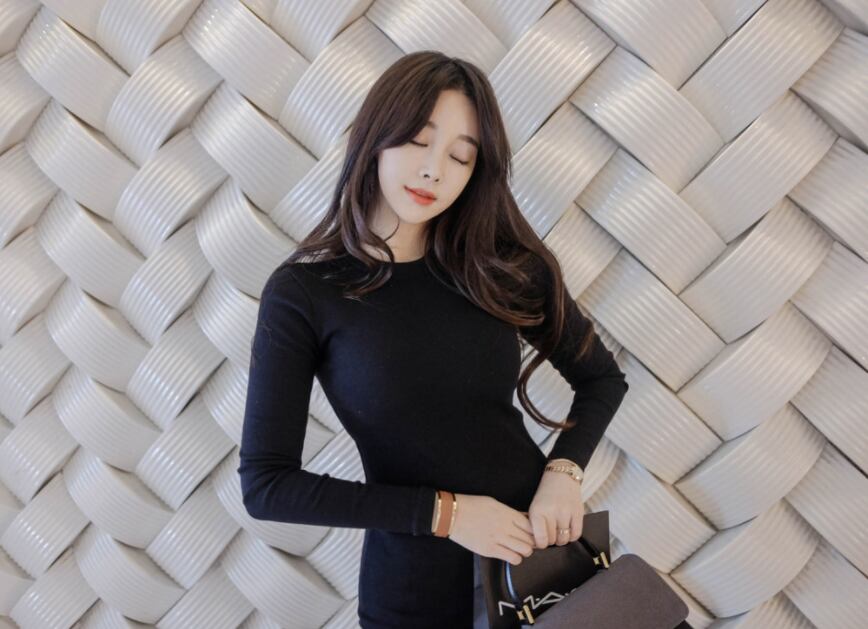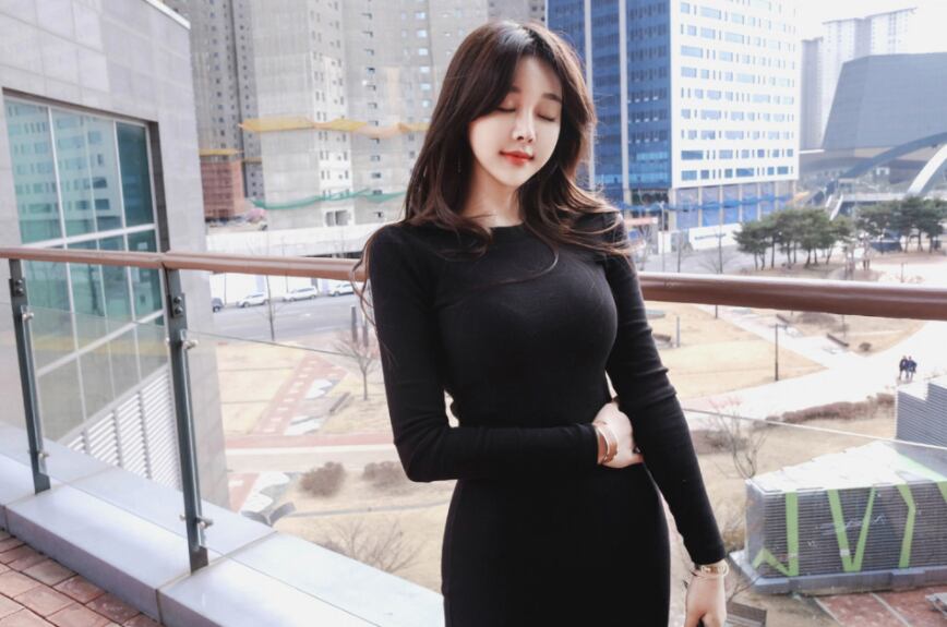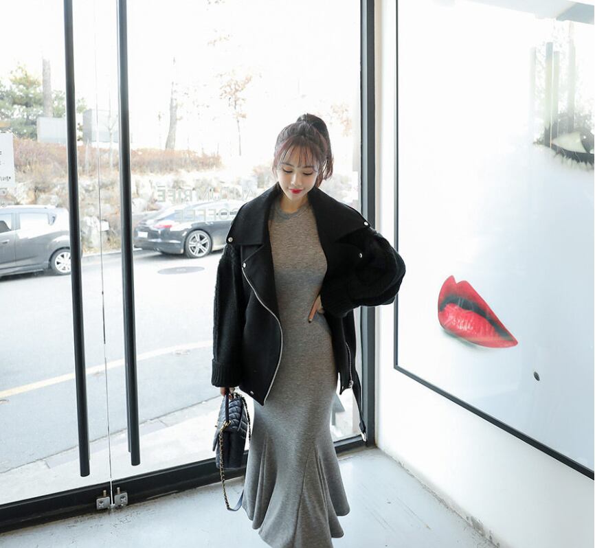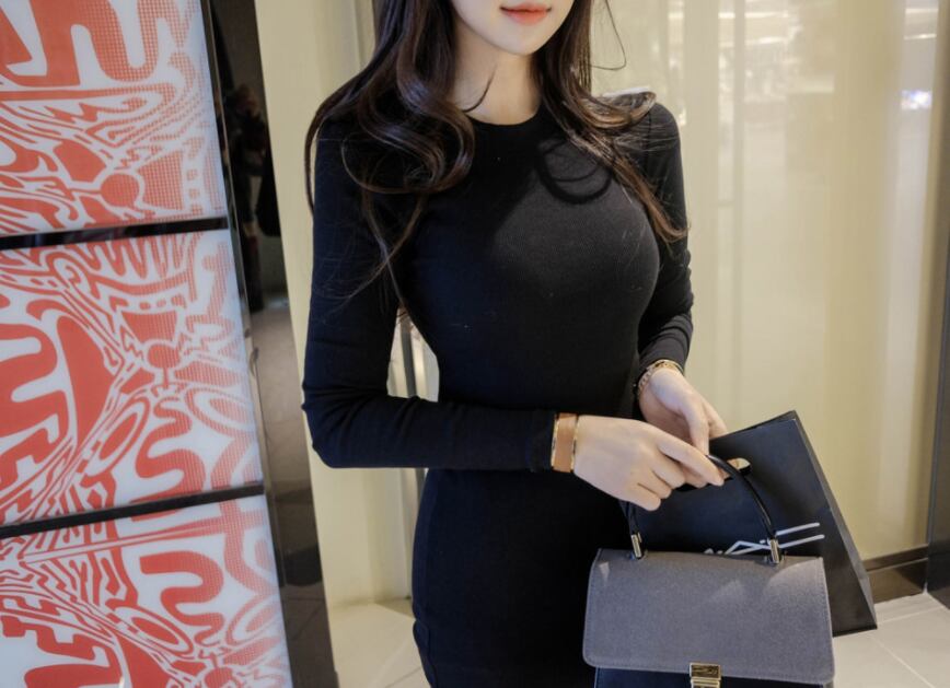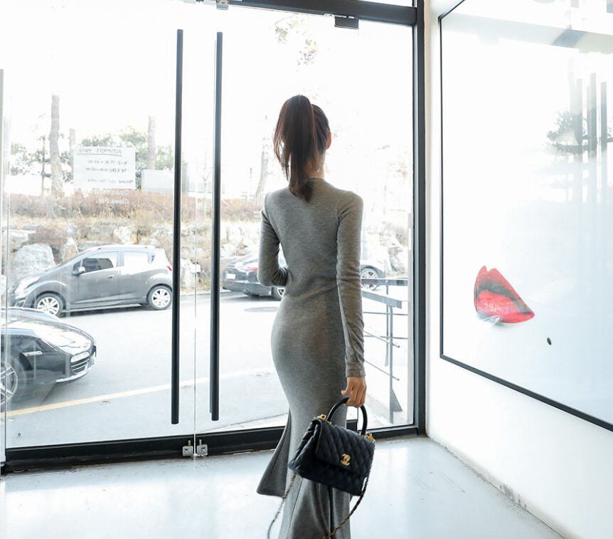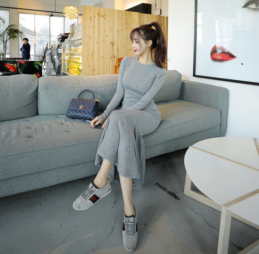 【dress】韓流スタイル気質満点長袖ラウンドネック体型カバーマーメイドワンピース G2416