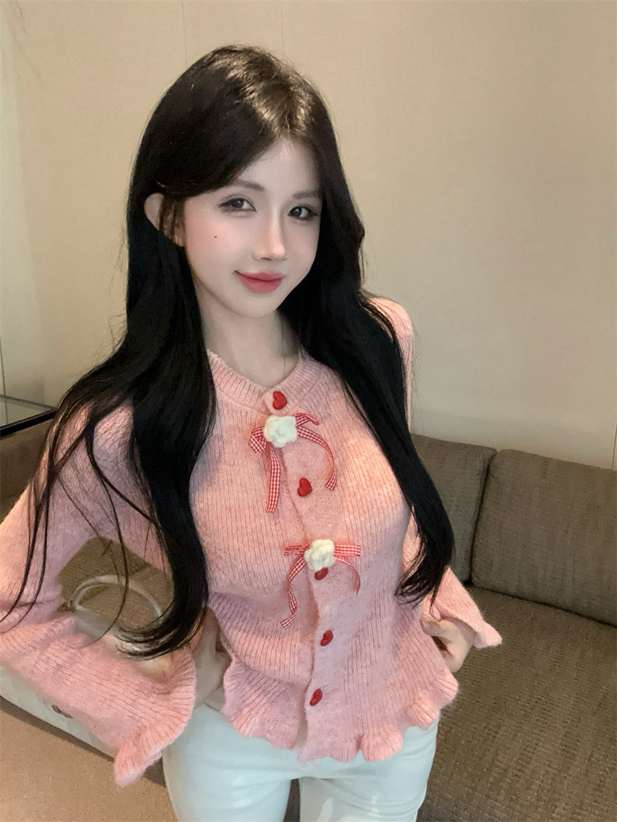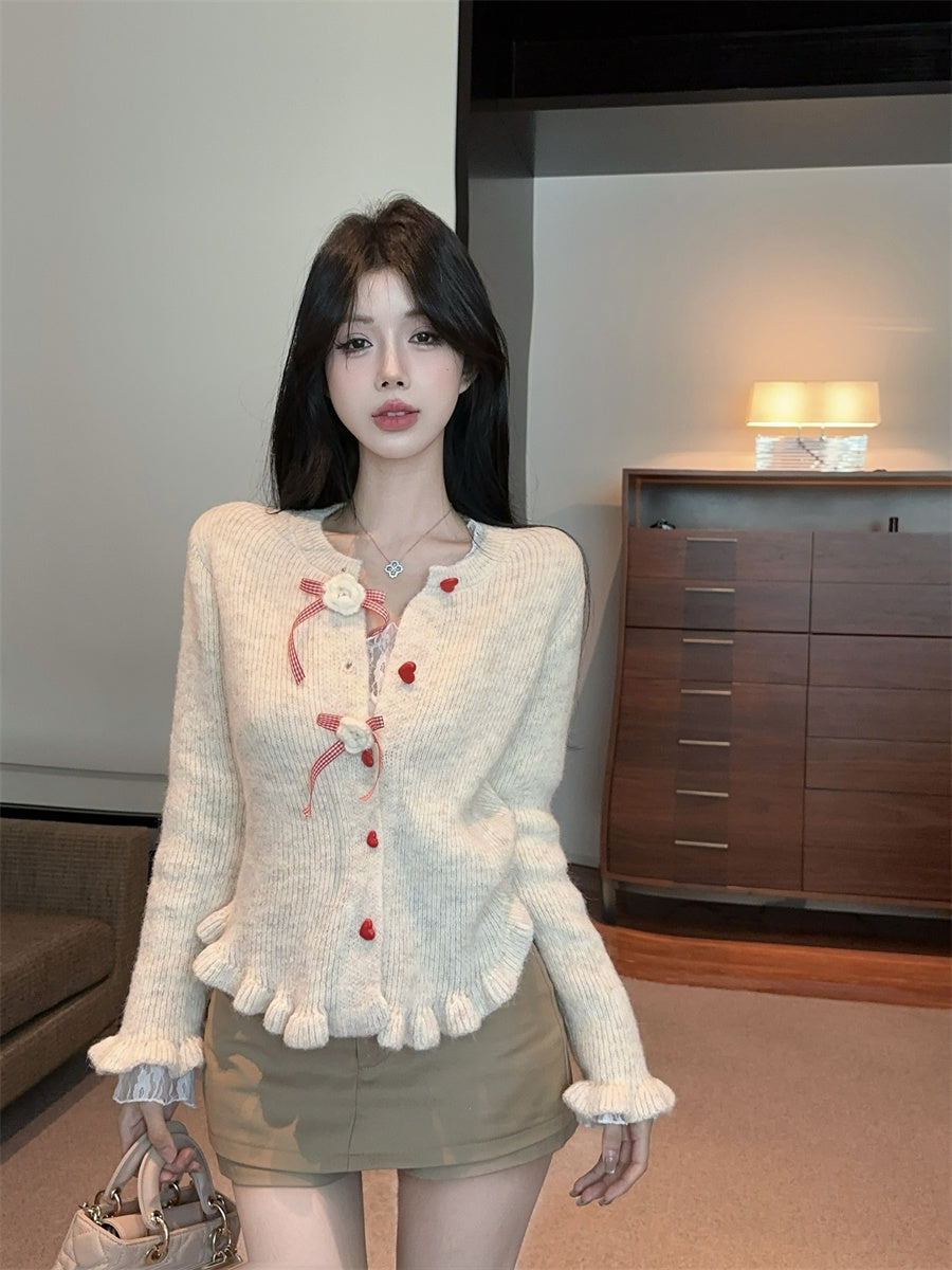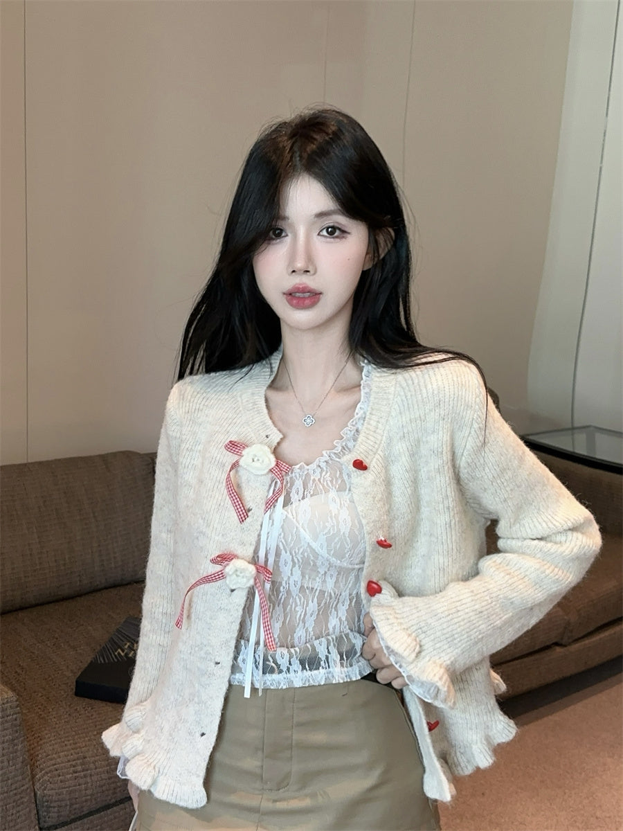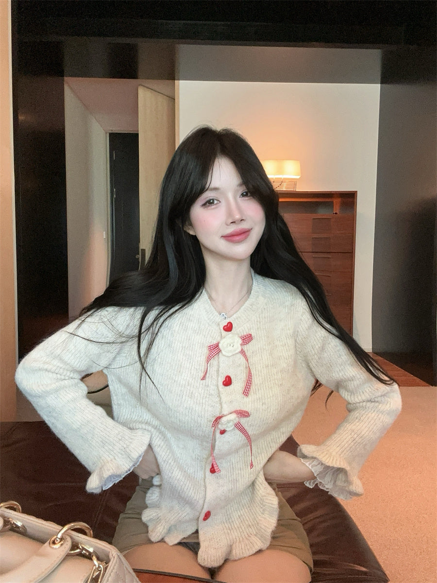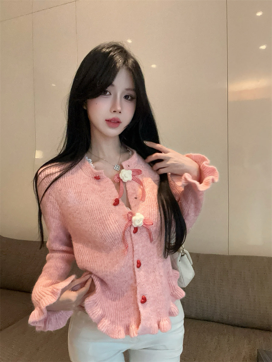 【outer】リボンギャザーニットカーディガンG24335