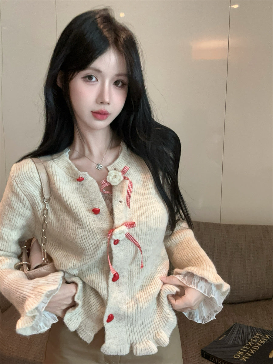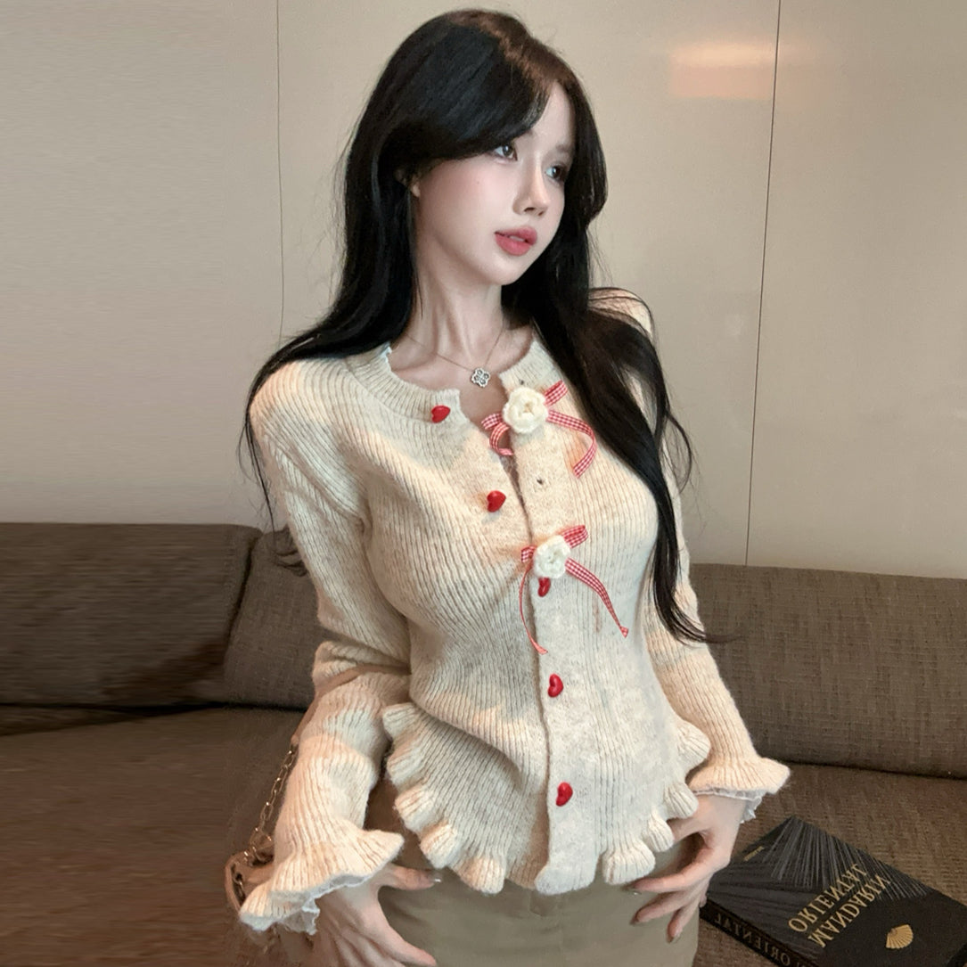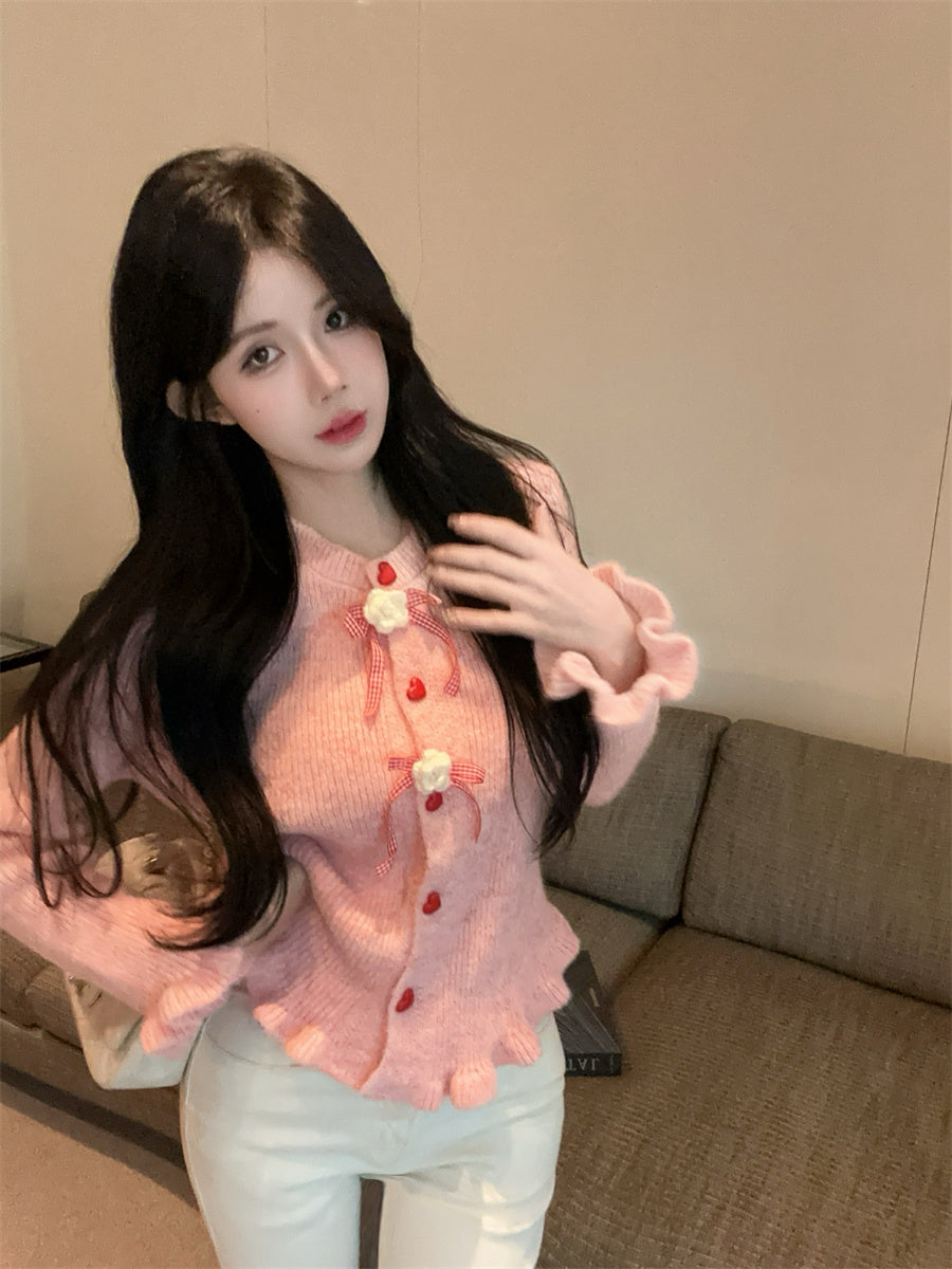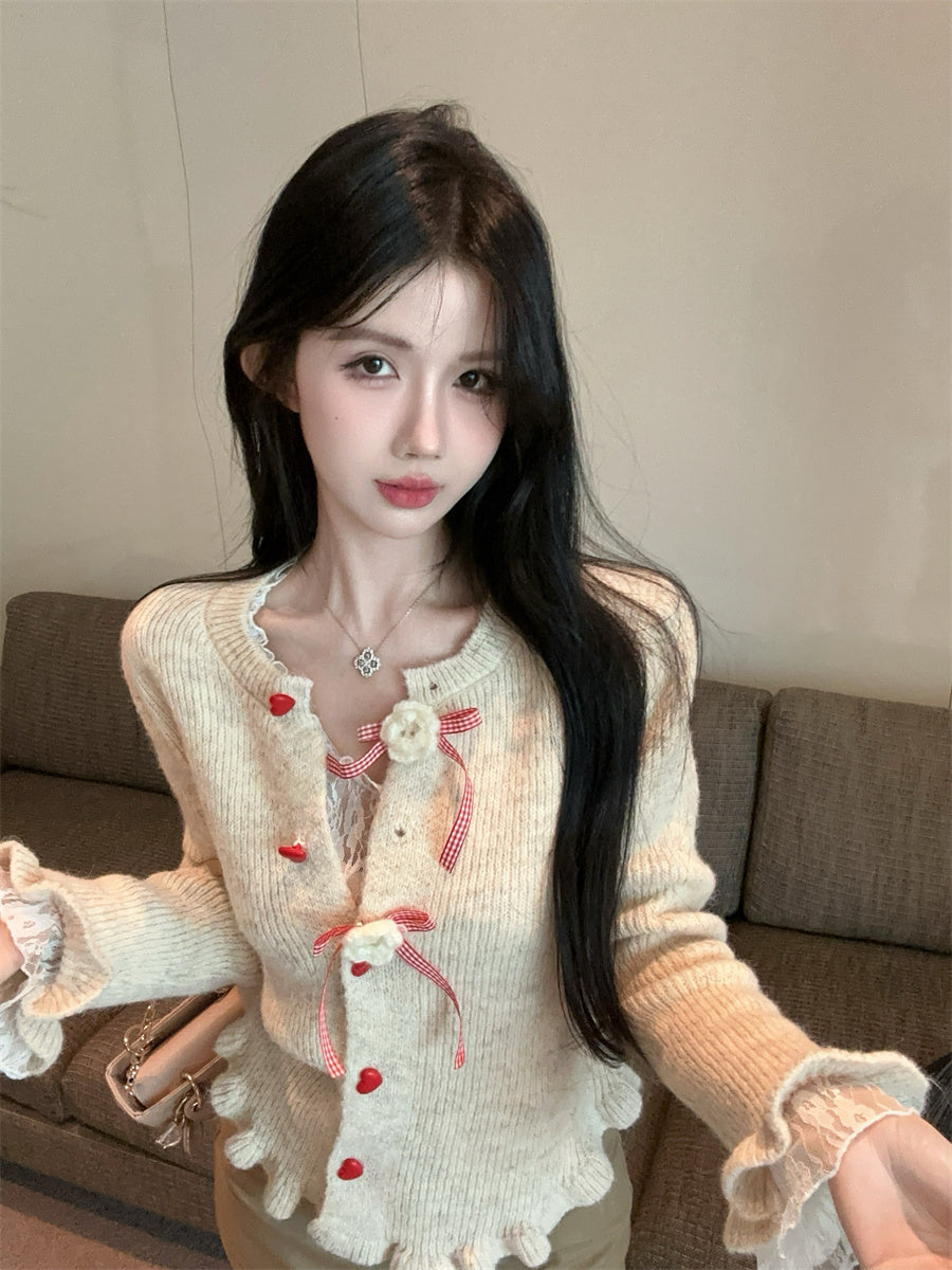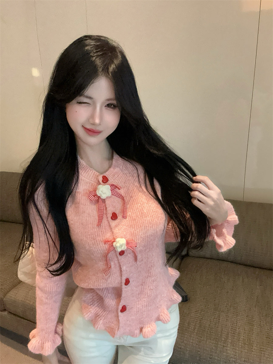 【outer】リボンギャザーニットカーディガンG24335
