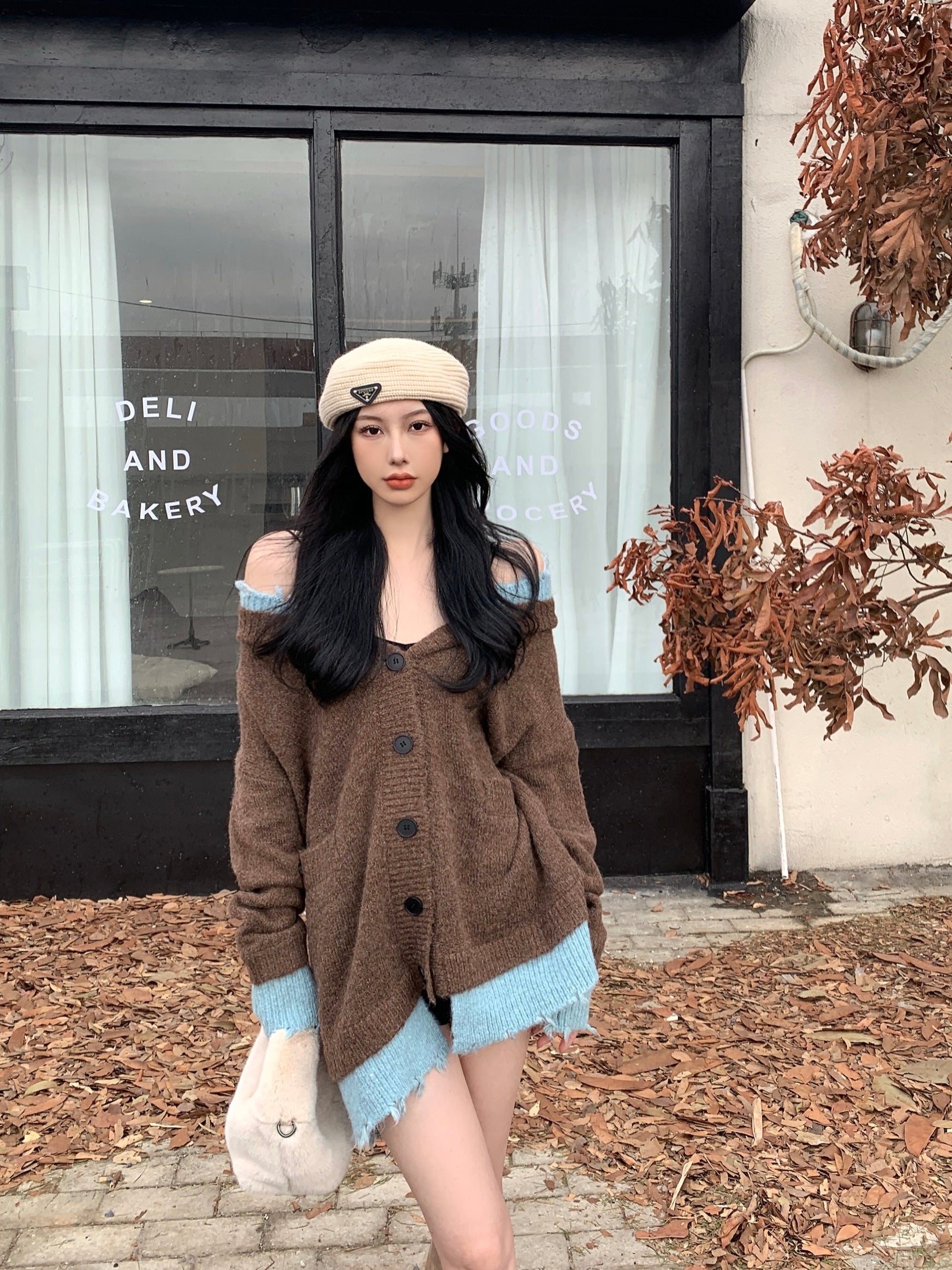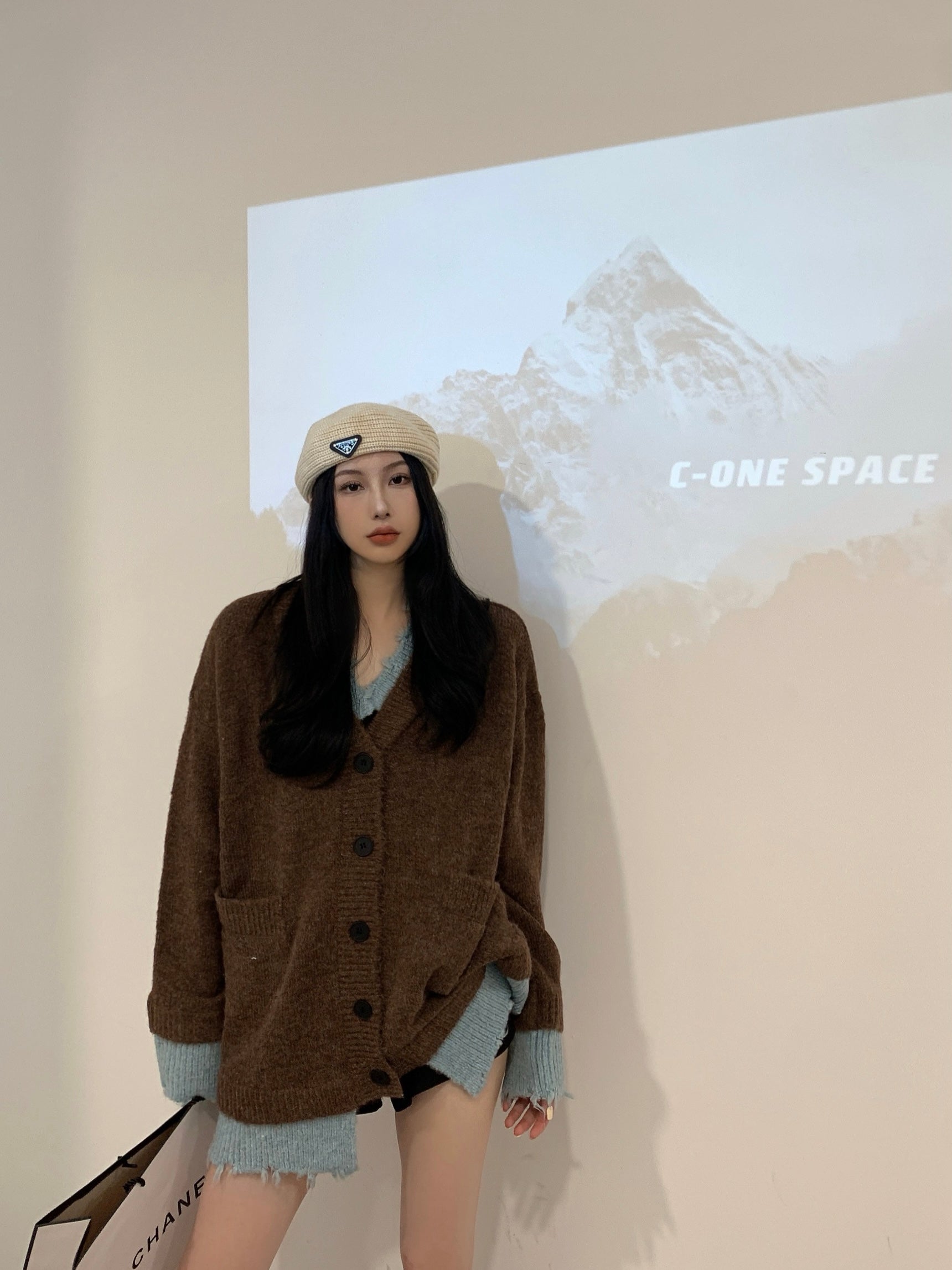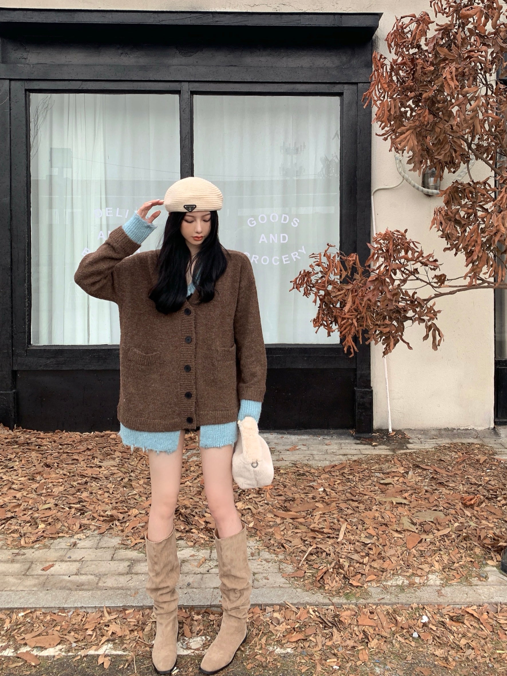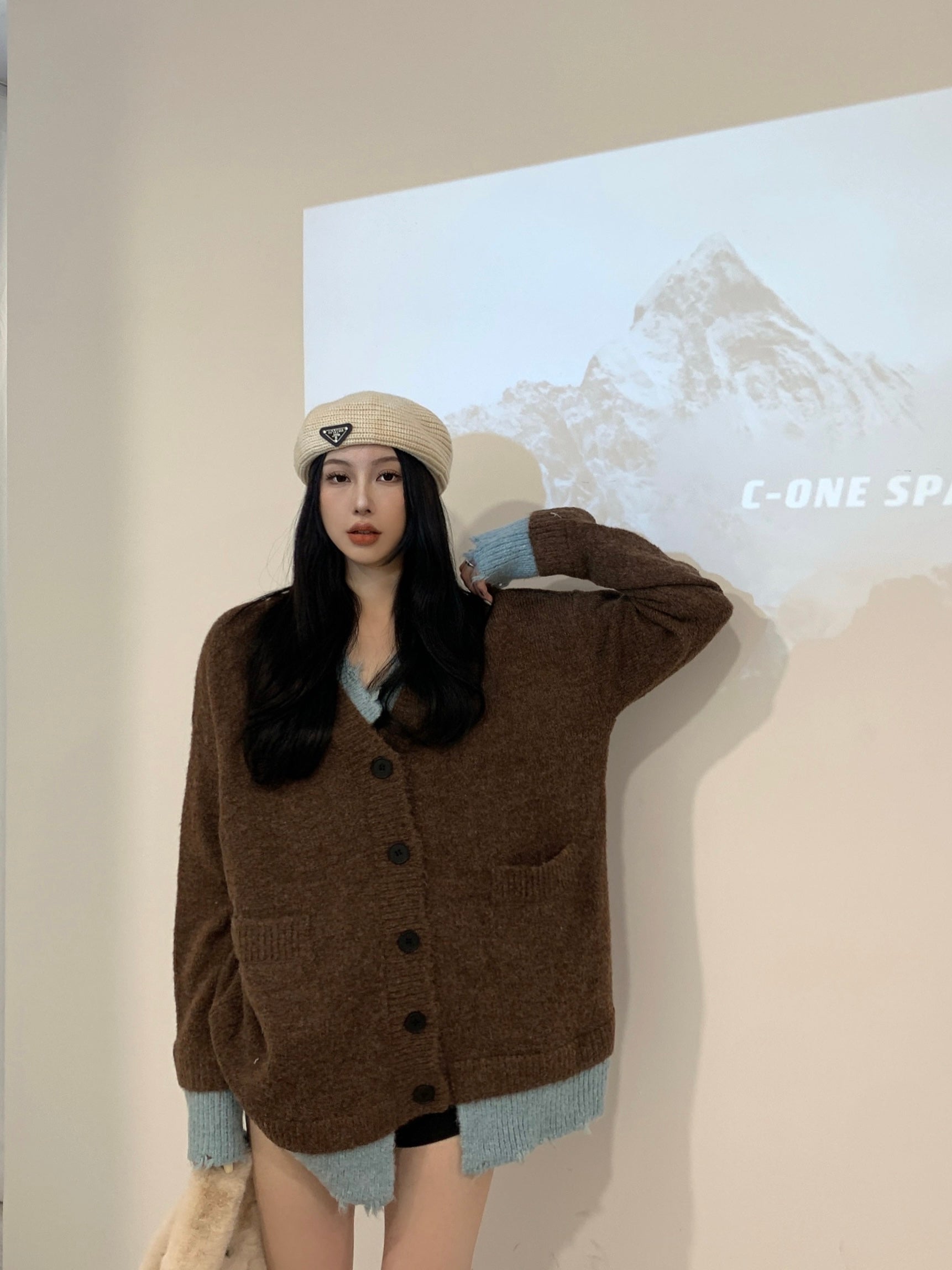 【outer】ゆったり偽二つ切り替えニットカーディガンG24358