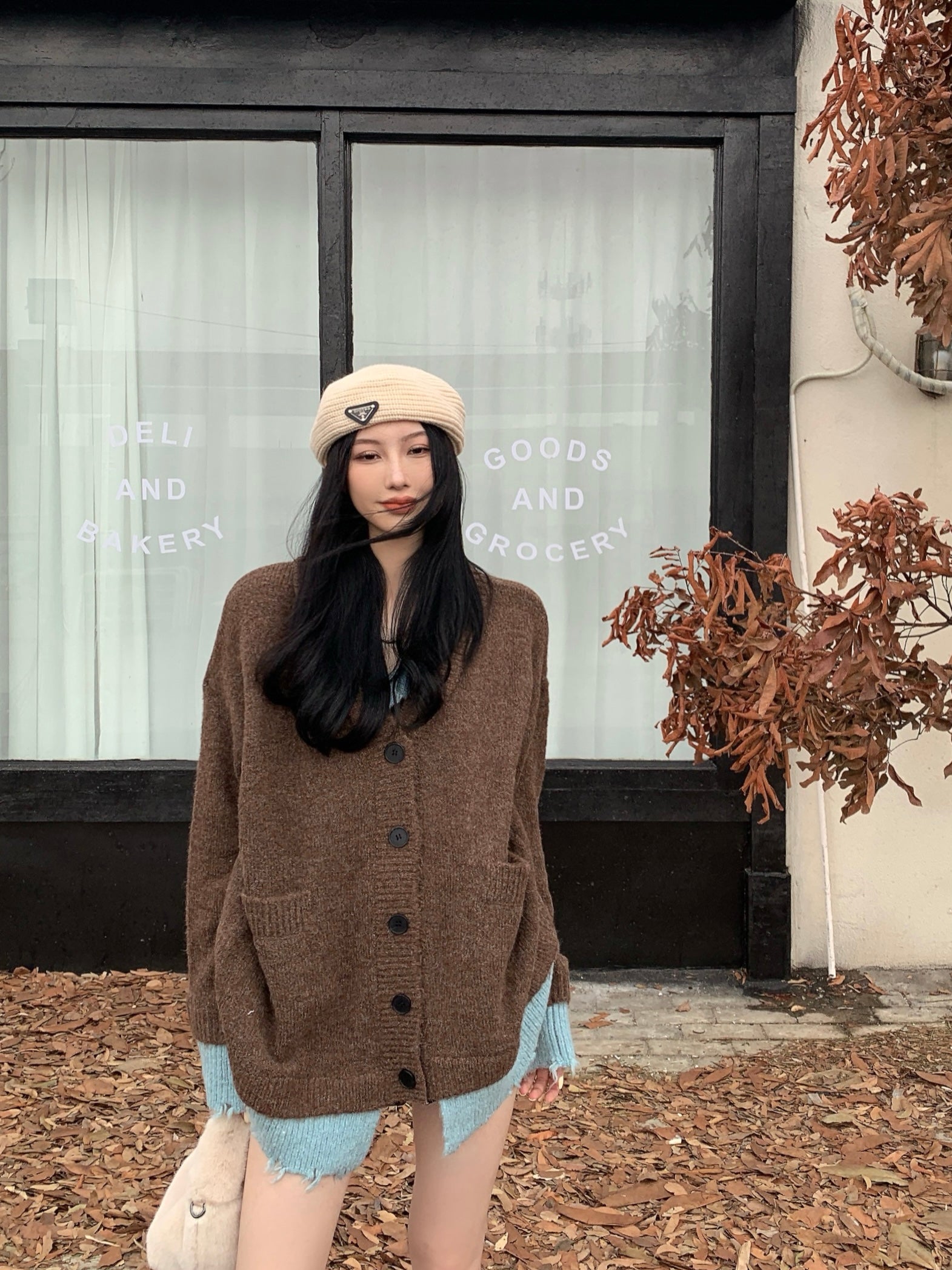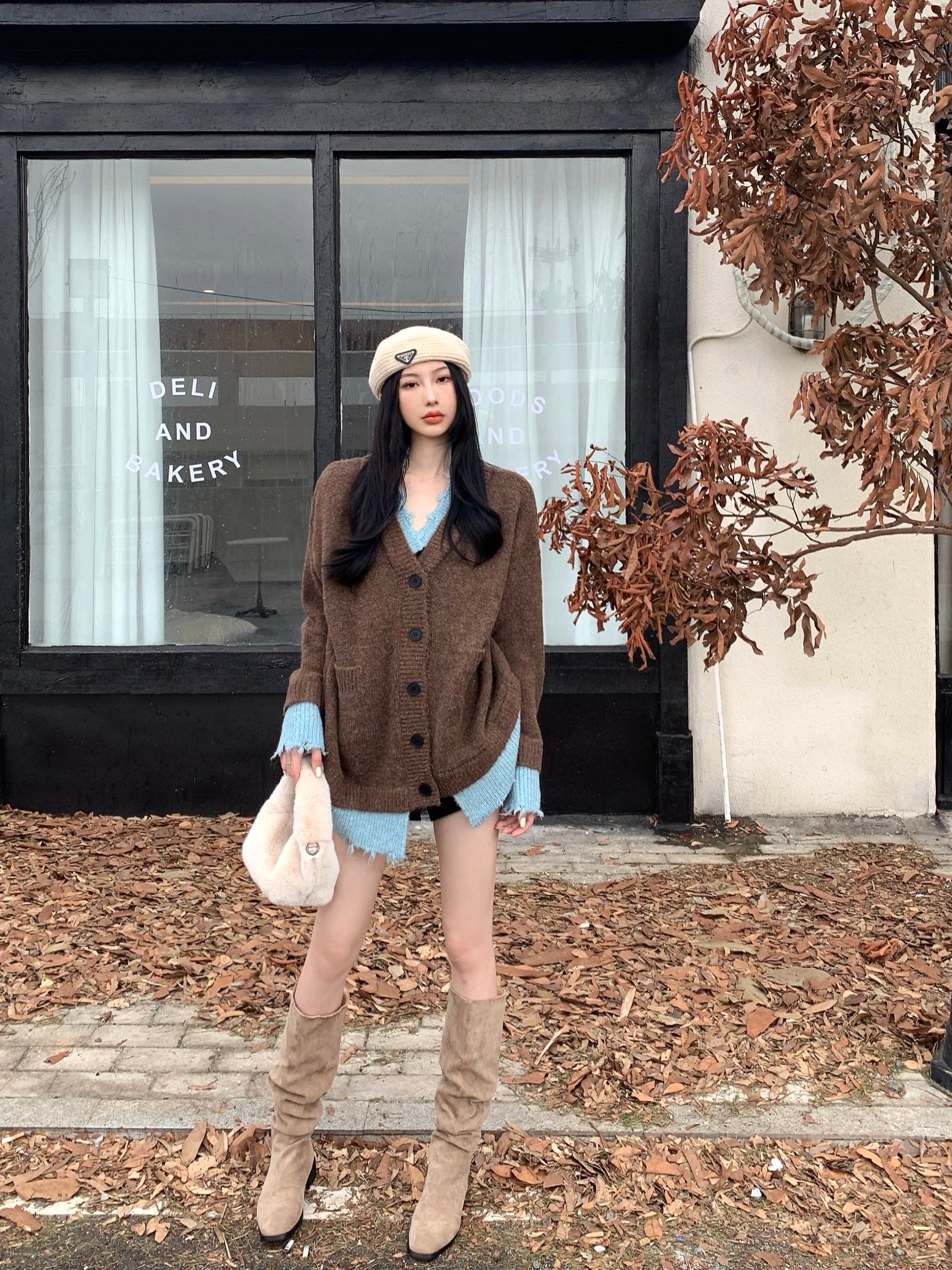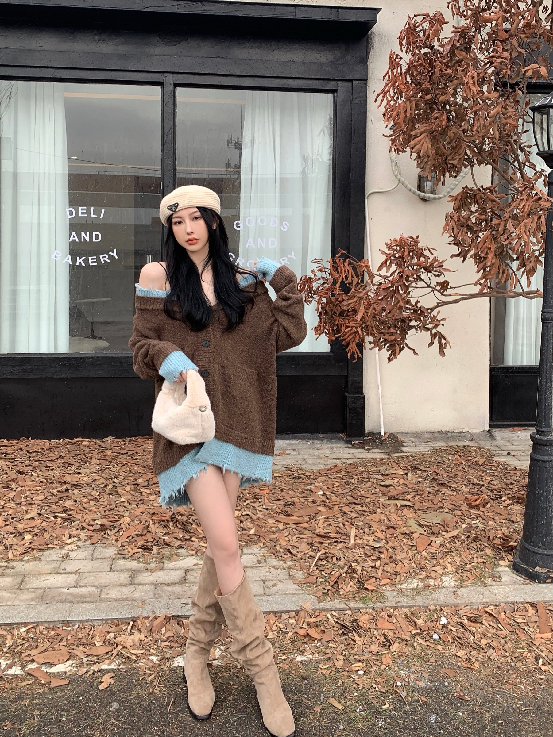【outer】ゆったり偽二つ切り替えニットカーディガンG24358