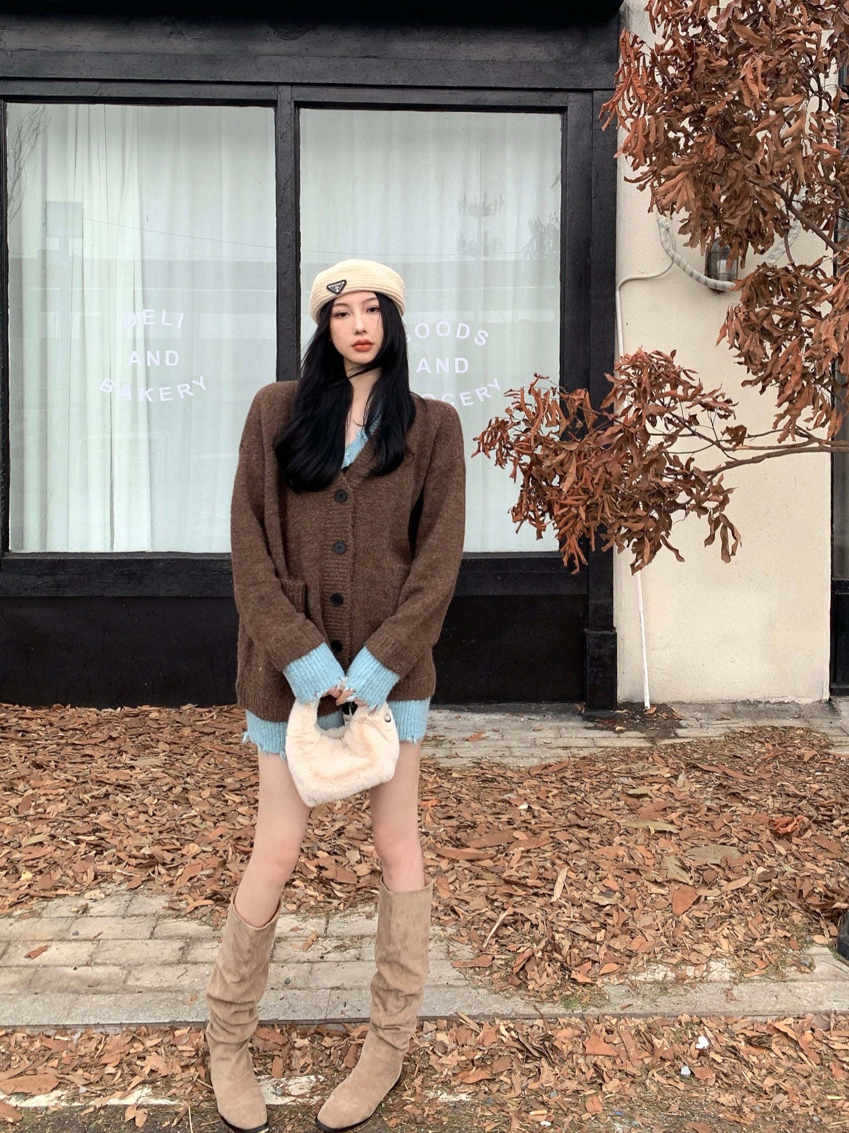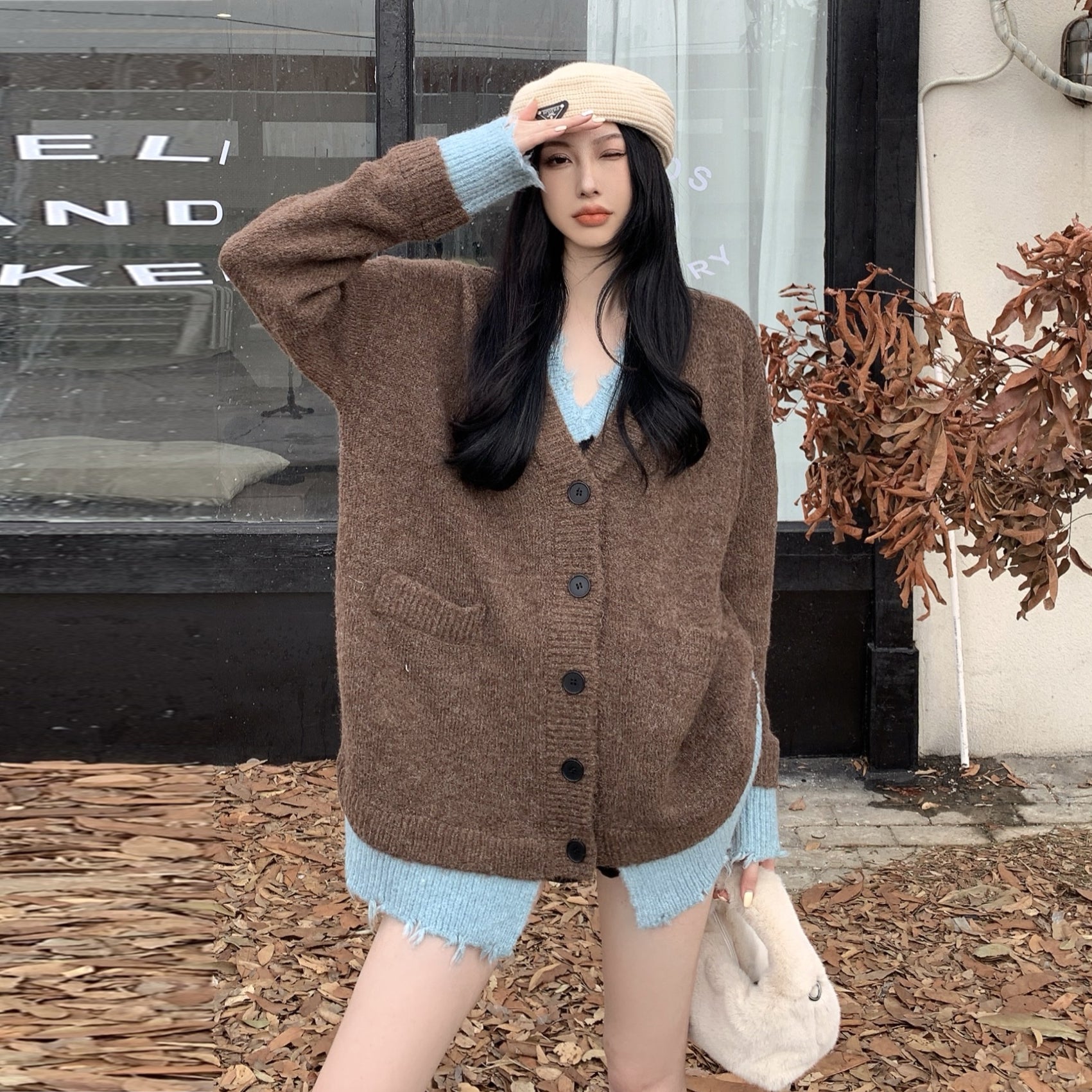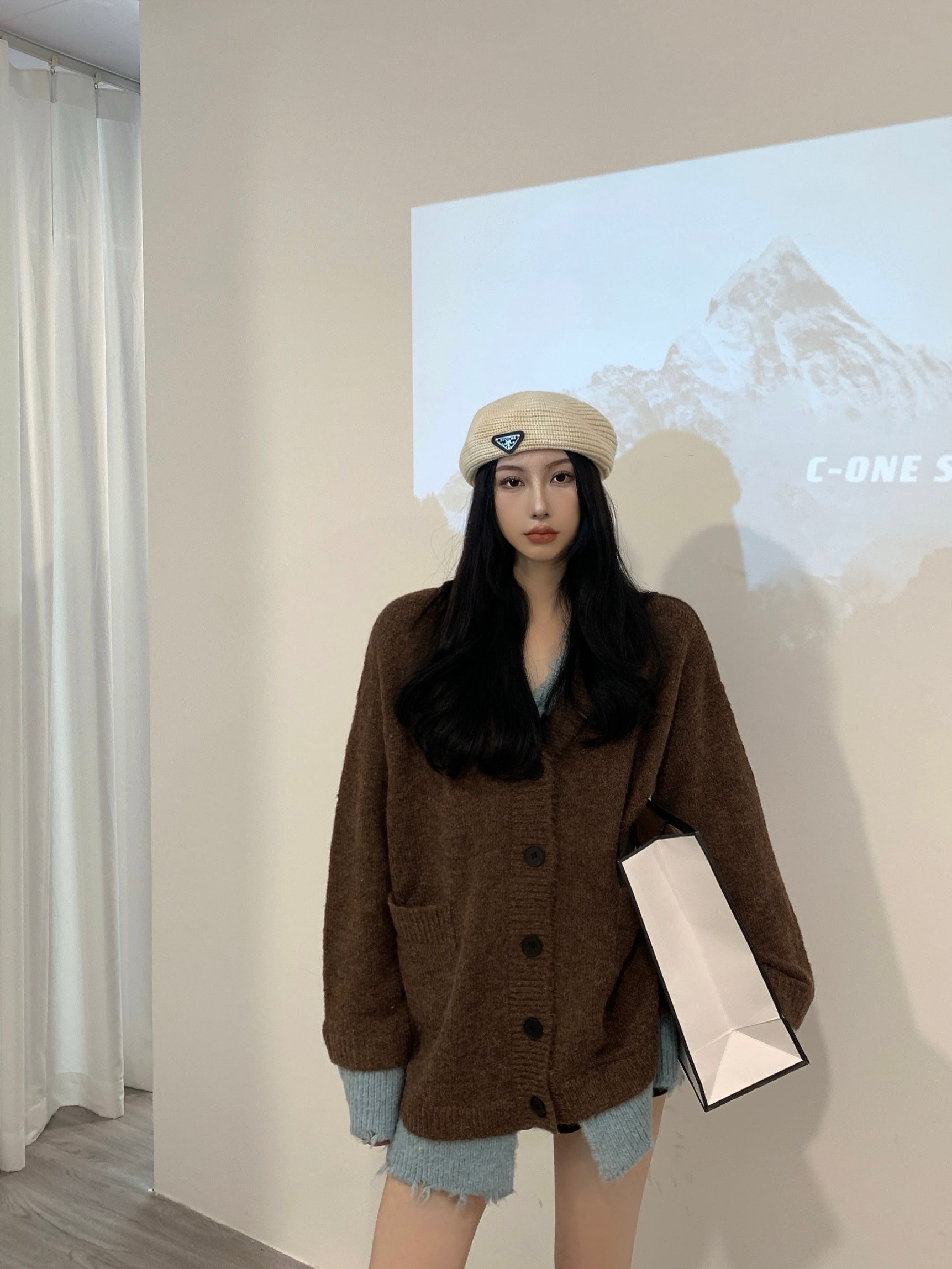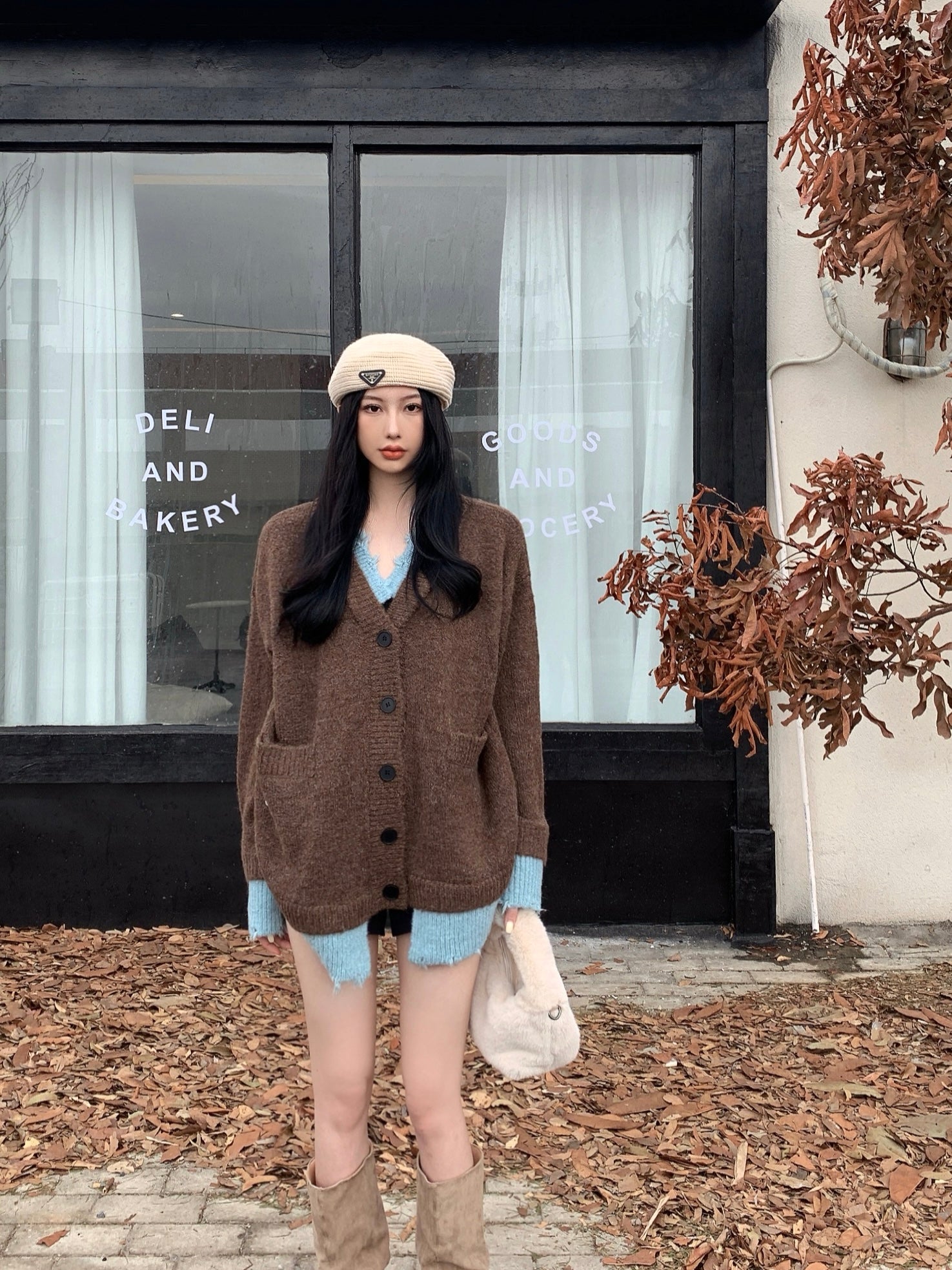 【outer】ゆったり偽二つ切り替えニットカーディガンG24358