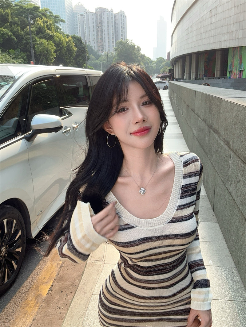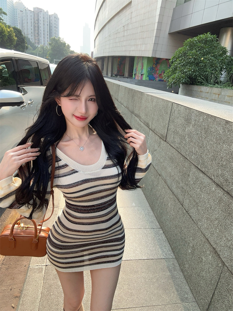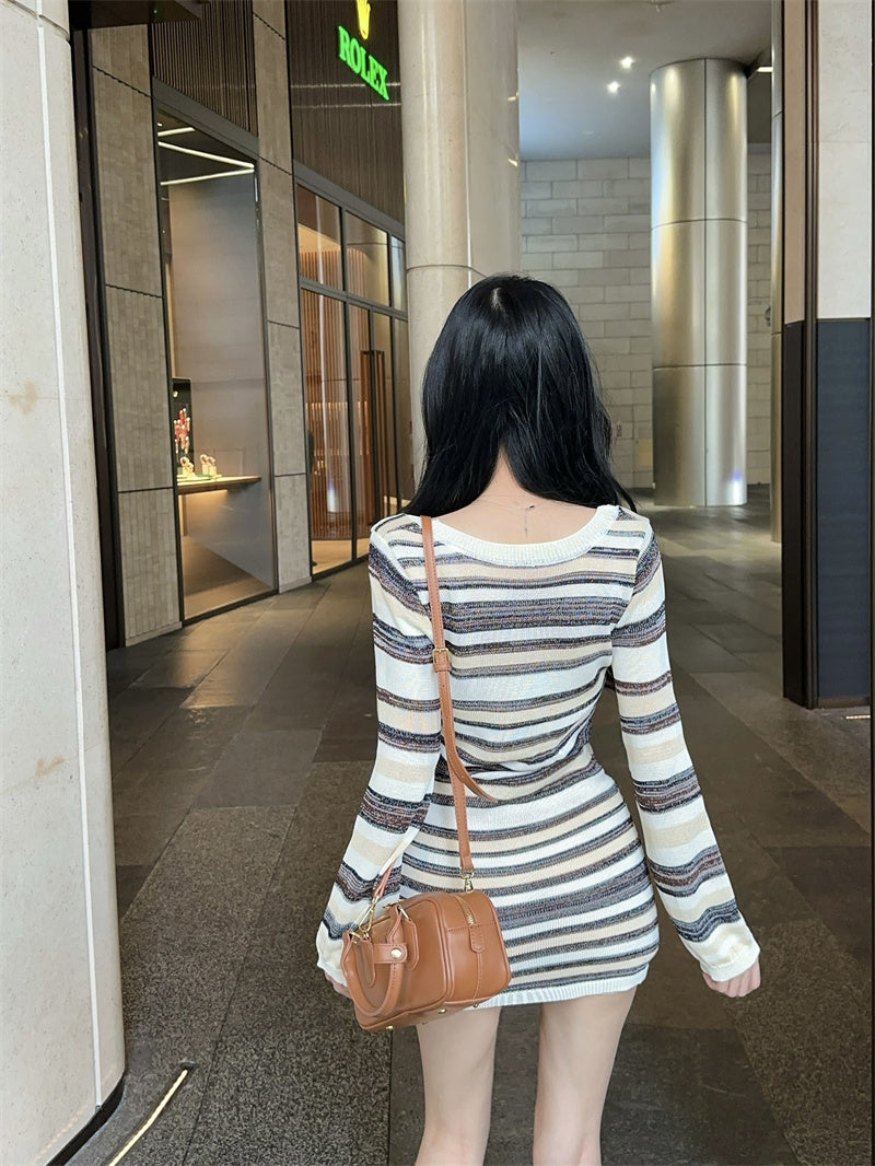 【dress】ストライプ柄長袖ニットワンピースG24368
