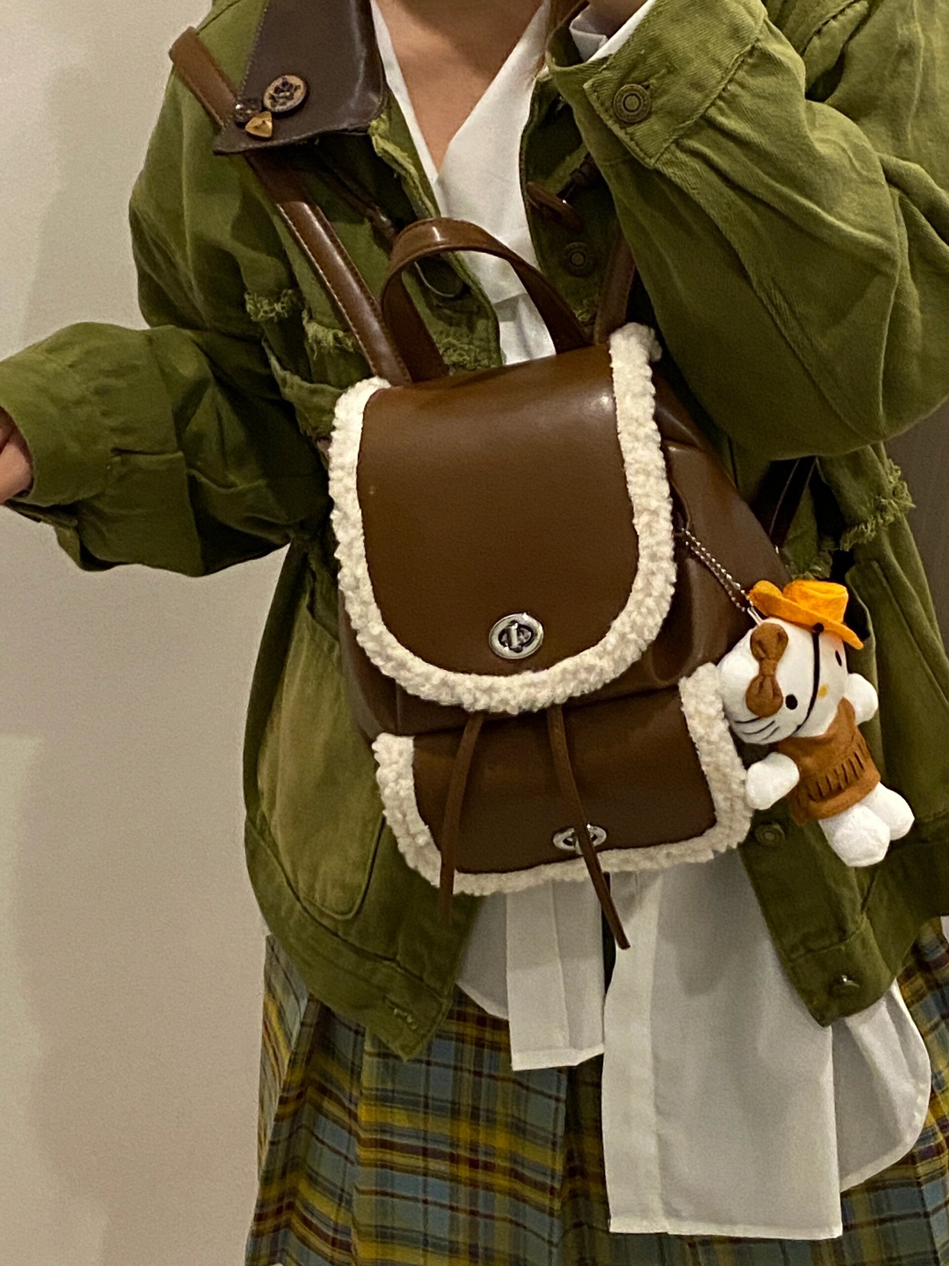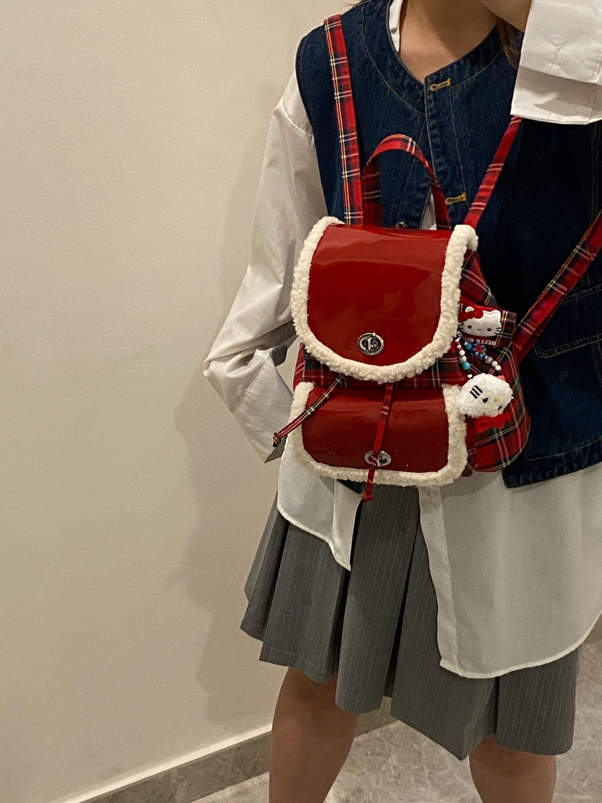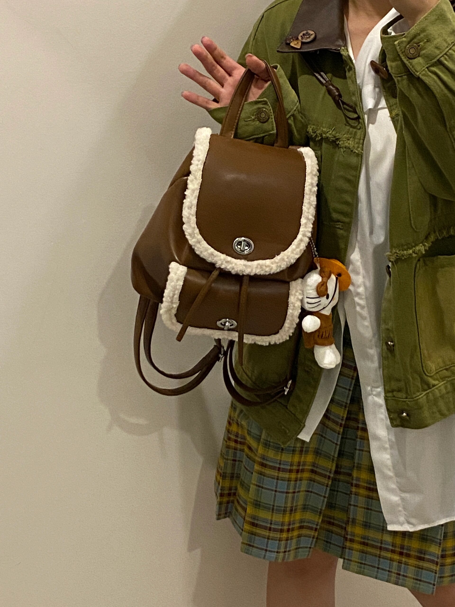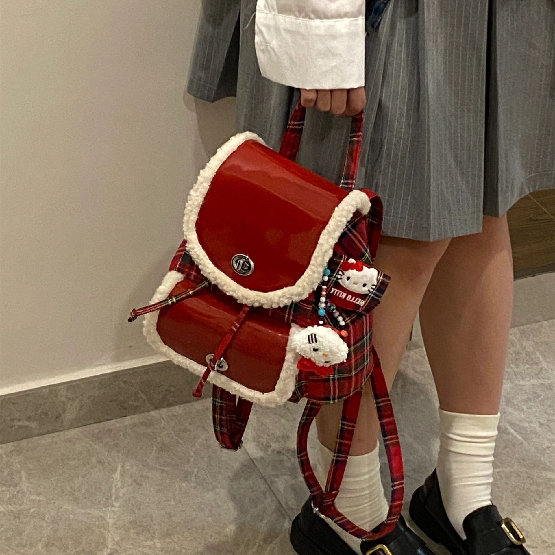 【小物】クリスマスラムズウールリュックバックG24422