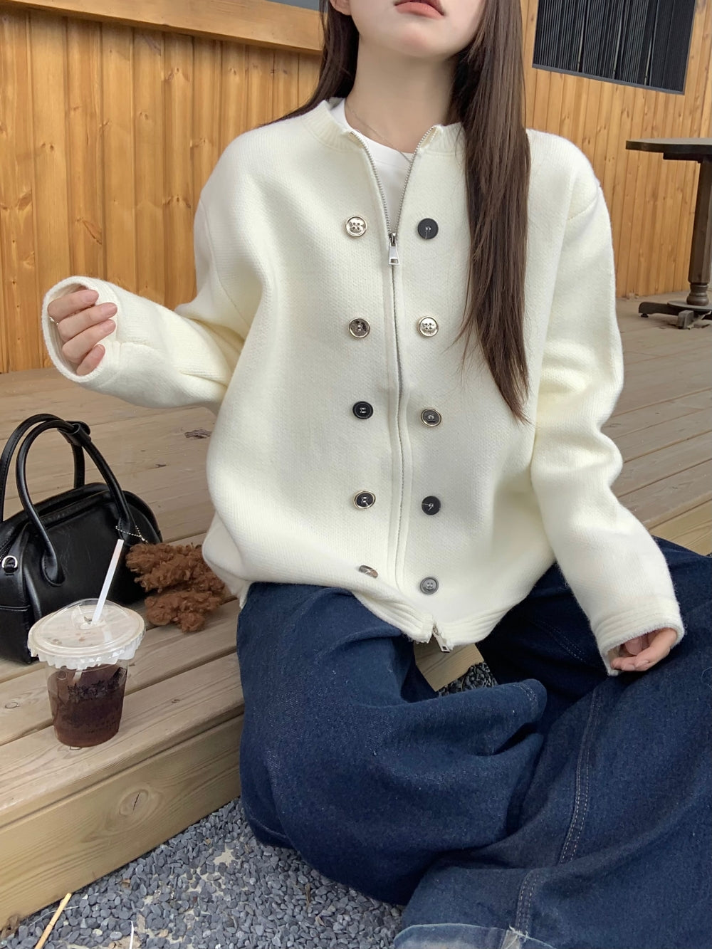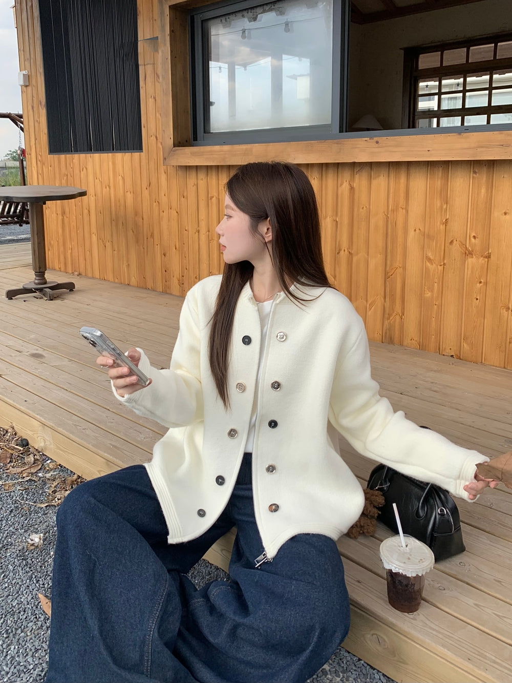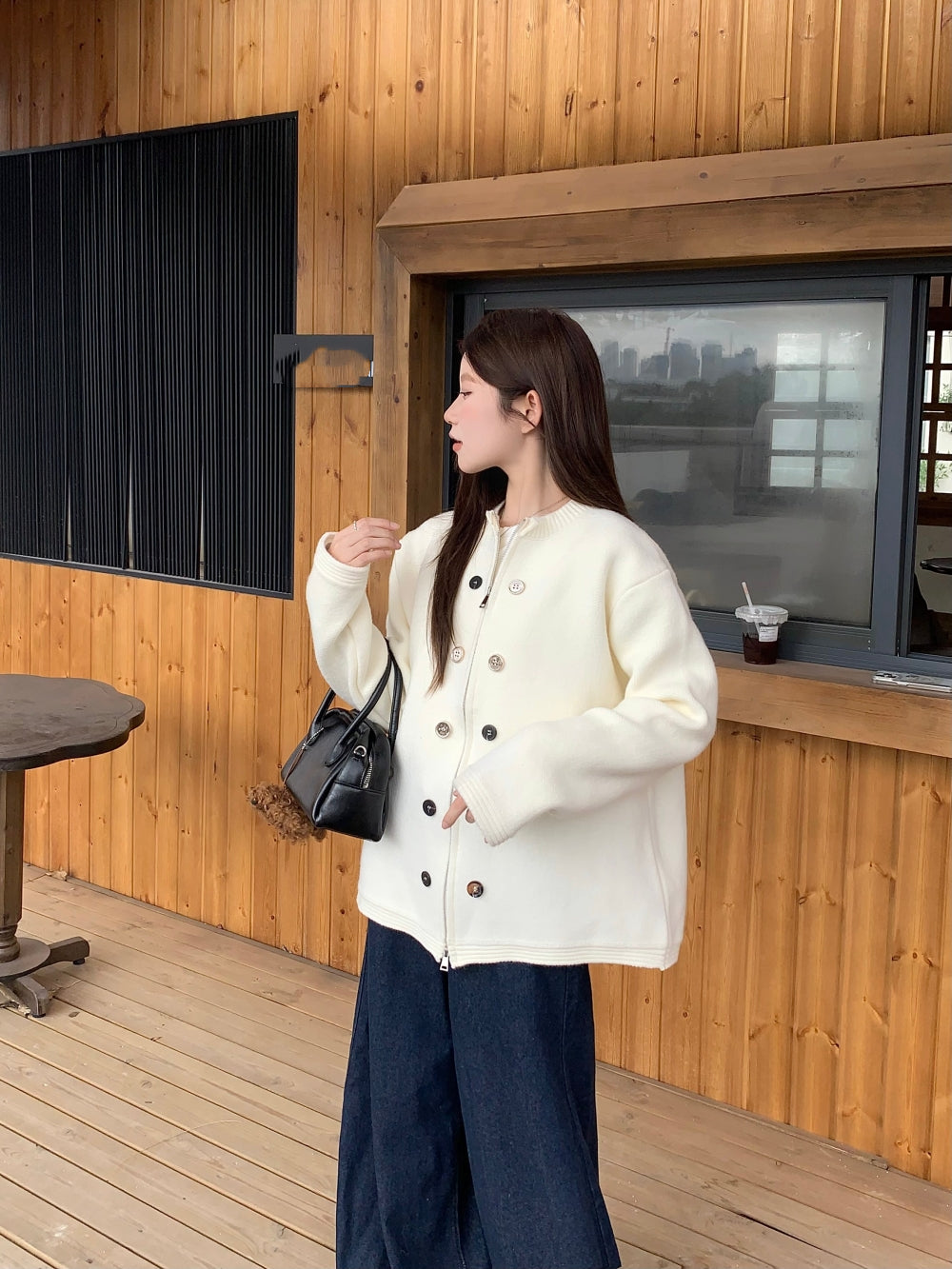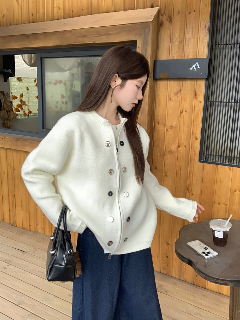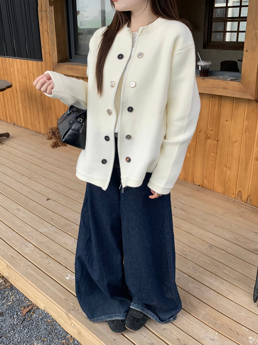 【outer】ラウンドネック無地ニットカーディガンG24456