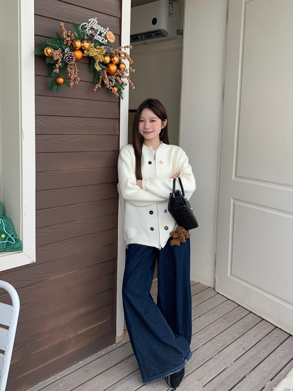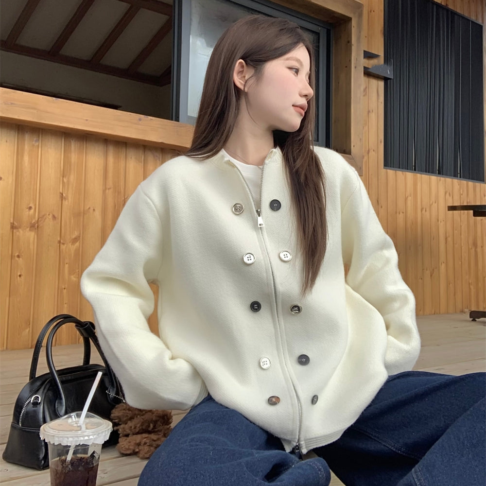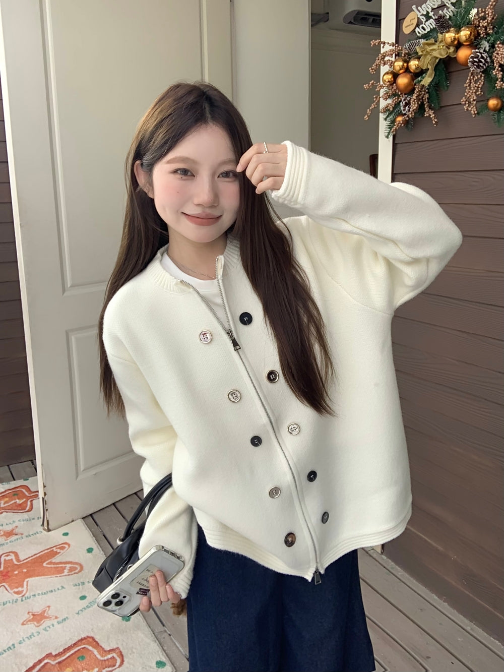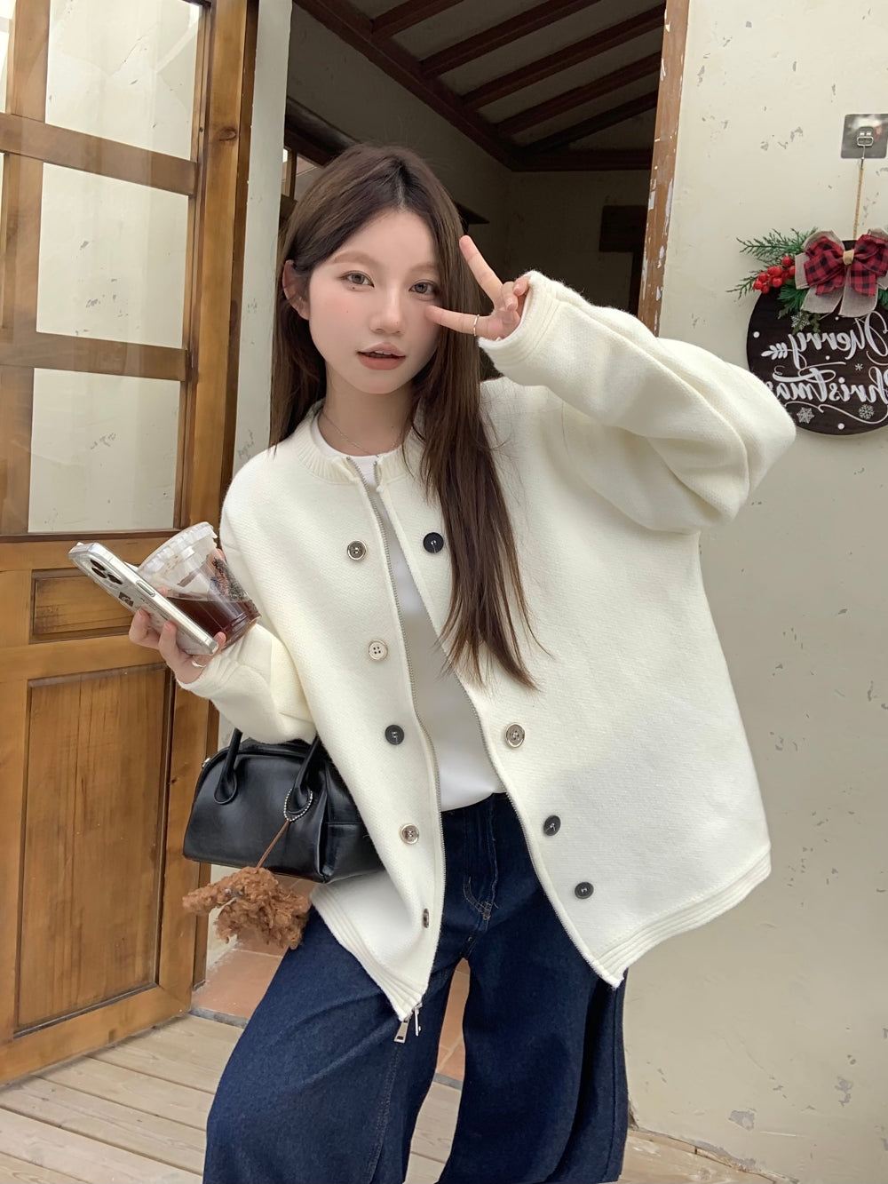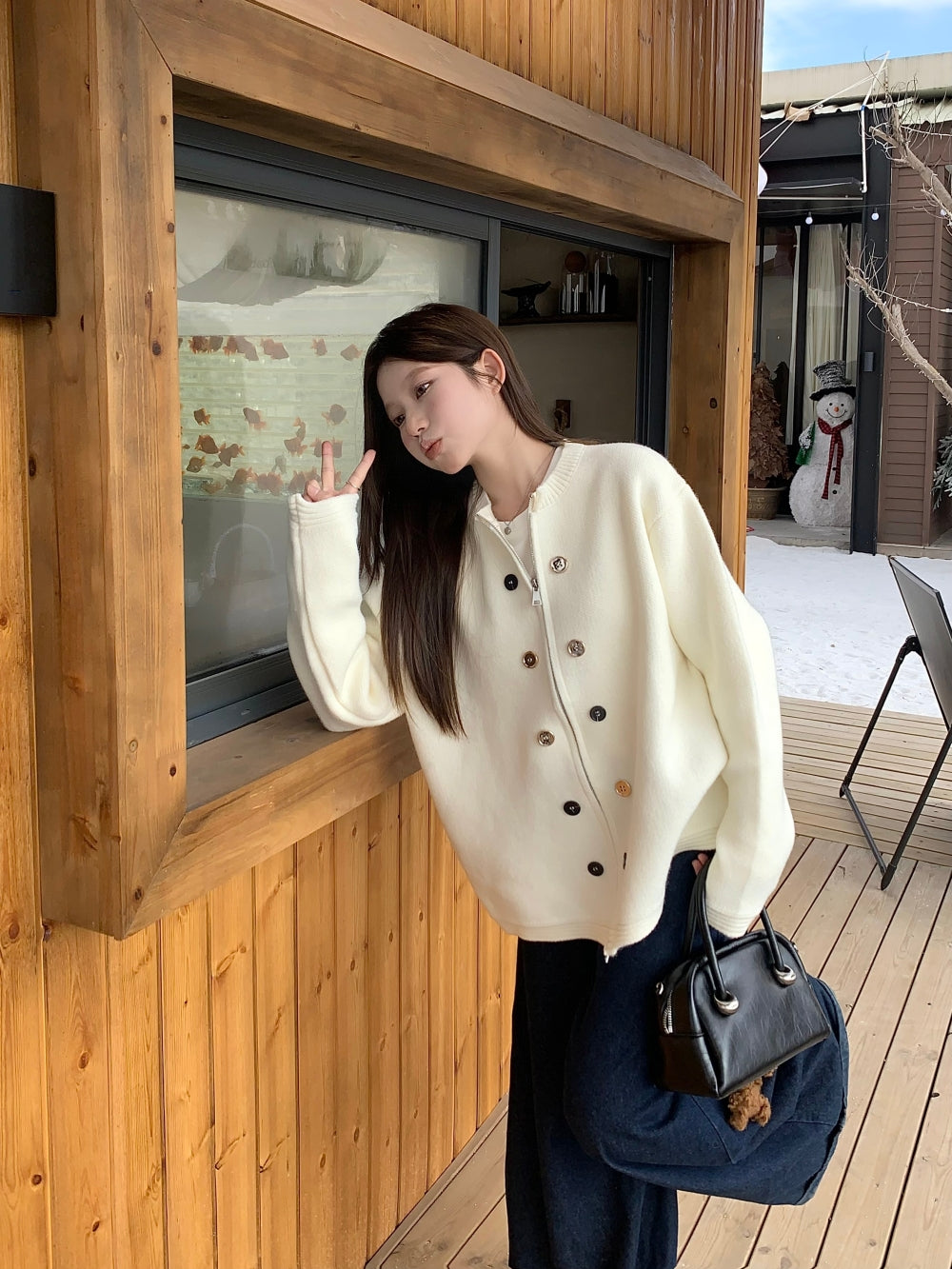【outer】ラウンドネック無地ニットカーディガンG24456
